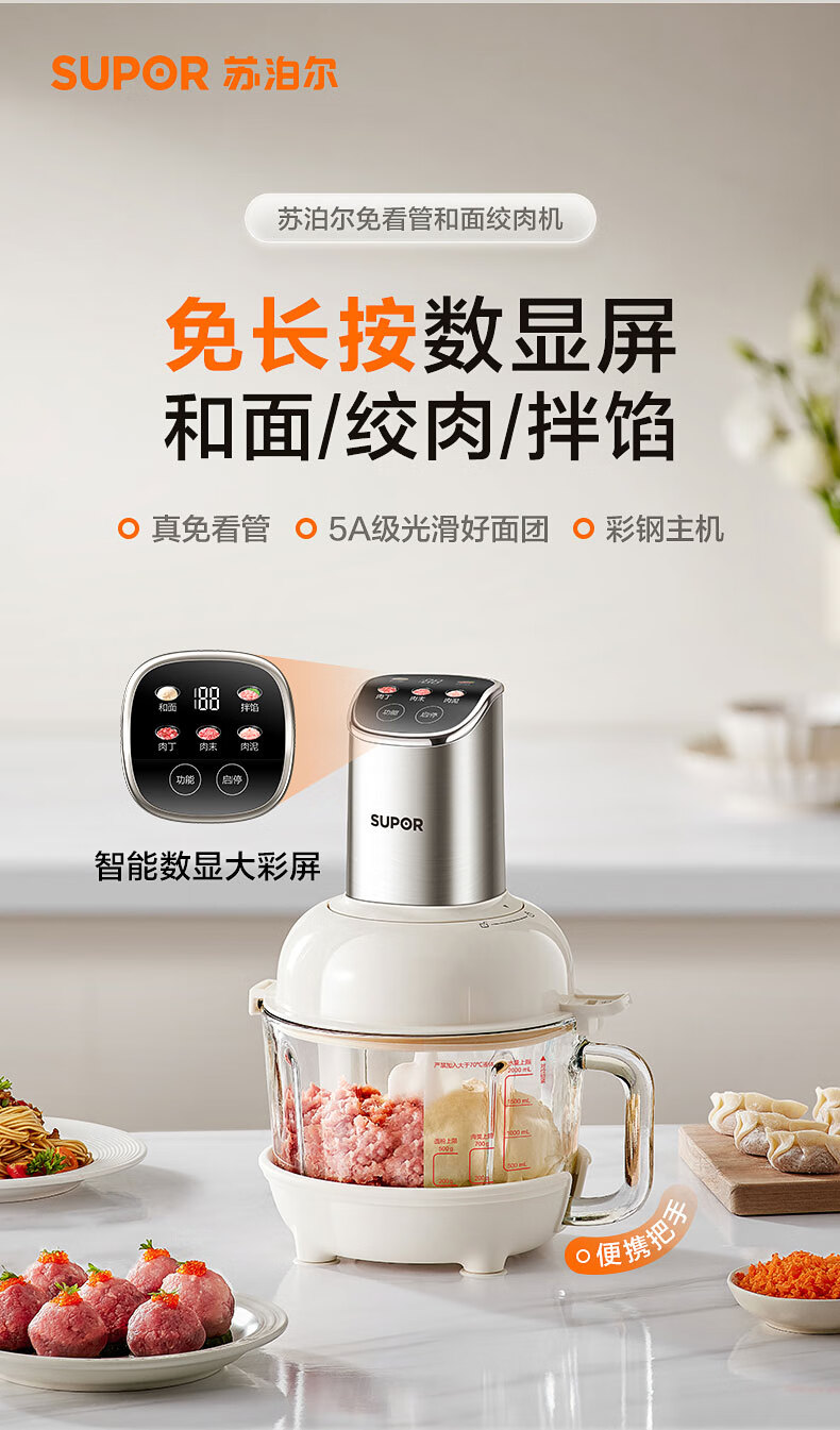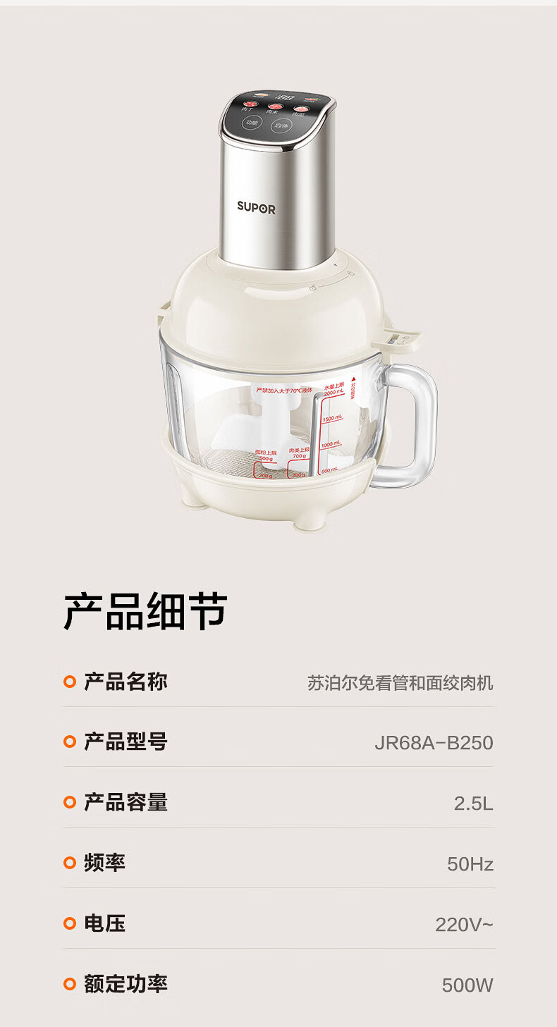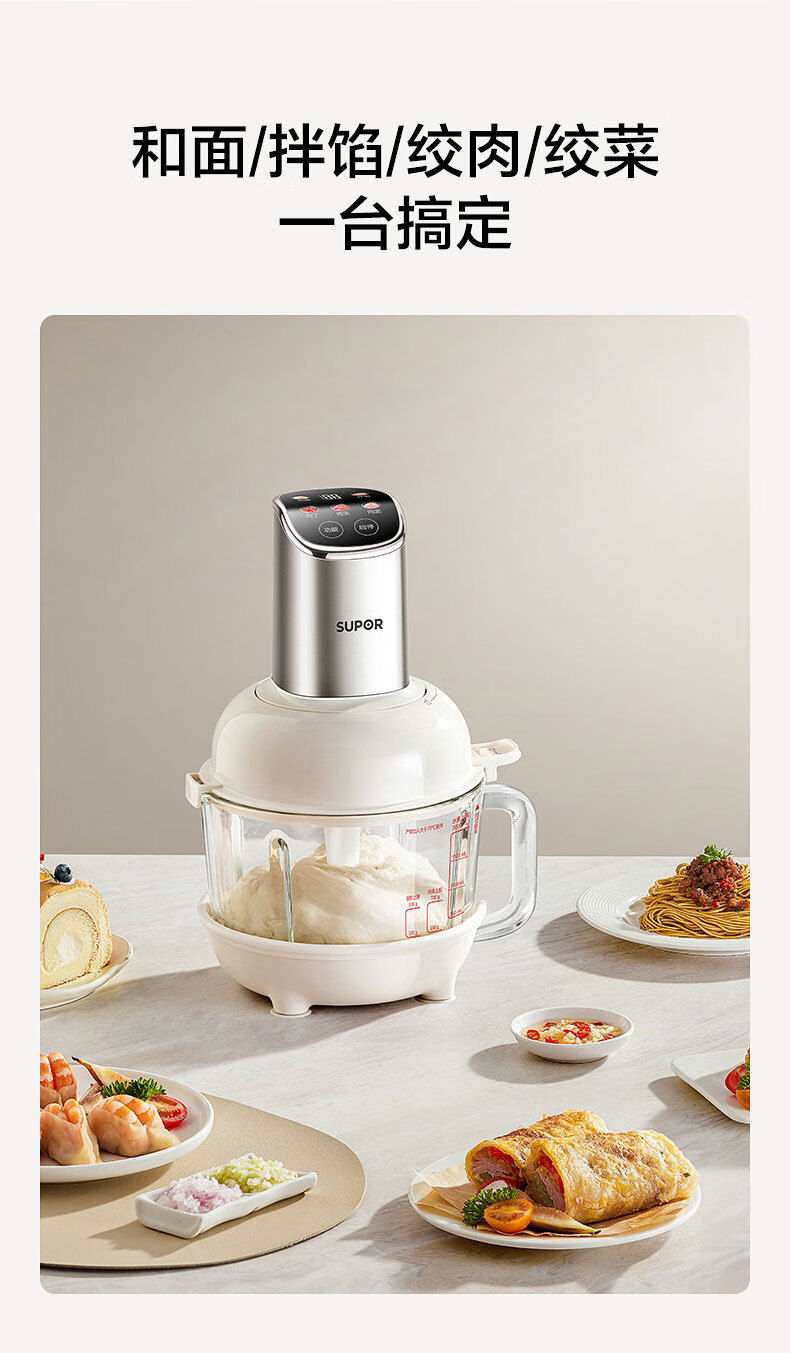 苏泊尔(SUPOR)绞肉机家用 绞馅机机多功能料理机和面机辅食机婴儿打泥机智能绞肉和面绞菜一体机 JR68A-B250