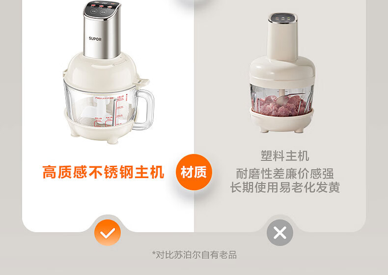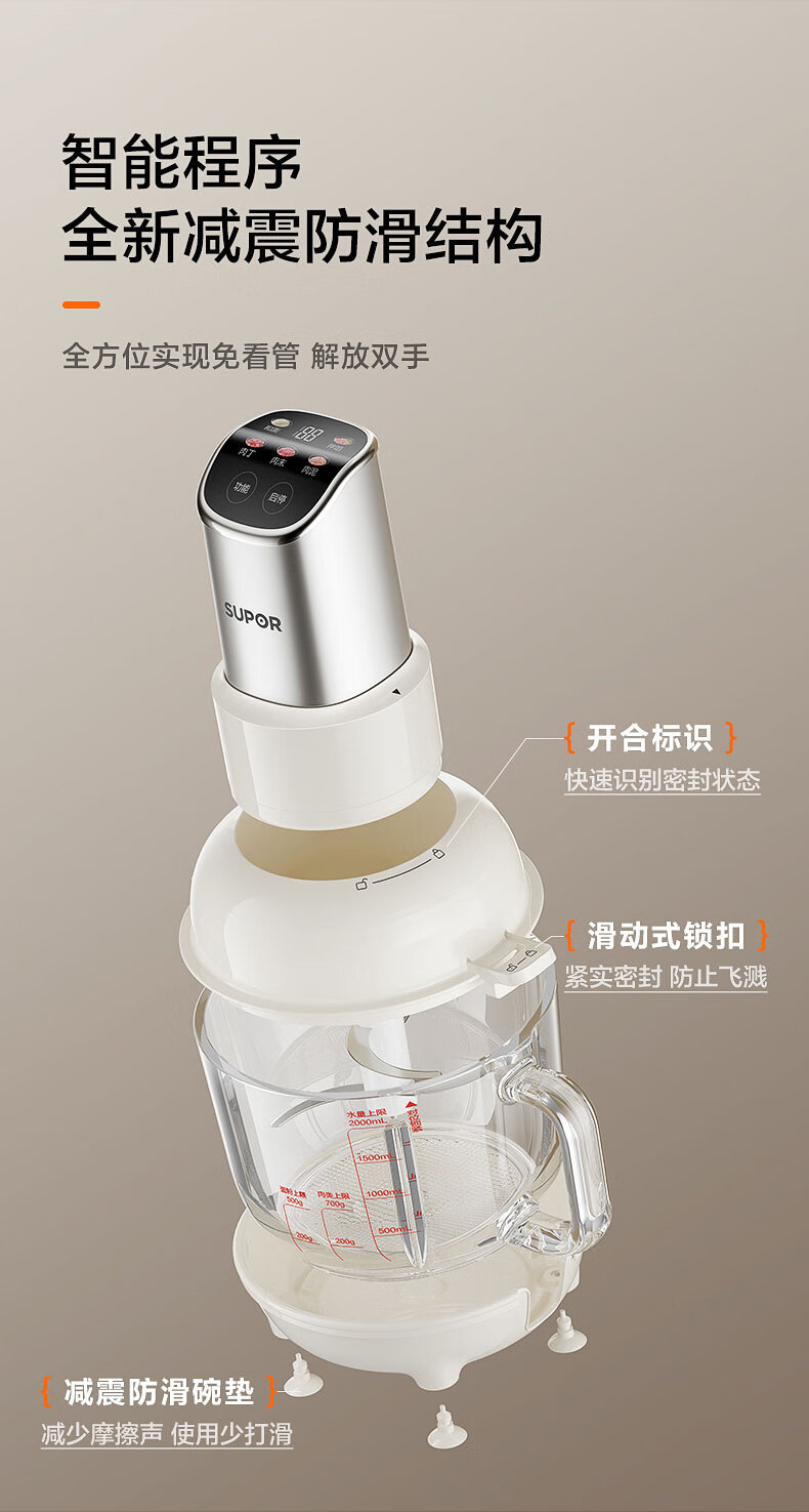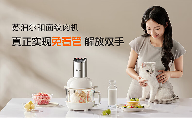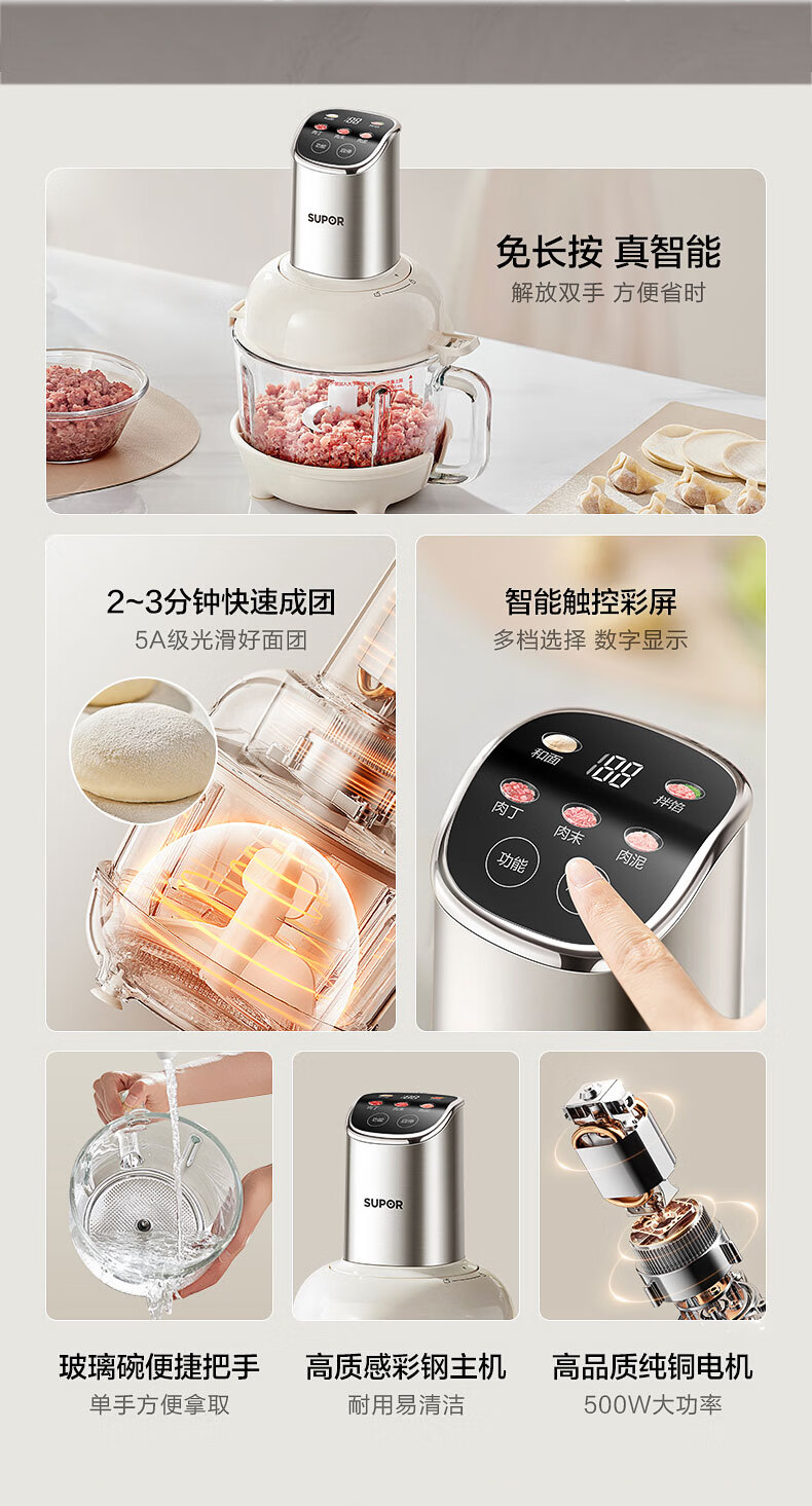 苏泊尔(SUPOR)绞肉机家用 绞馅机机多功能料理机和面机辅食机婴儿打泥机智能绞肉和面绞菜一体机 JR68A-B250