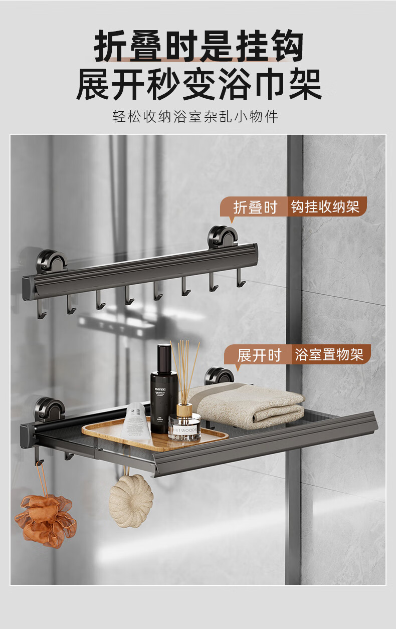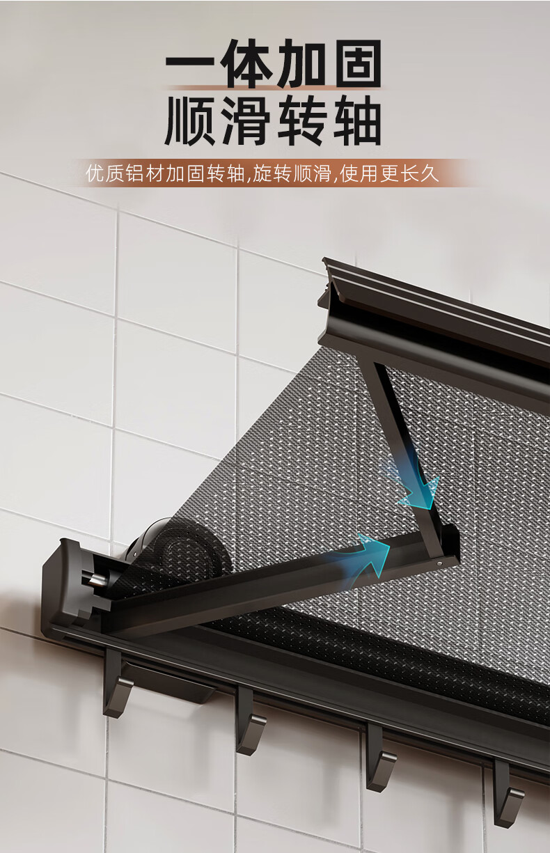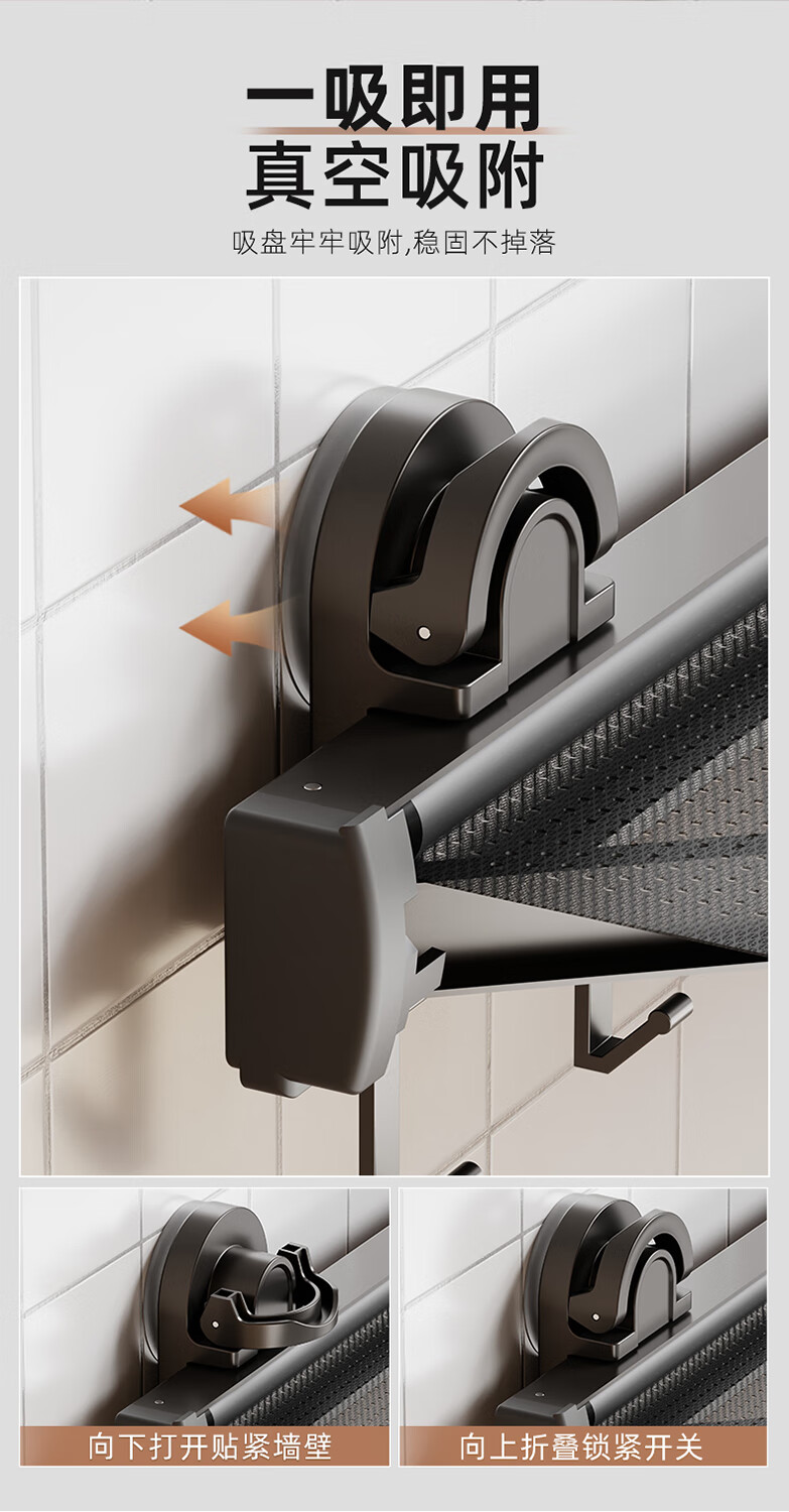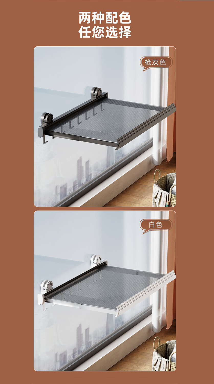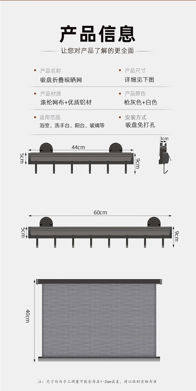 尔思家隐形晾衣架吸盘伸缩折叠晾晒网室内凉晒袜子阳台空间利用晾衣神器 枪灰色吸盘式折叠抽拉晾晒网小号(含6钩)
