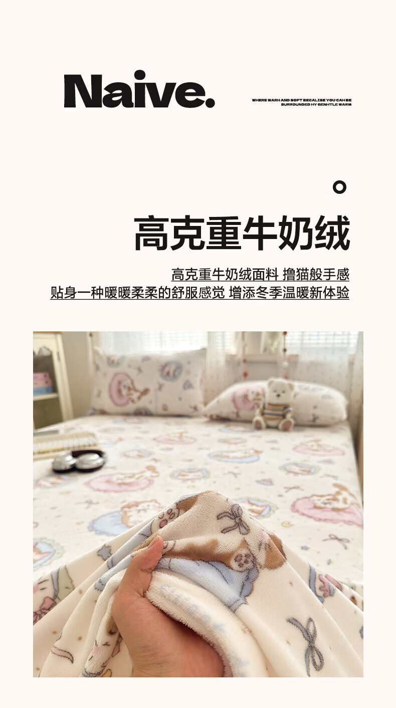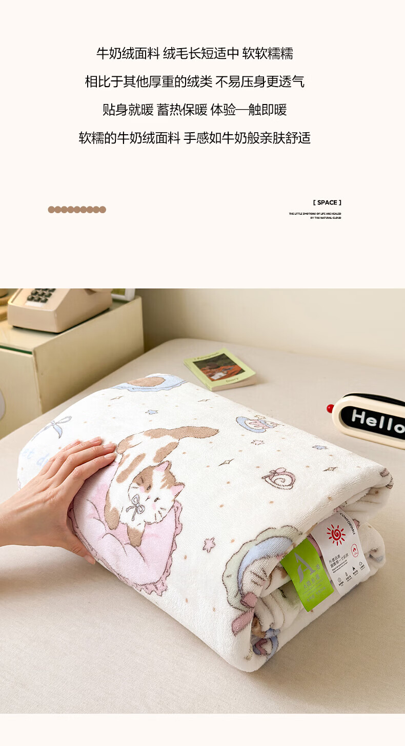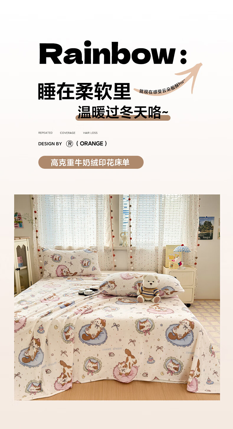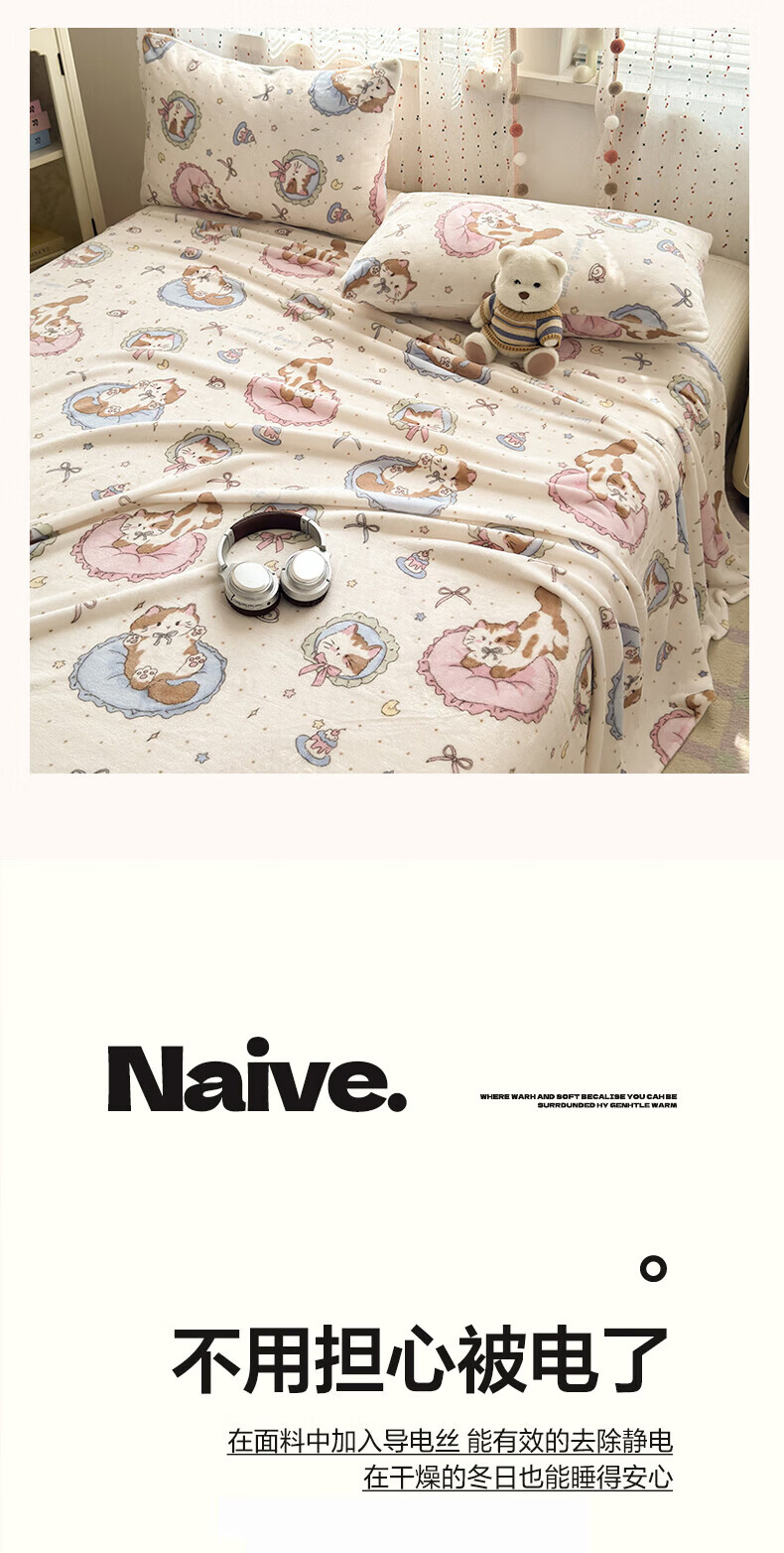 猫人(MiiOW)秋冬卡通牛奶绒床单单件冬季加绒加厚单双人珊瑚绒被单枕套三件套 猫咪礼物【蓄热保暖 软糯亲肤】 160cm*230cm 【单件床单】