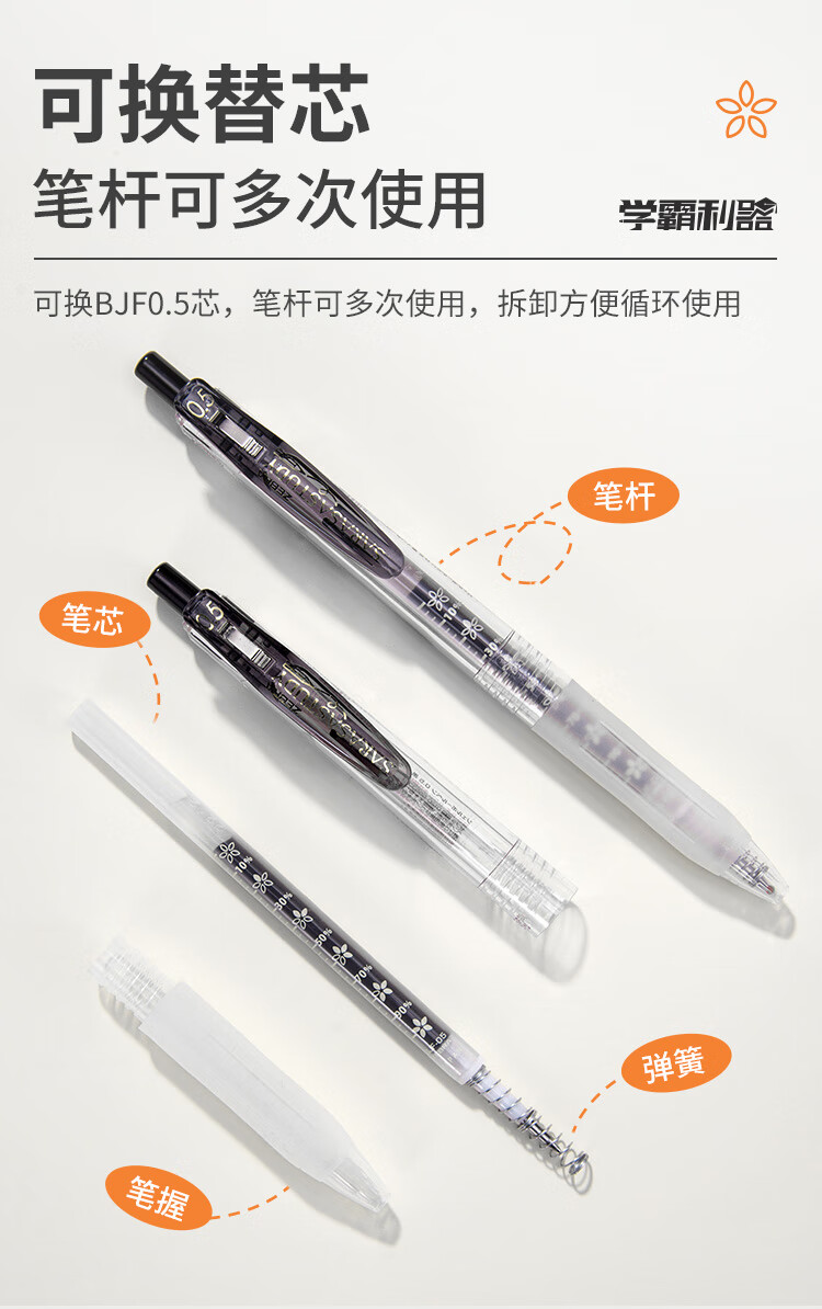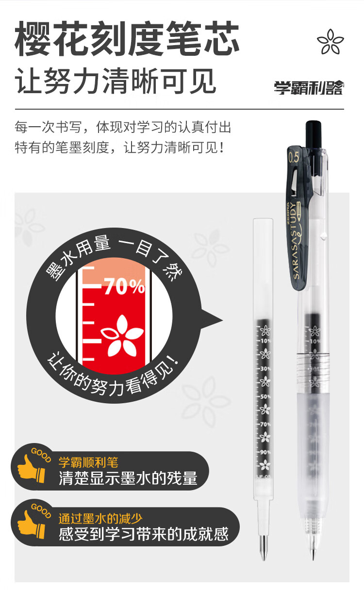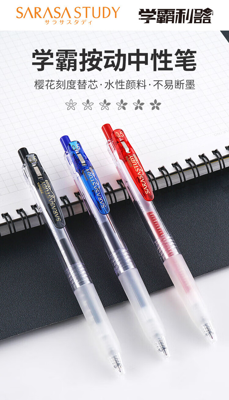 斑马牌(ZEBRA)【热门商品】十周年纪念版学霸中性笔 0.5mm按动中性笔学生刷题签字笔花朵刻度JJM88黑色 单支装