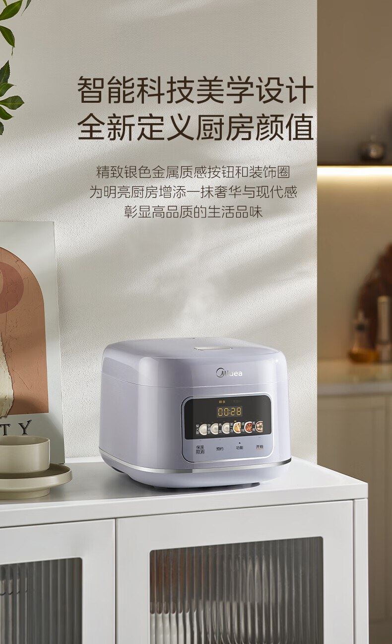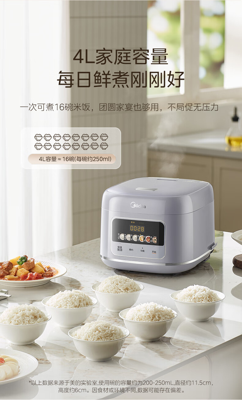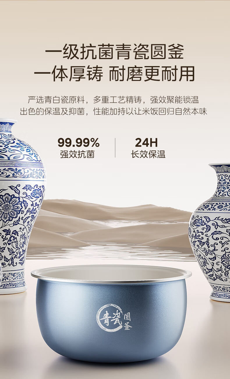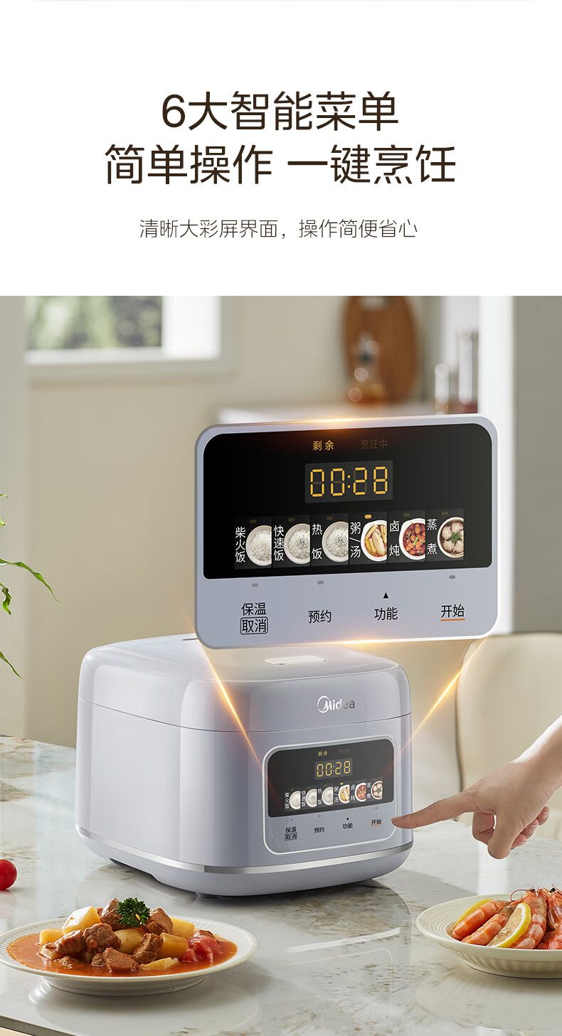 美的(Midea)电饭煲4升电饭锅抗菌青瓷内胆家用3-5-6人大容量多功能微压煮粥煲汤智能预约定时一键柴火饭快速饭 【新品上市】新升级6.0版抗菌青瓷 4L