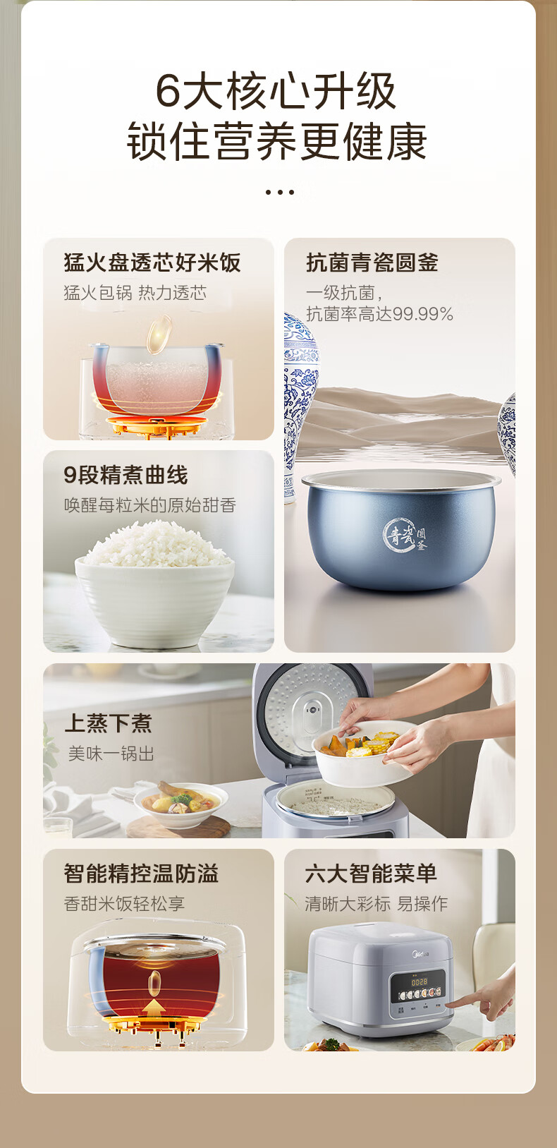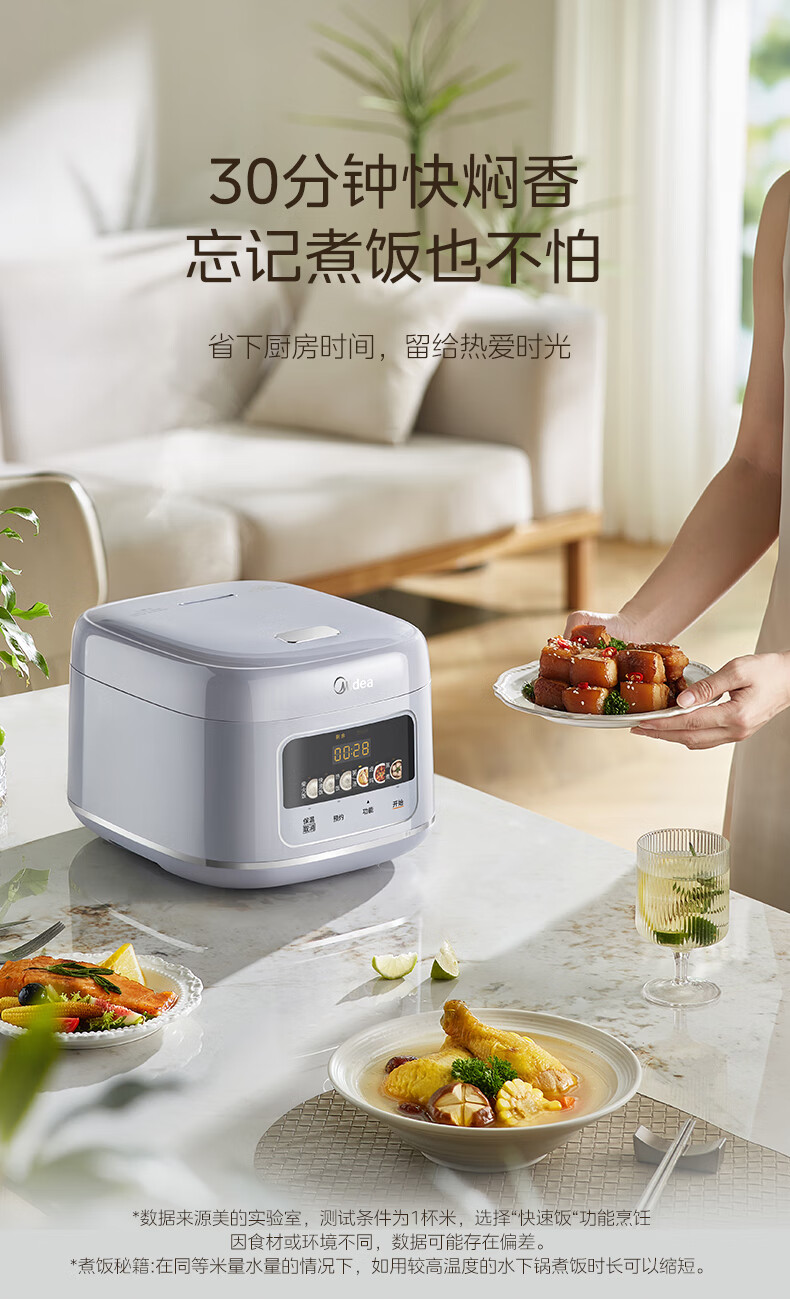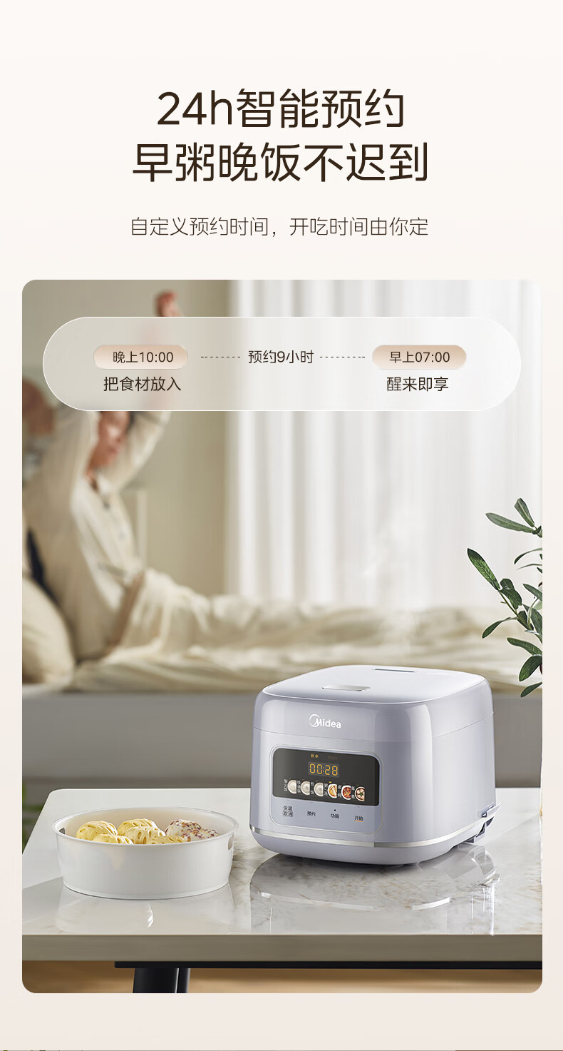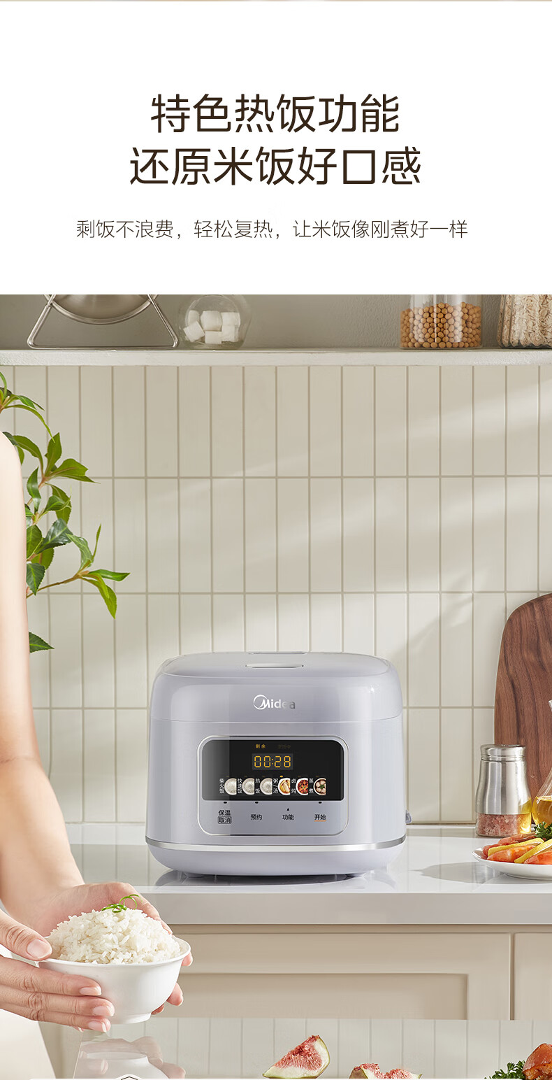 美的(Midea)电饭煲4升电饭锅抗菌青瓷内胆家用3-5-6人大容量多功能微压煮粥煲汤智能预约定时一键柴火饭快速饭 【新品上市】新升级6.0版抗菌青瓷 4L