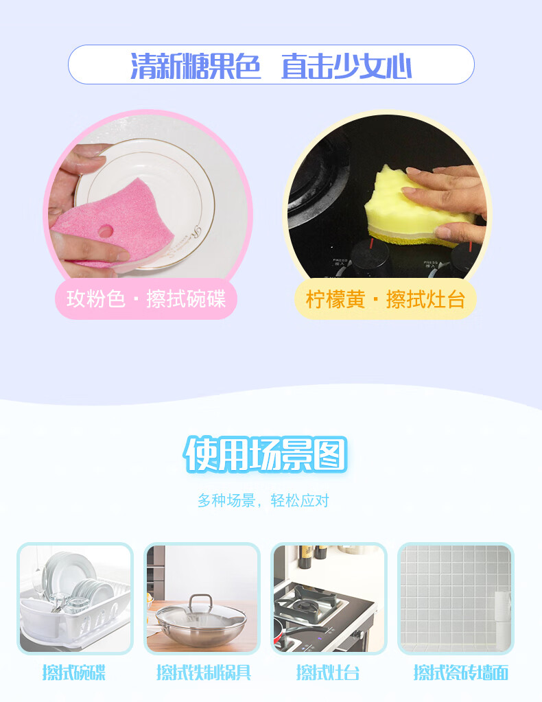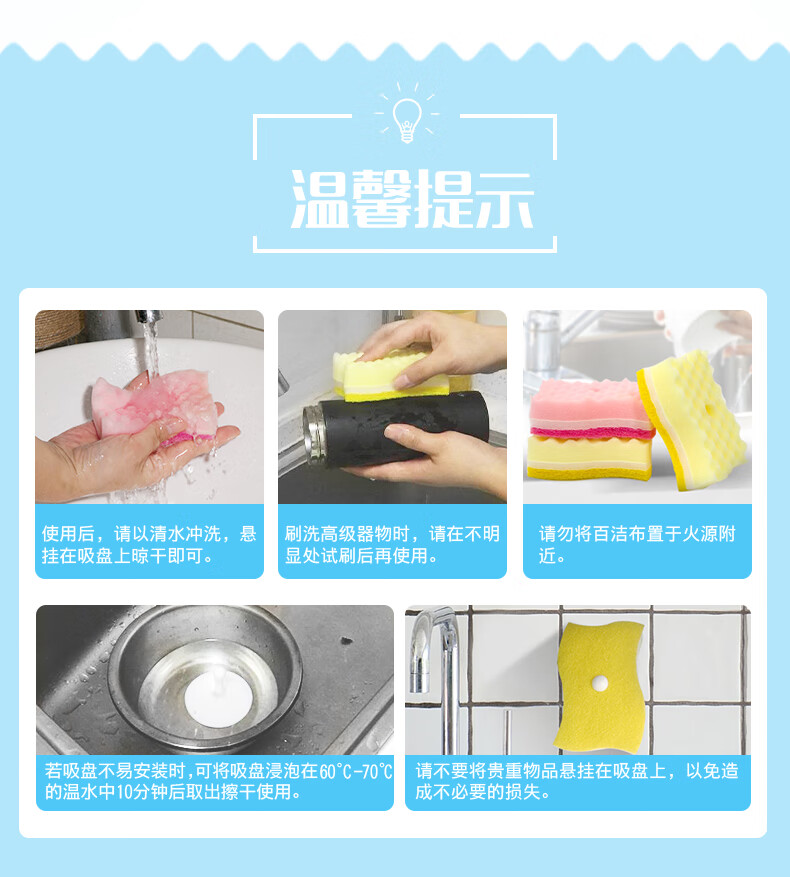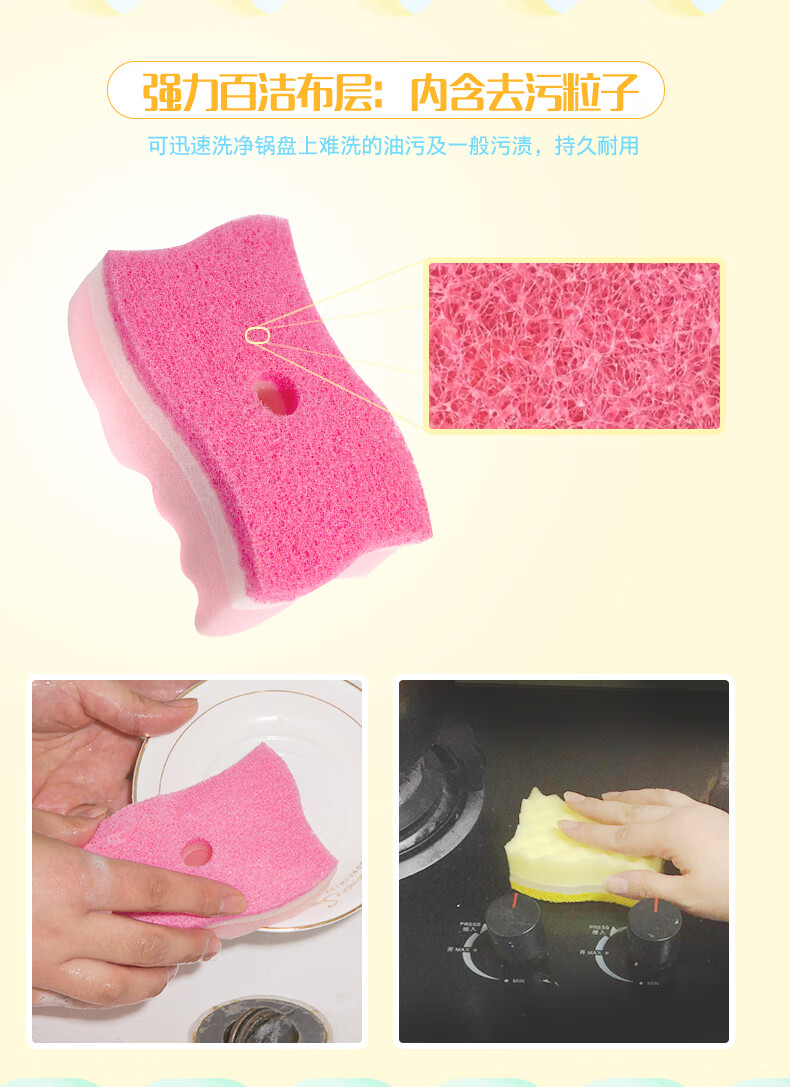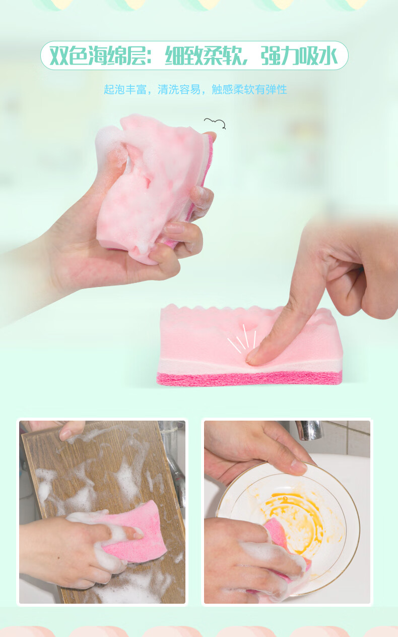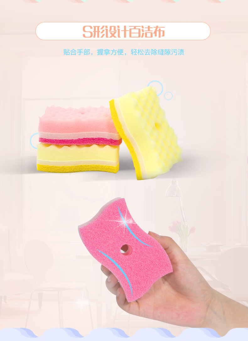 妙洁 悬挂式海绵百洁布 5片装 包装内含悬挂吸盘 厨房洗碗抹布神器