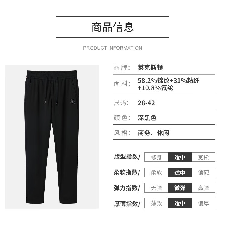 莱克斯顿男装2025春季新款男士休闲裤男长裤子男百搭潮流男裤 深黑 33