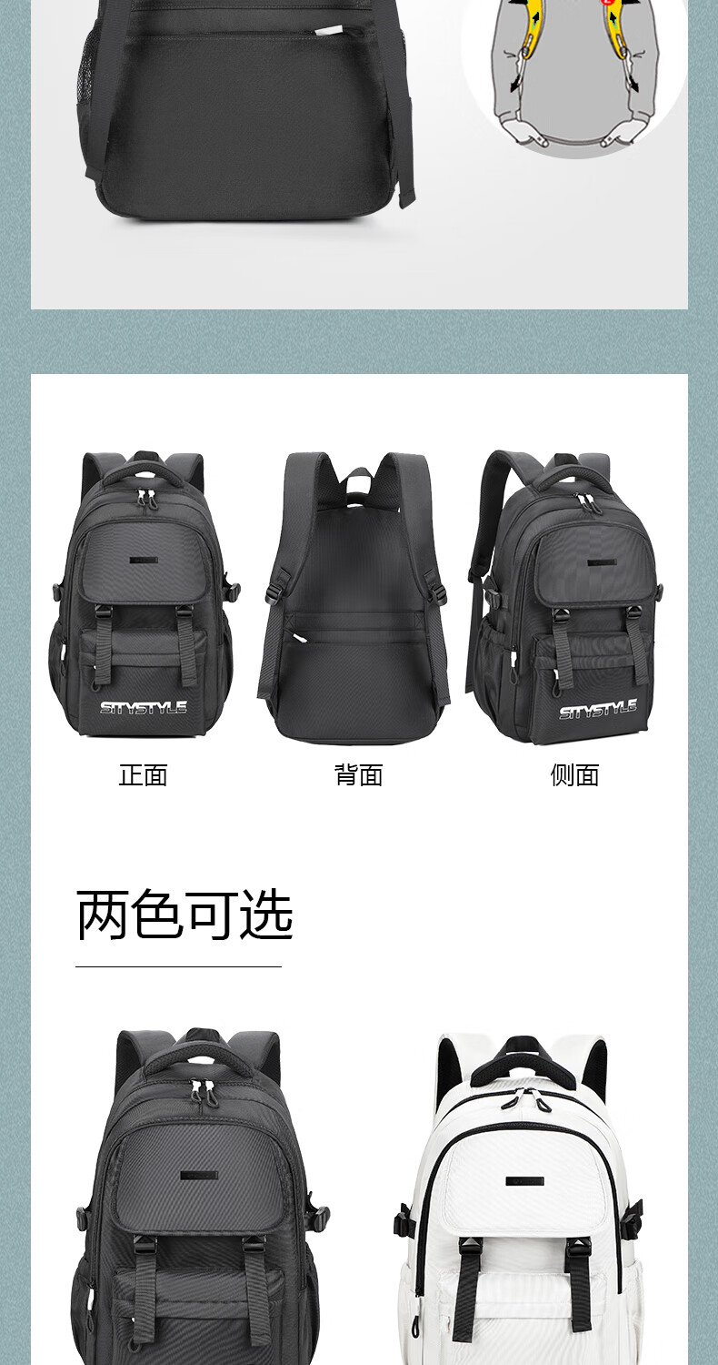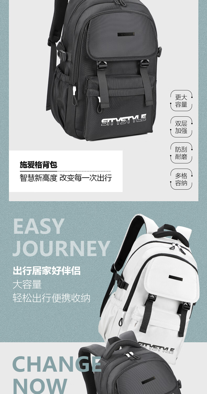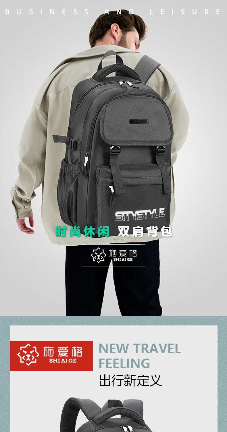 施爱格双肩包男士背包大容量时尚休闲旅行包电脑包初中高中大学生书包女 黑色