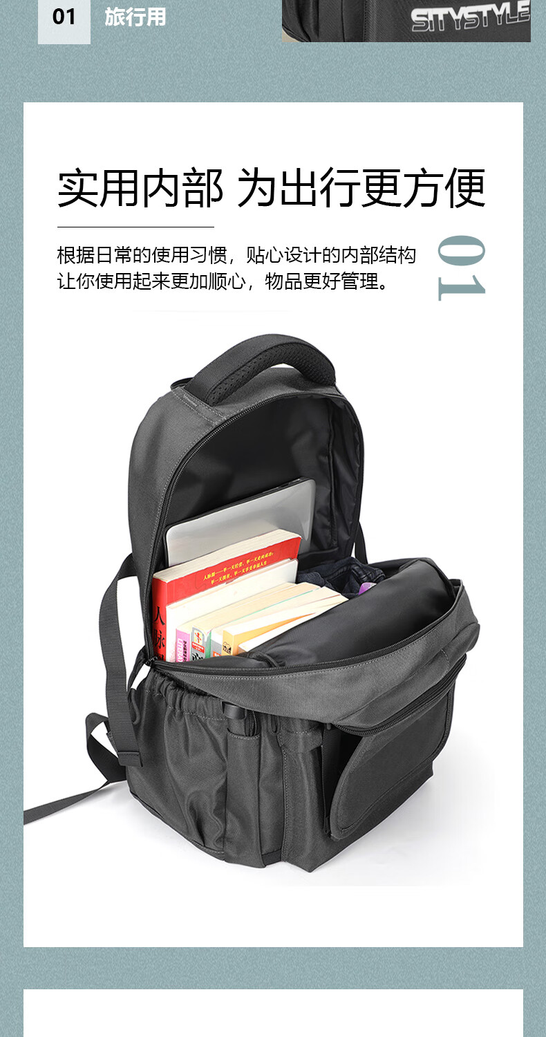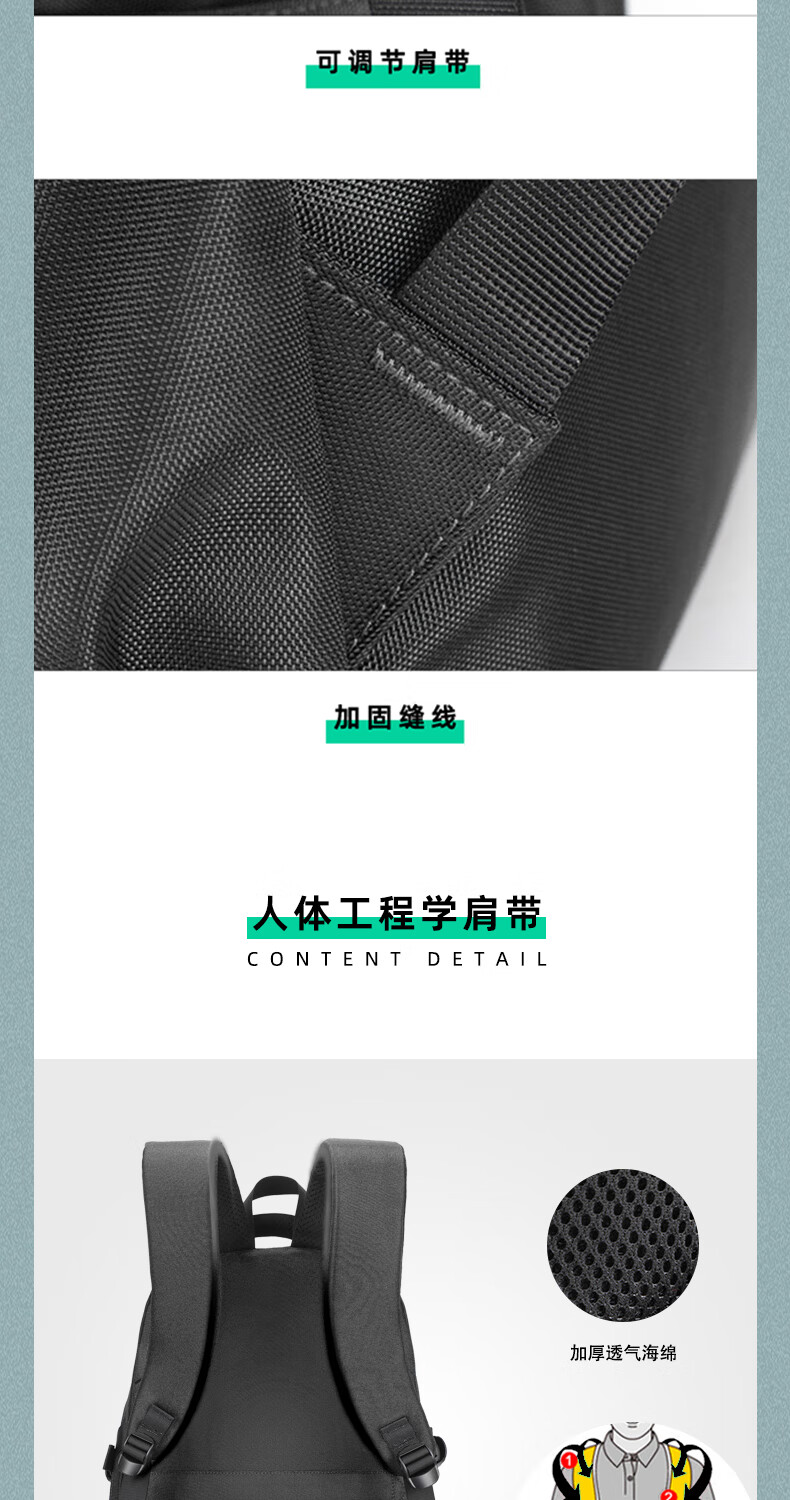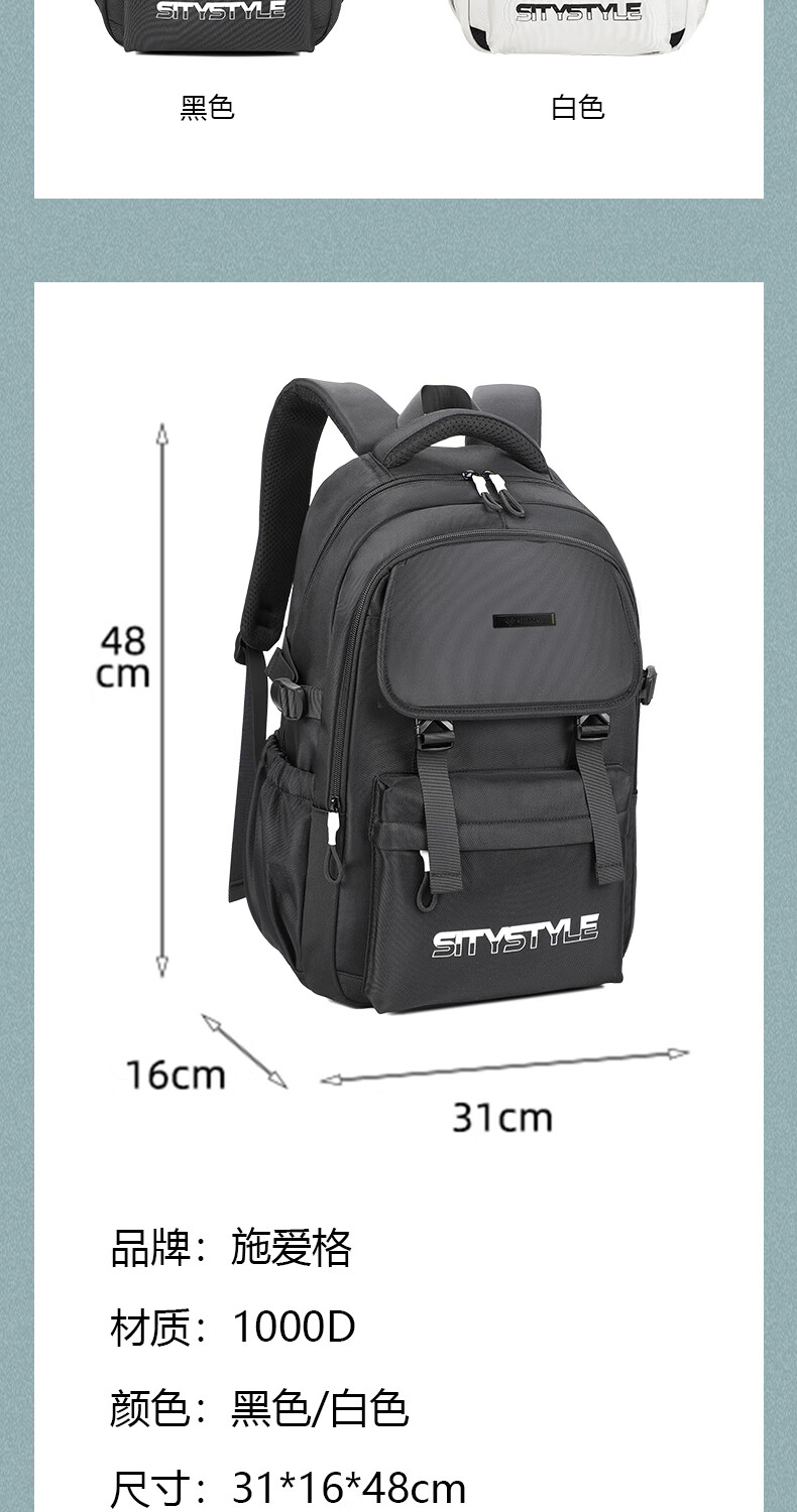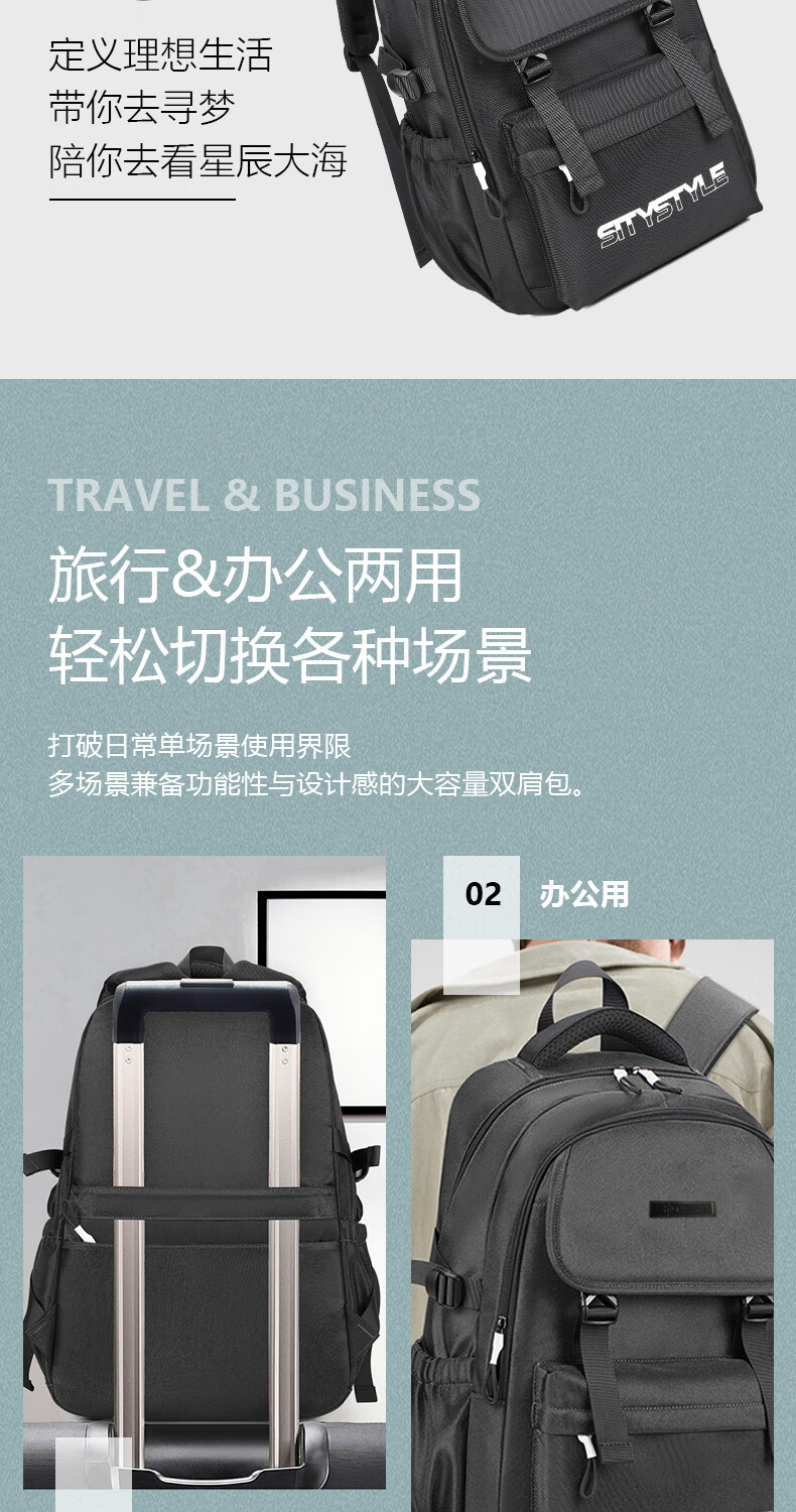 施爱格双肩包男士背包大容量时尚休闲旅行包电脑包初中高中大学生书包女 黑色