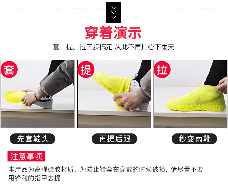 勋狸粑防水鞋套硅胶防滑雨鞋套防滑加厚耐磨户外防水鞋套防雨男女雨靴套 白色【高弹性/升级款】 1双【34-46男女通用】独立包装