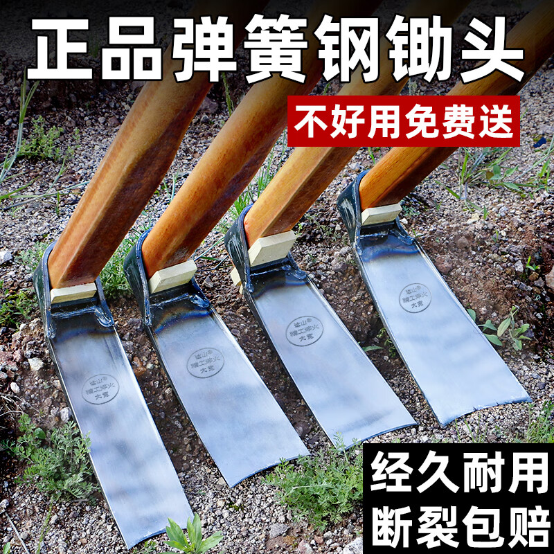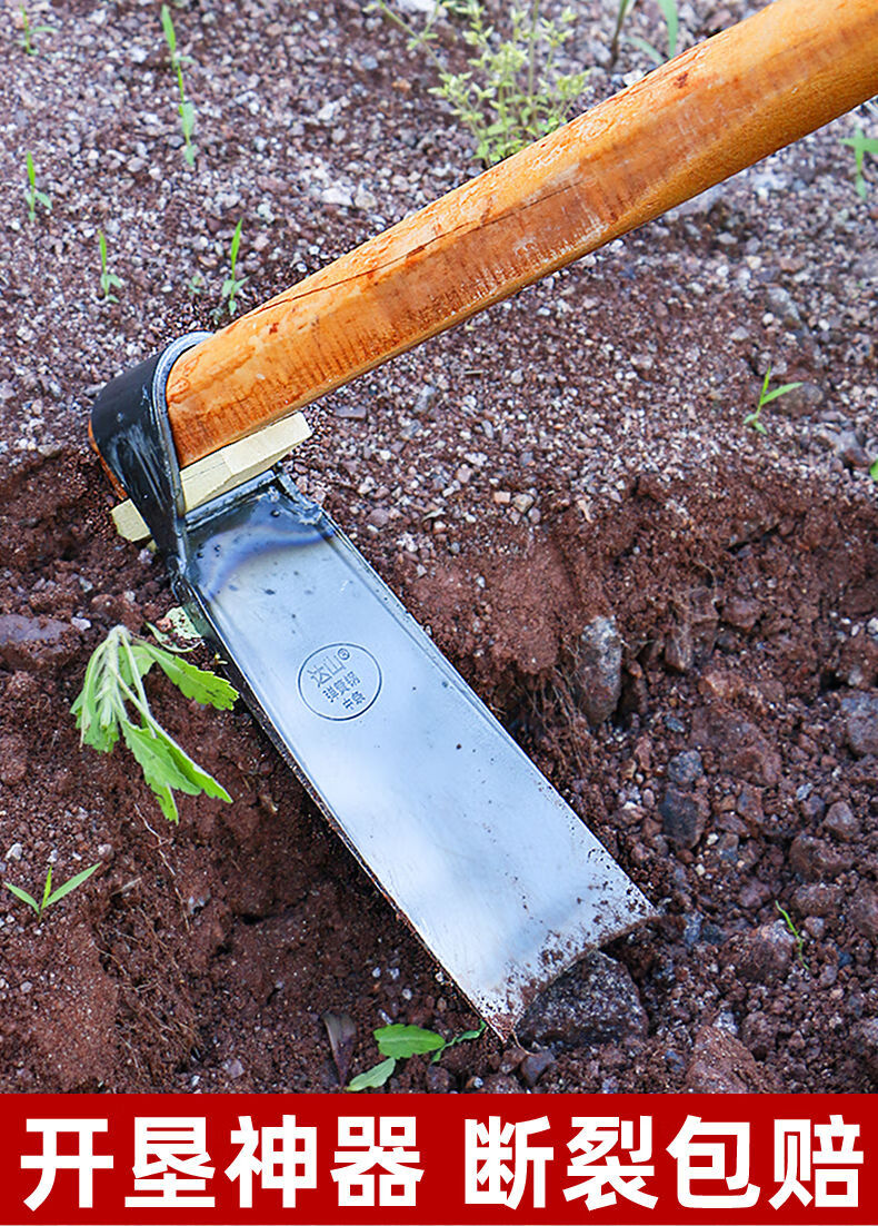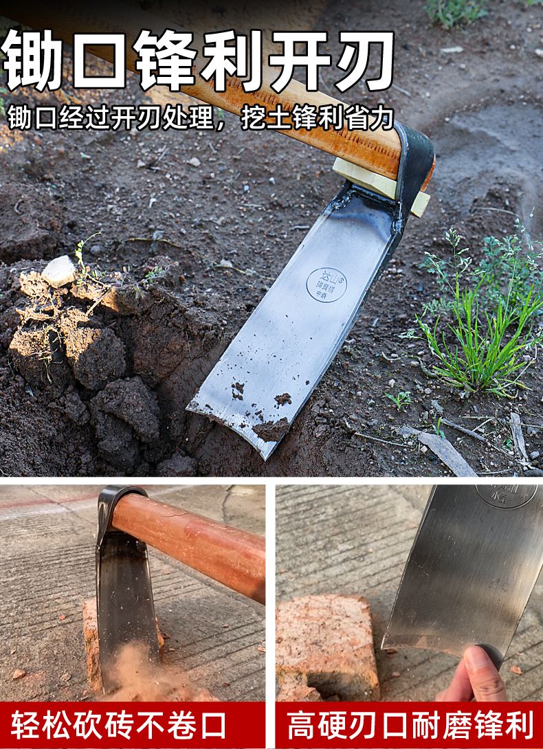 CPAI锰钢大锄头种菜家用种地开荒翻地挖笋专用农用工具开沟挖树根农具 中条锄头+1.2米槐木柄 钢淬火精工锻造笋锄H68