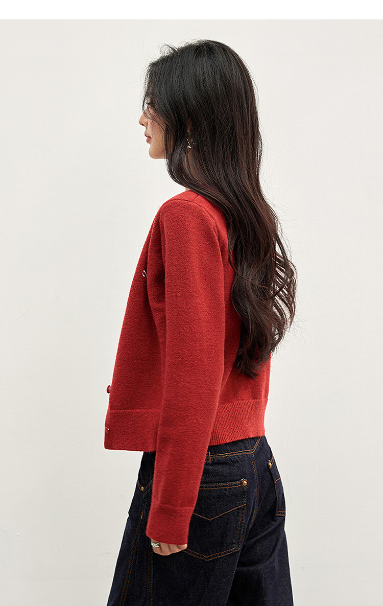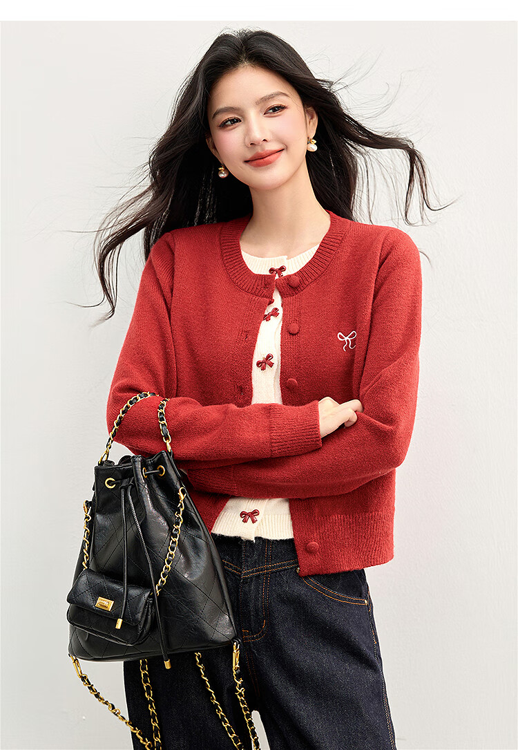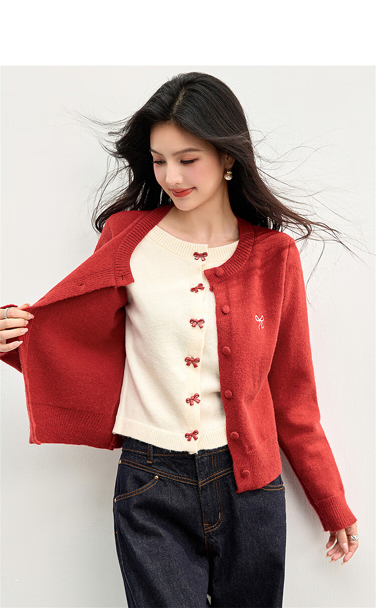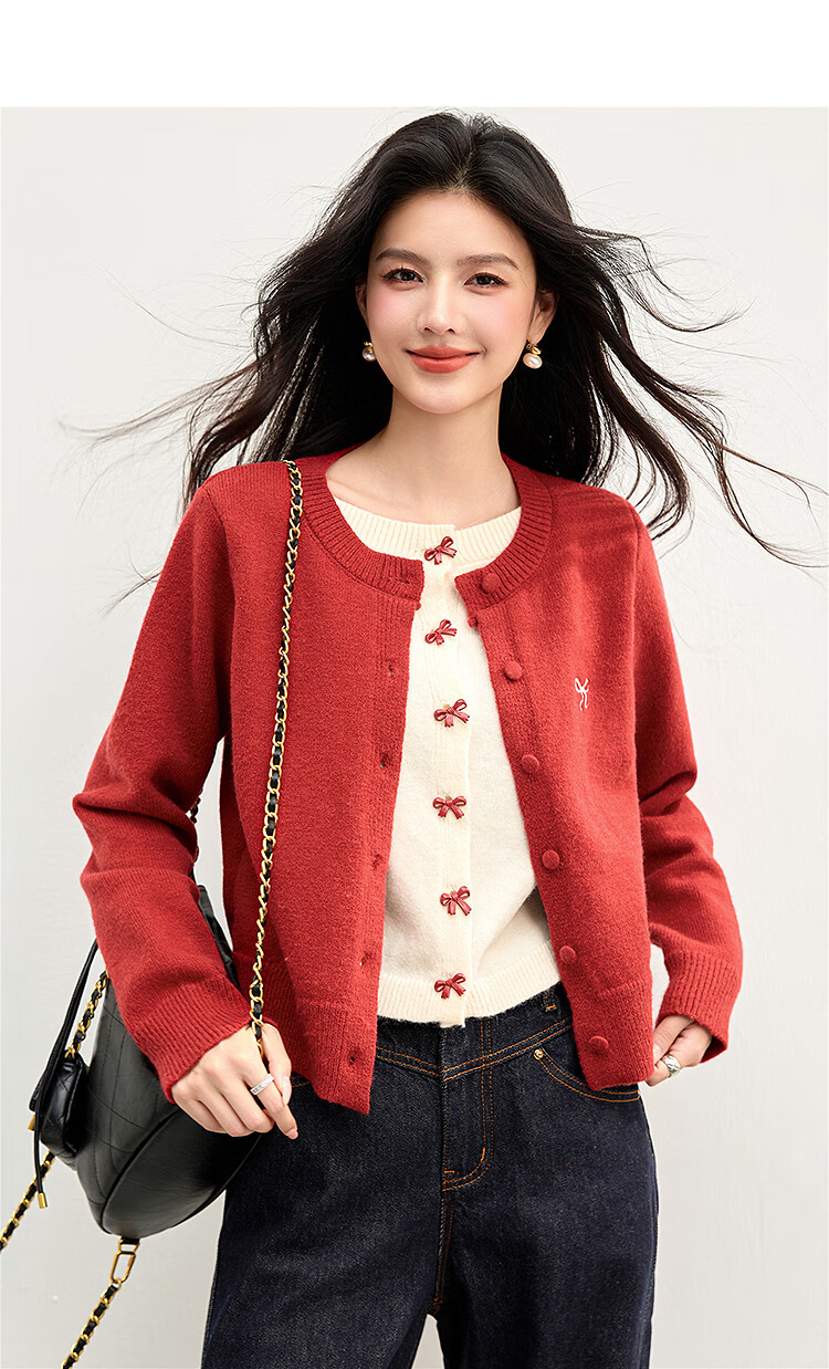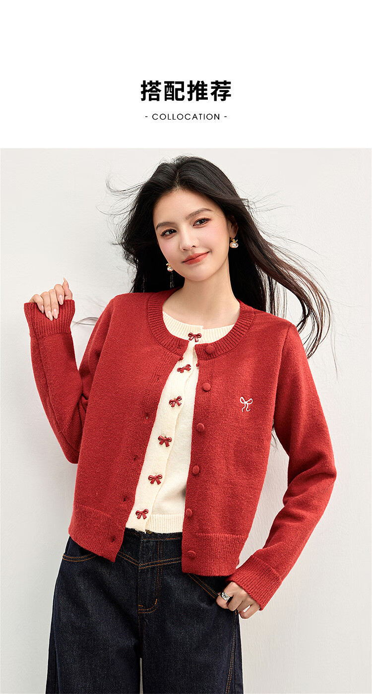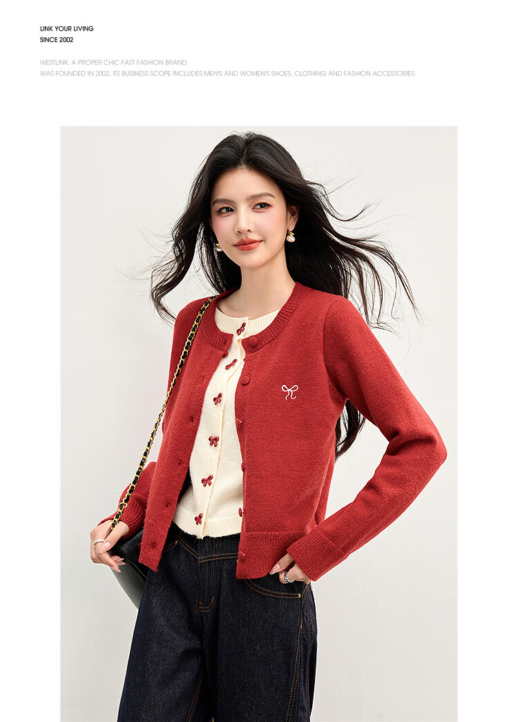 西遇(Westlink)红色针织开衫女2025年秋季新款通勤软糯蝴蝶结宽松毛衣外套 红色 (预售15天) M (160)