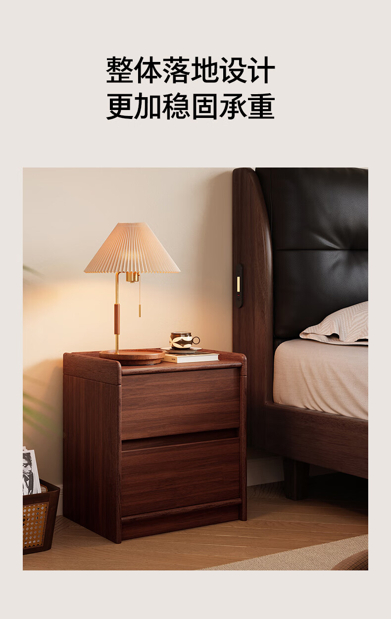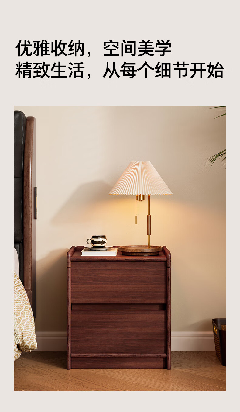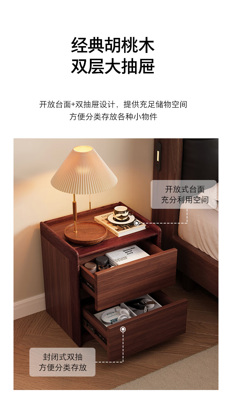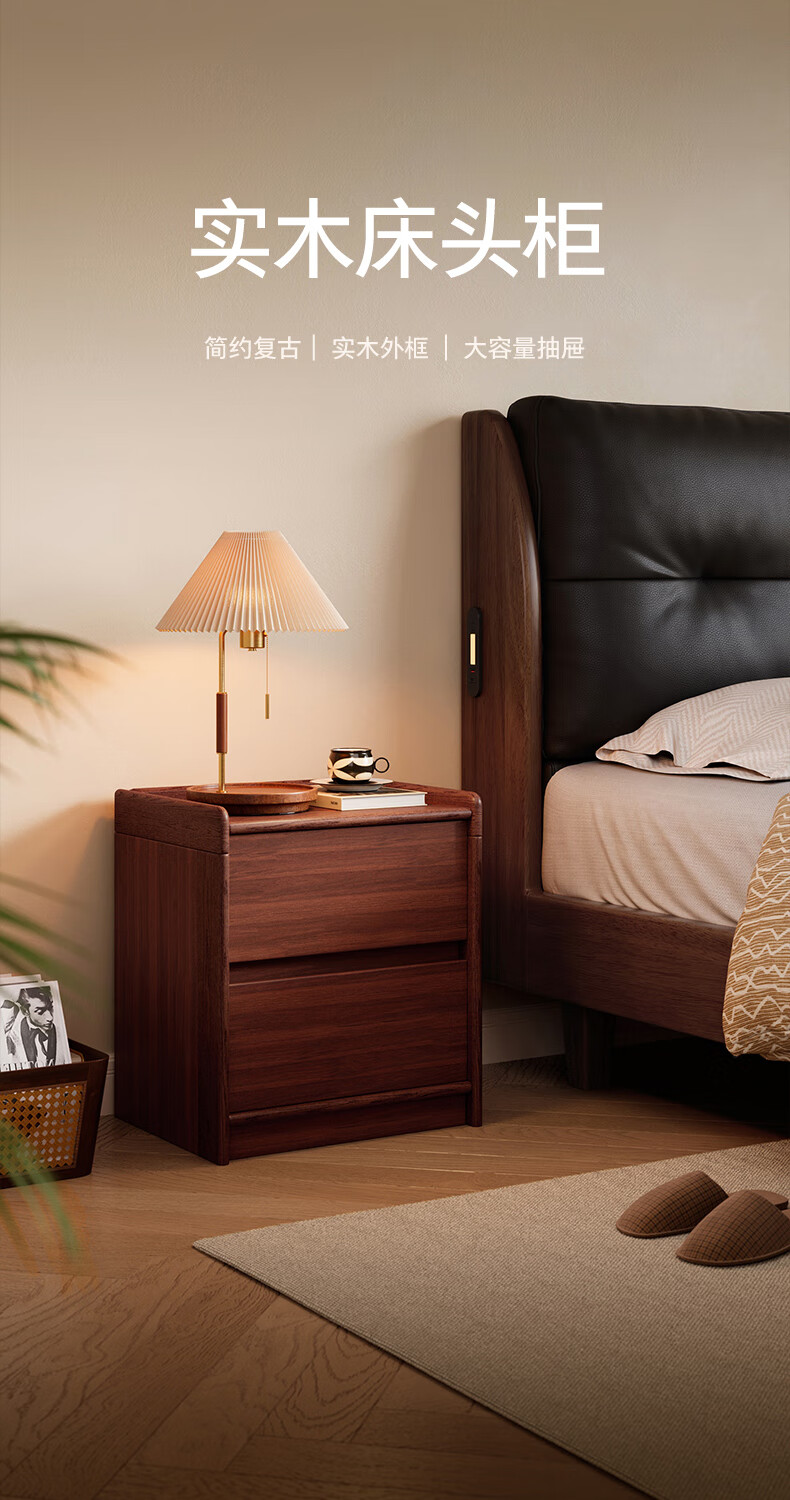 顾家家居(KUKA)简约复古实木床头柜大容量双抽抽屉储物DS8028G 【红胡桃色】经典实木床头柜