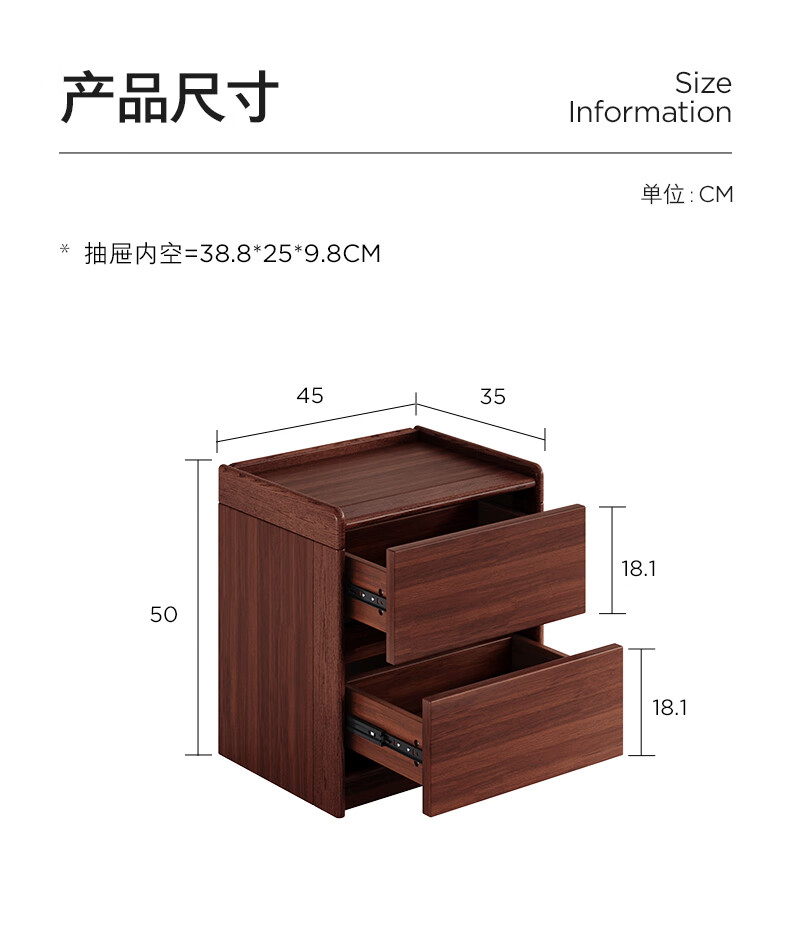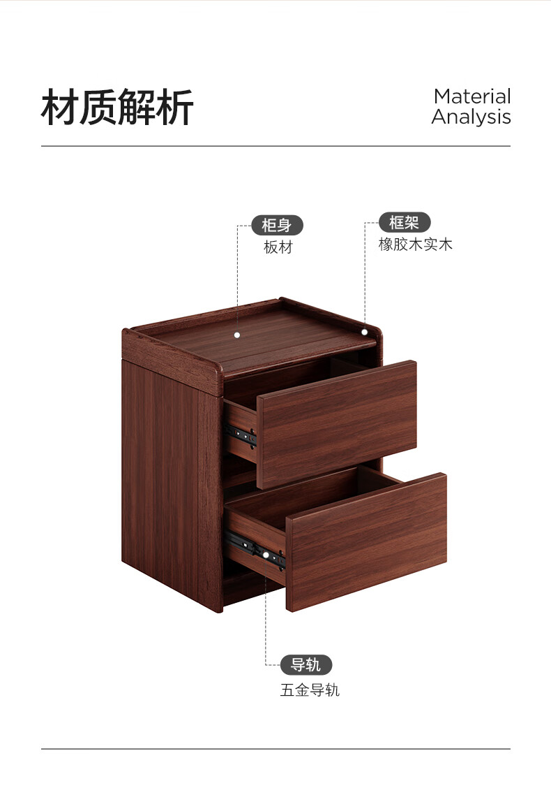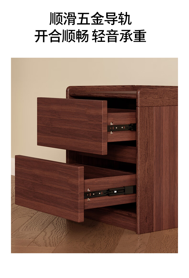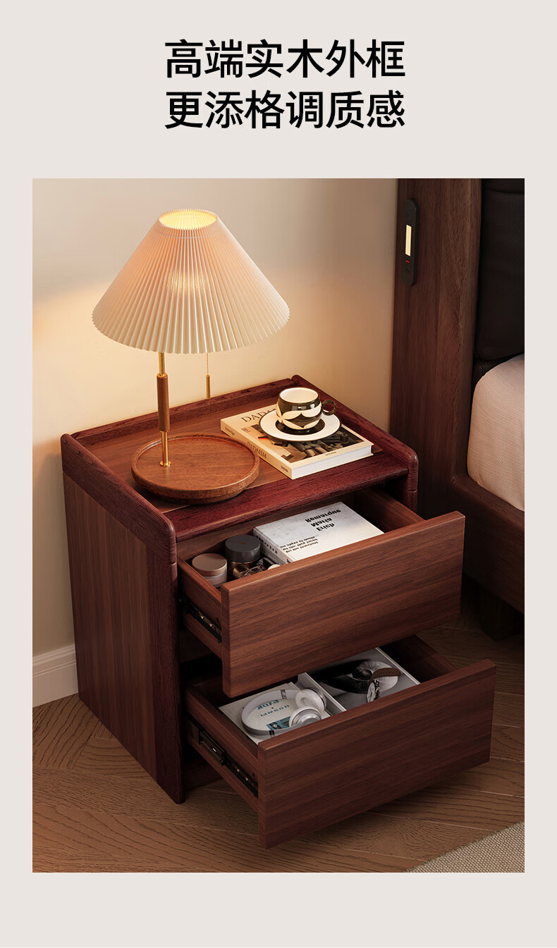 顾家家居(KUKA)简约复古实木床头柜大容量双抽抽屉储物DS8028G 【红胡桃色】经典实木床头柜