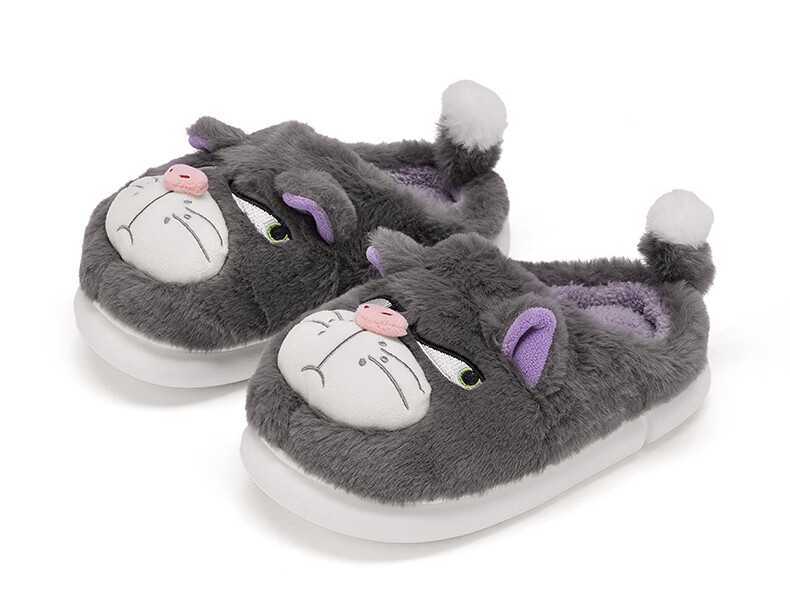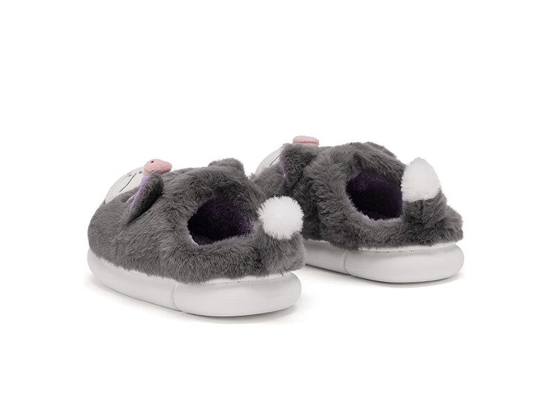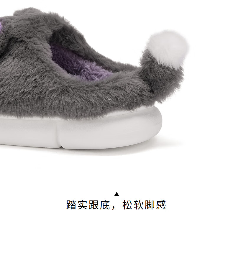 热风【迪士尼系列】加绒毛毛鞋2025年冬季新款卡通包头家居拖鞋 09灰色 38-39 M