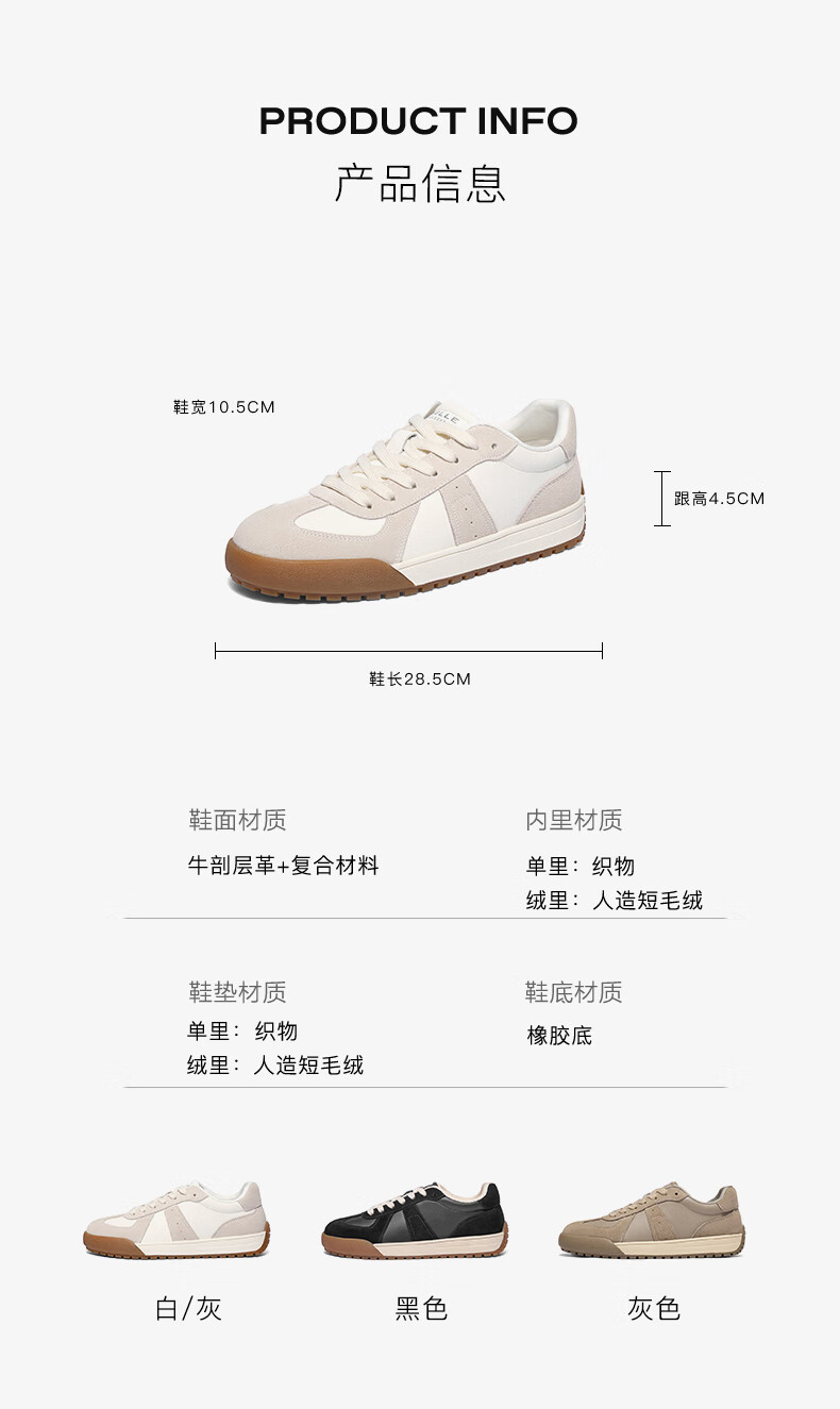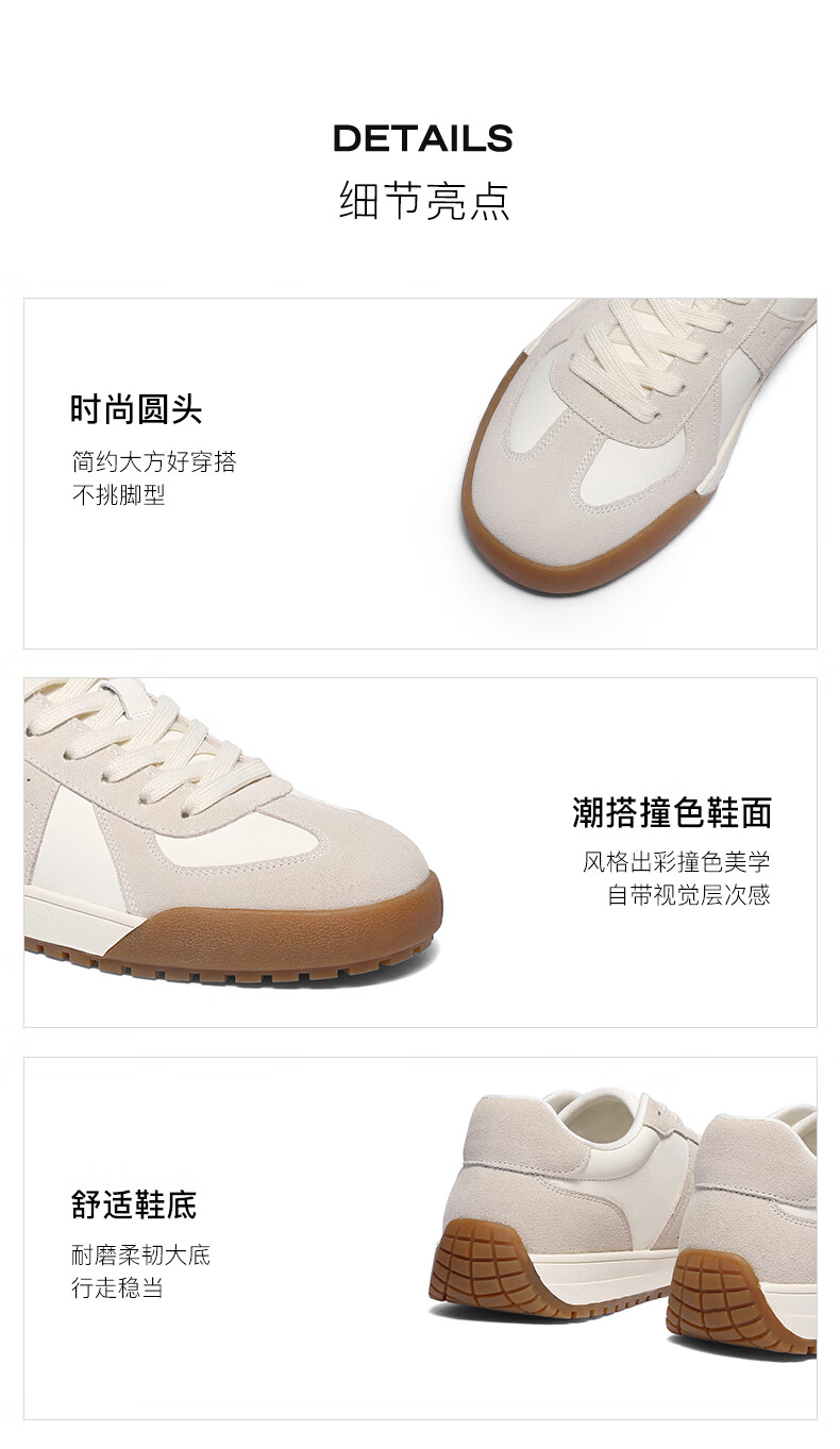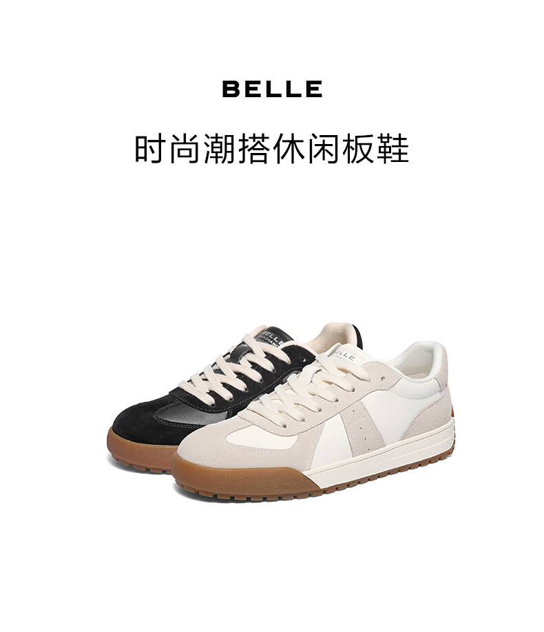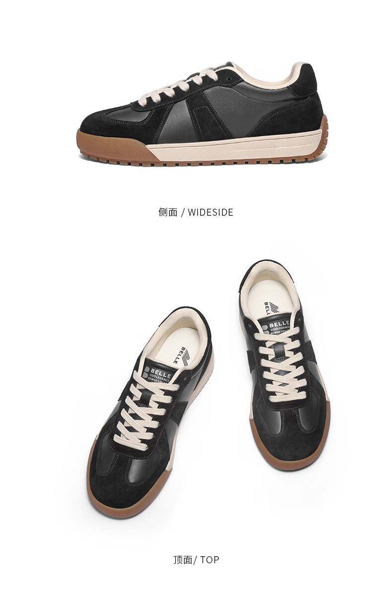 百丽(Belle)复古潮搭德训鞋男2025冬季新款拼接休闲板鞋加绒A2181DM5 黑色(单里) 41 (255mm)