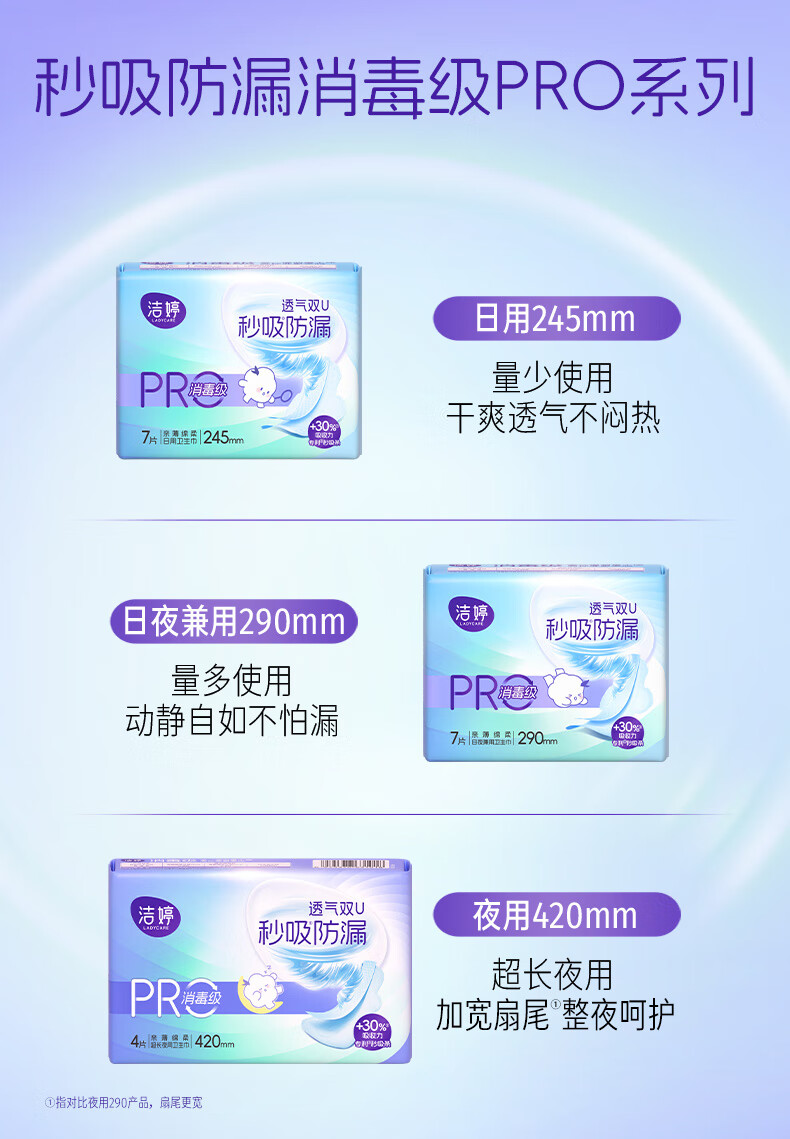 洁婷双UPro消毒级卫生巾小旋风全周期日用组合101片京东自营官方旗舰