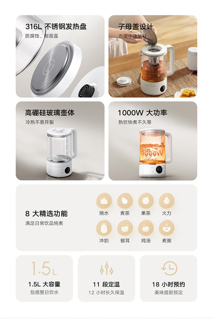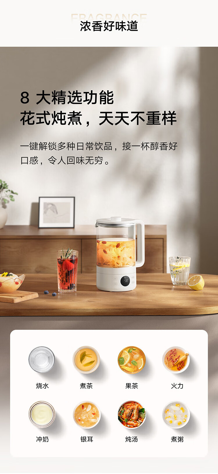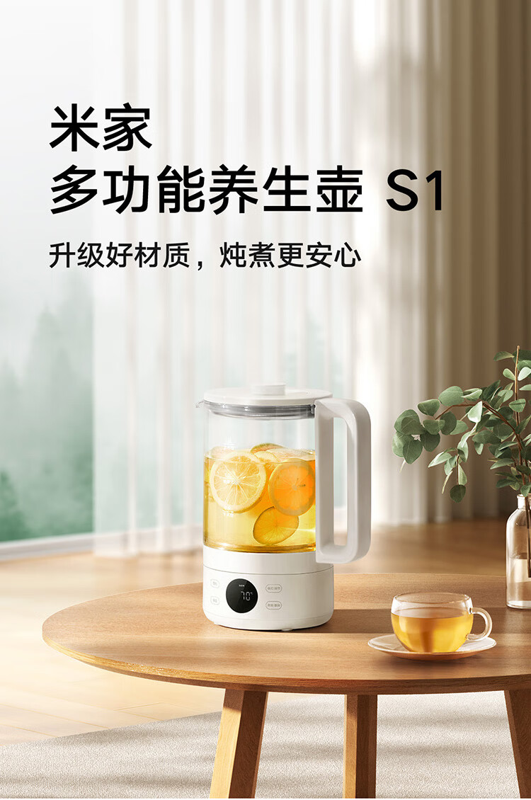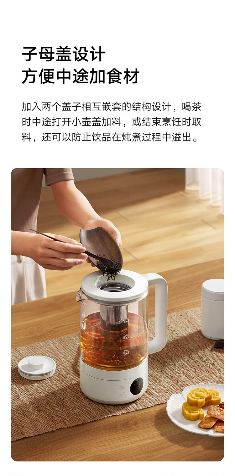 米家多功能养生壶S1 办公室家用玻璃花茶壶烧水壶子母盖电热水壶电炖壶1.5L大容量白色多功能煮茶器 米家多功能养生壶S1 1.5L