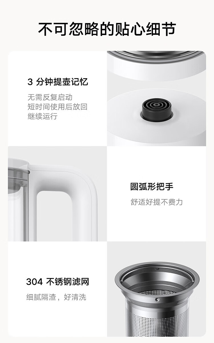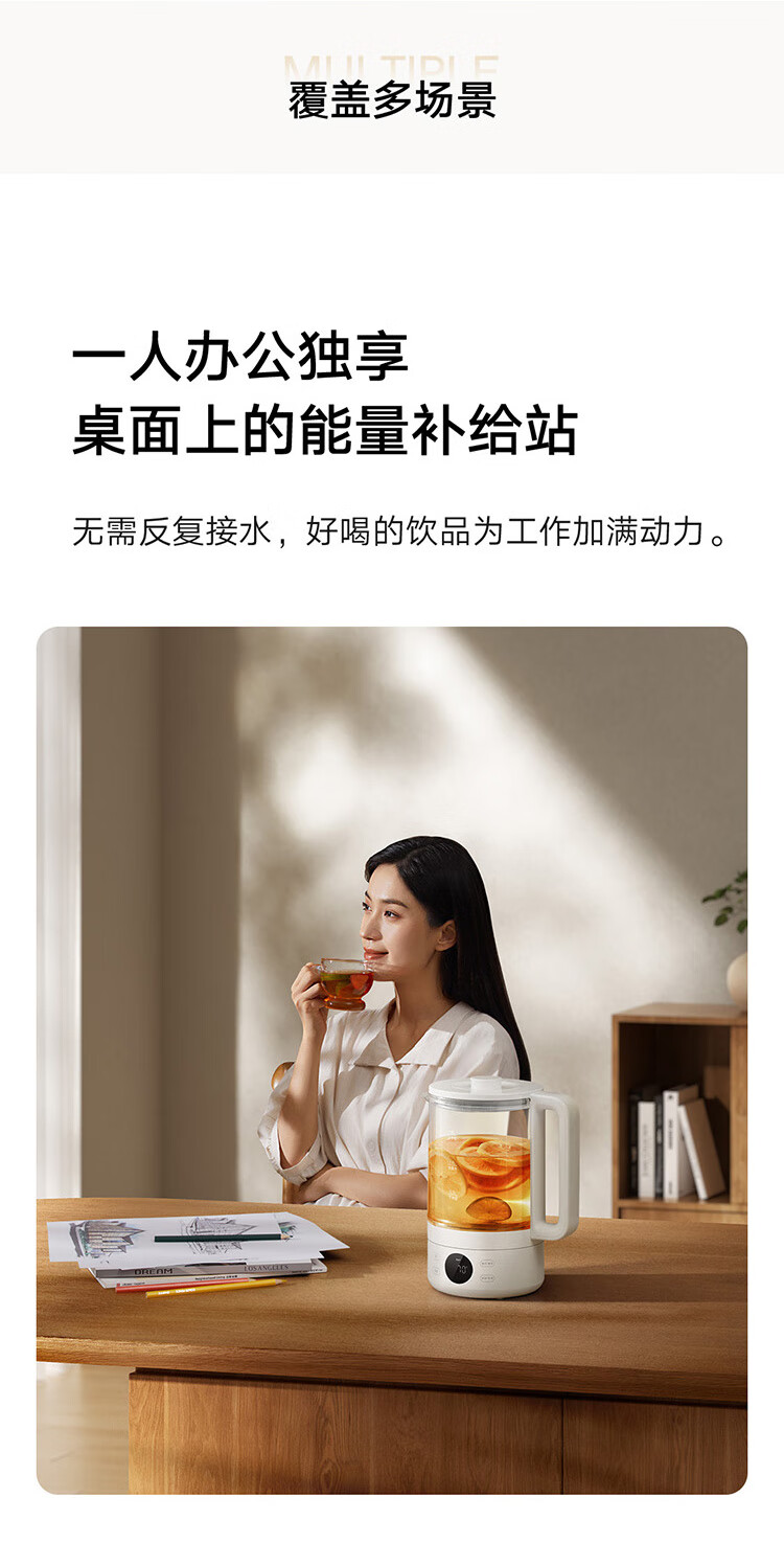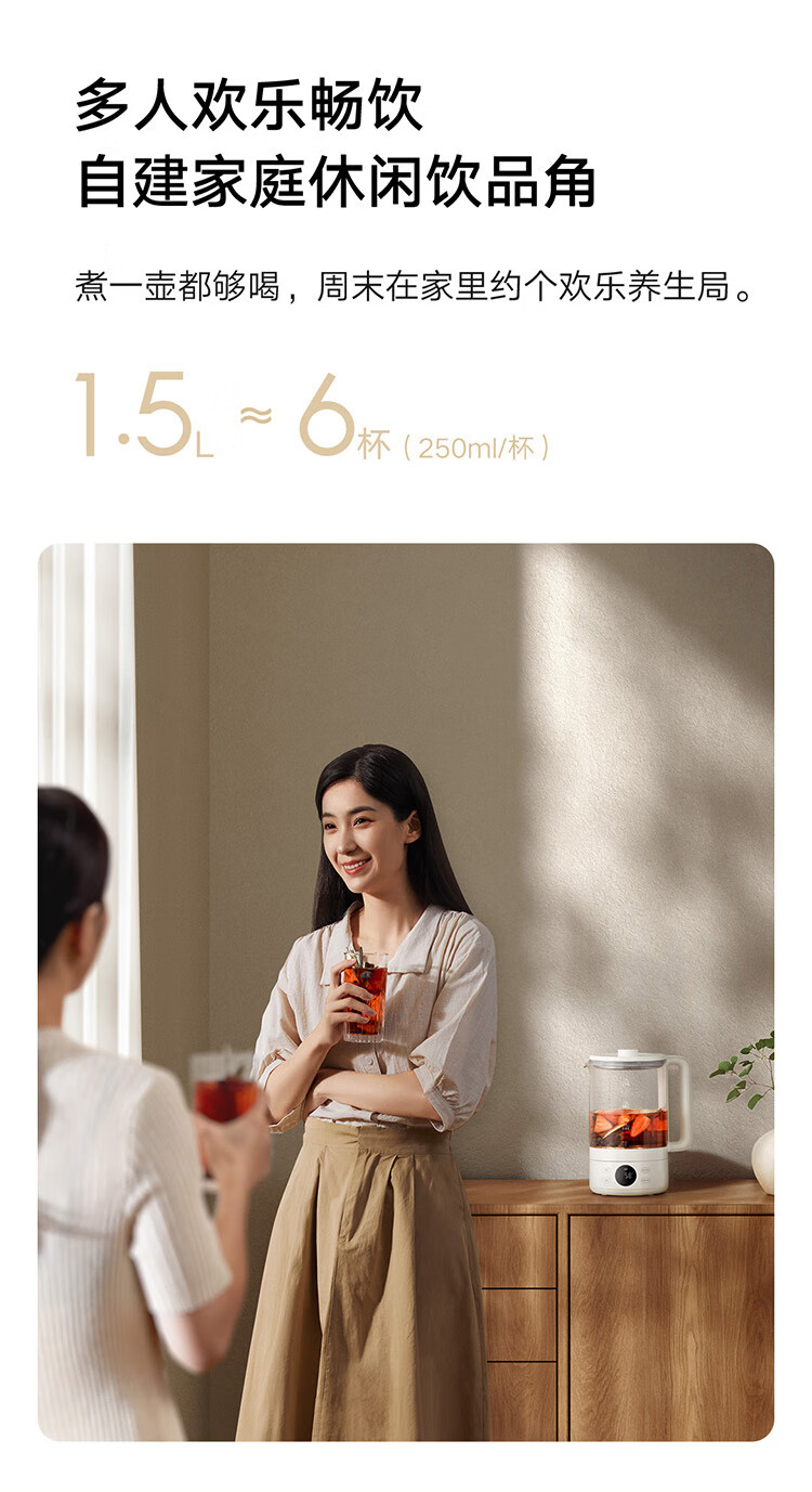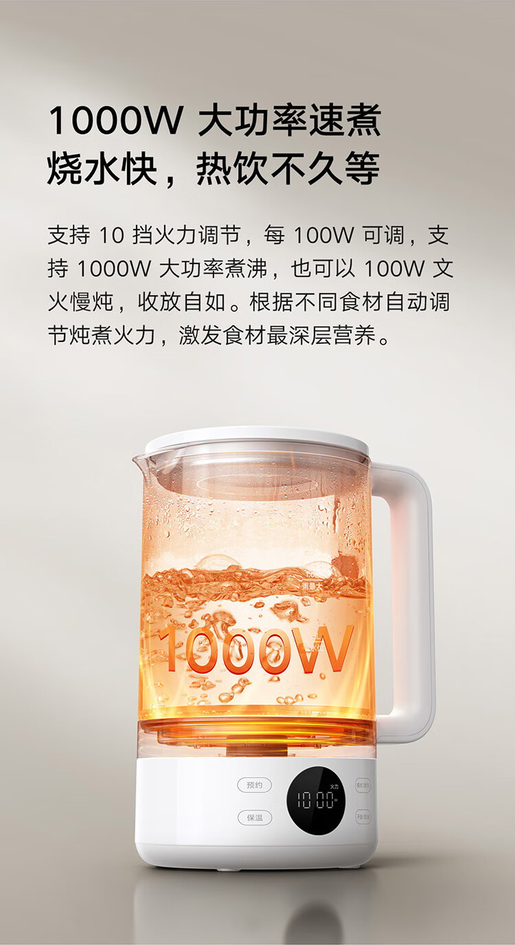米家多功能养生壶S1 办公室家用玻璃花茶壶烧水壶子母盖电热水壶电炖壶1.5L大容量白色多功能煮茶器 米家多功能养生壶S1 1.5L