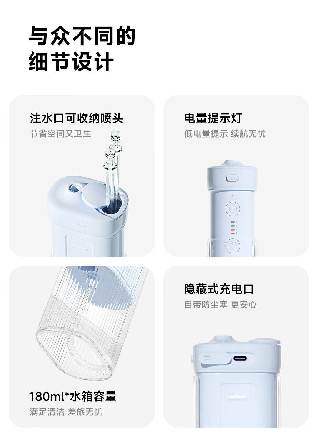 DOCO LAB【38女神节礼物】电动冲牙器家用便携式正畸冲牙器超声波洁牙器洗牙器去牙结石水牙线牙齿冲洗器