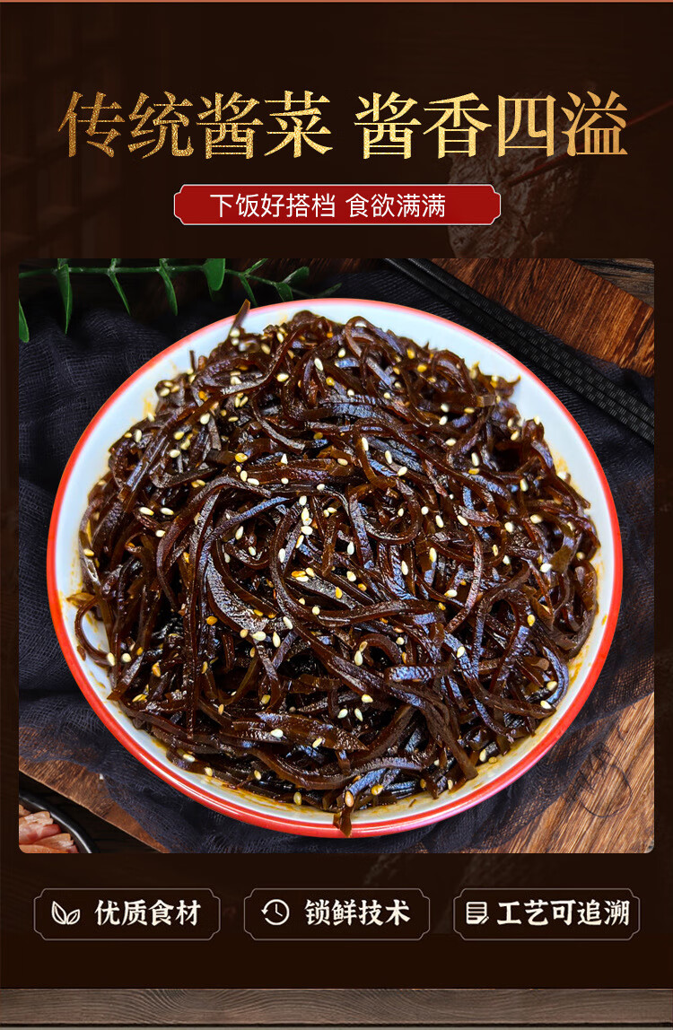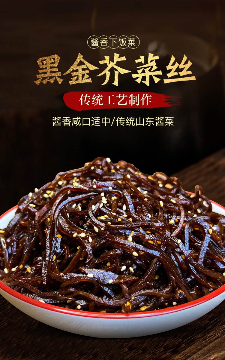 山东正宗特产老咸菜丝黑金丝酱香即食芥菜丝咸菜批发下饭菜开胃菜 250g*2袋