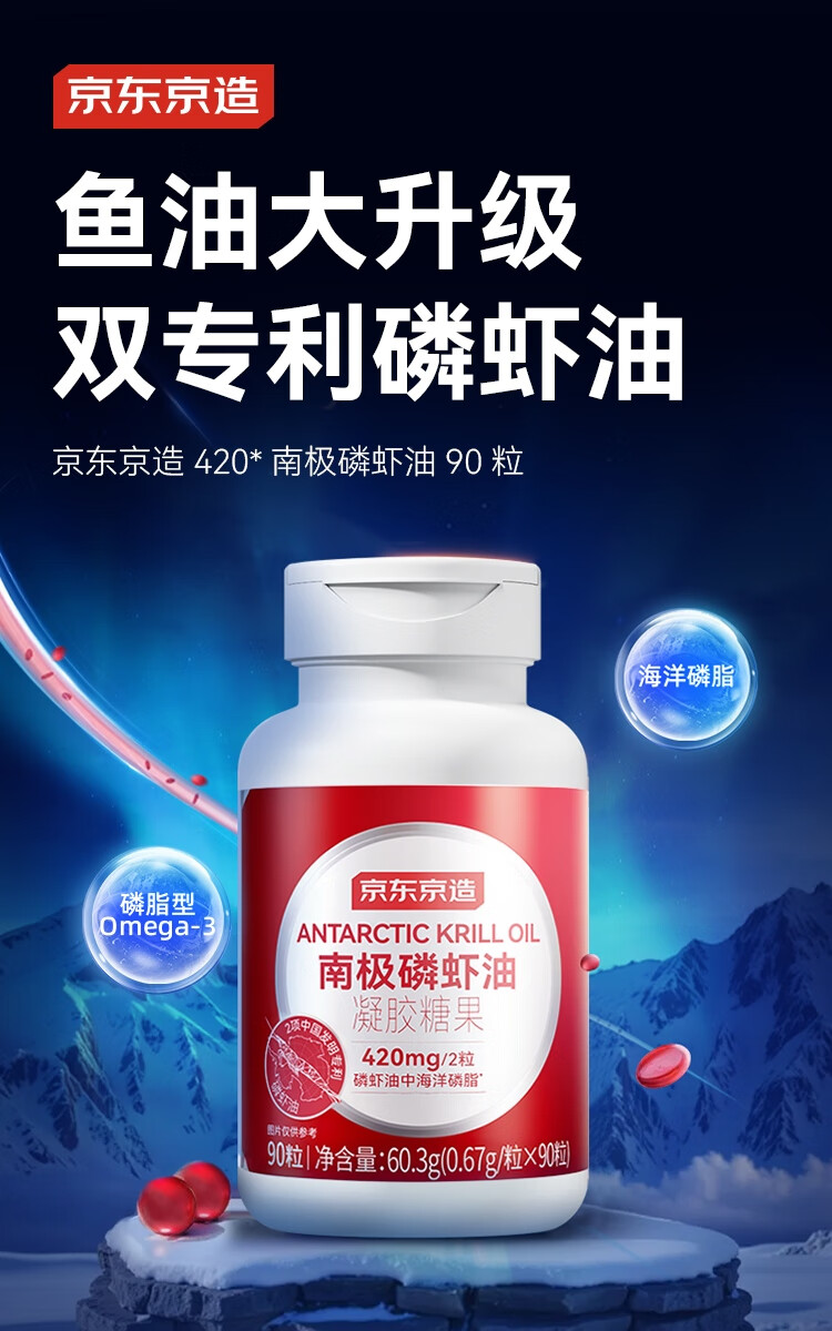 京东京造南极磷虾油90粒 深海鱼油升级磷脂型高纯度Omega-3