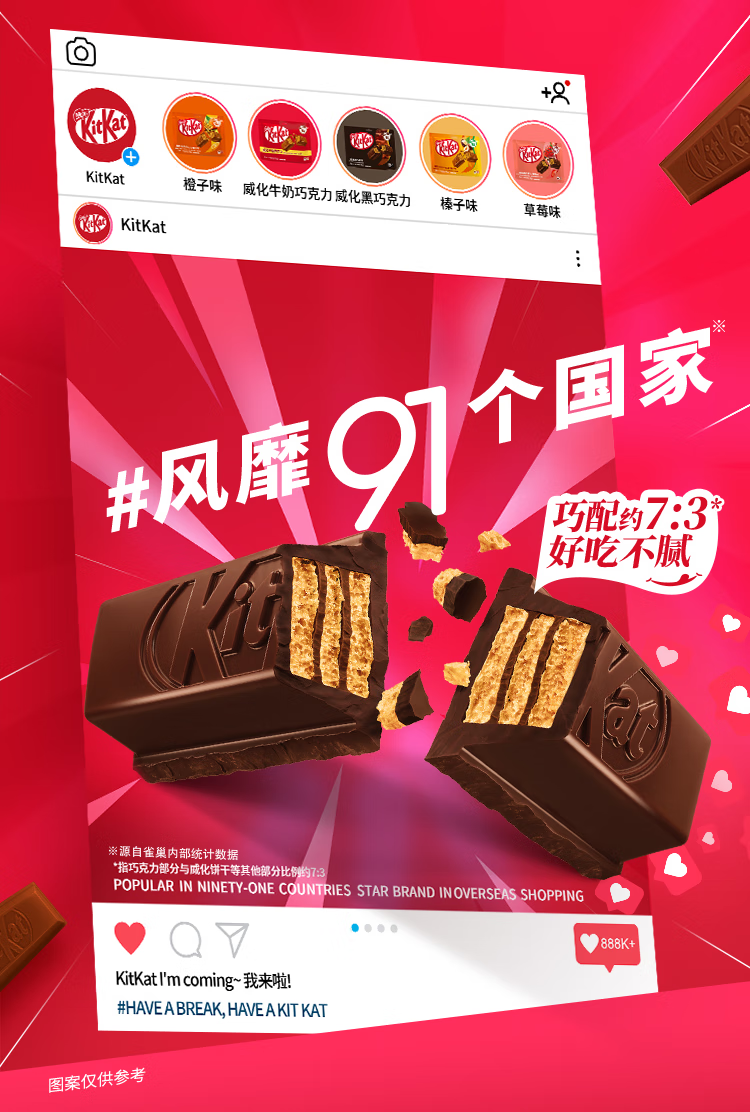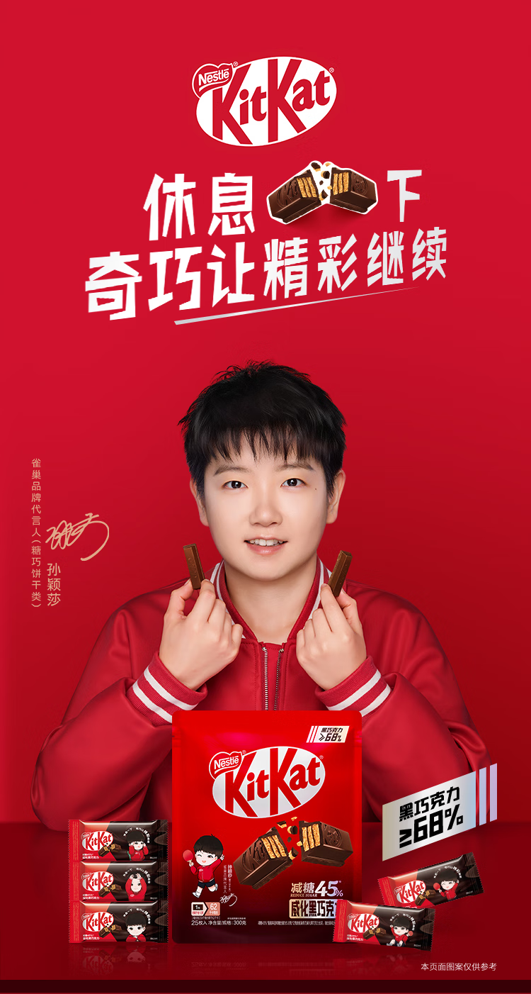 雀巢 【莎莎同款】奇巧威化减糖45%黑巧克力300g 新年礼物 休闲零食