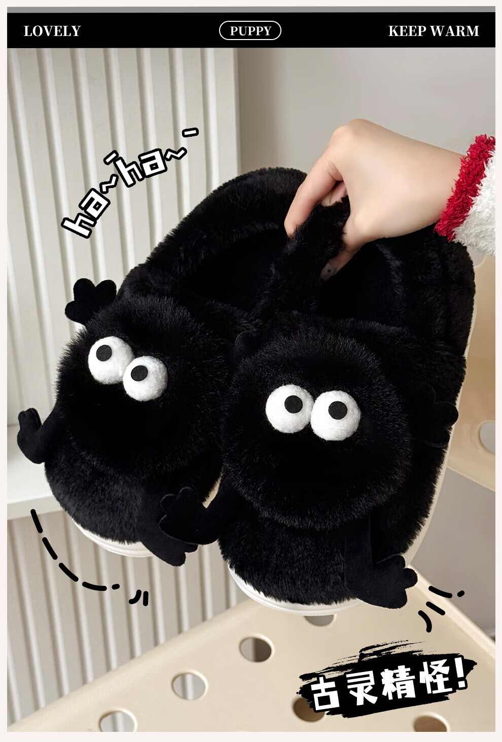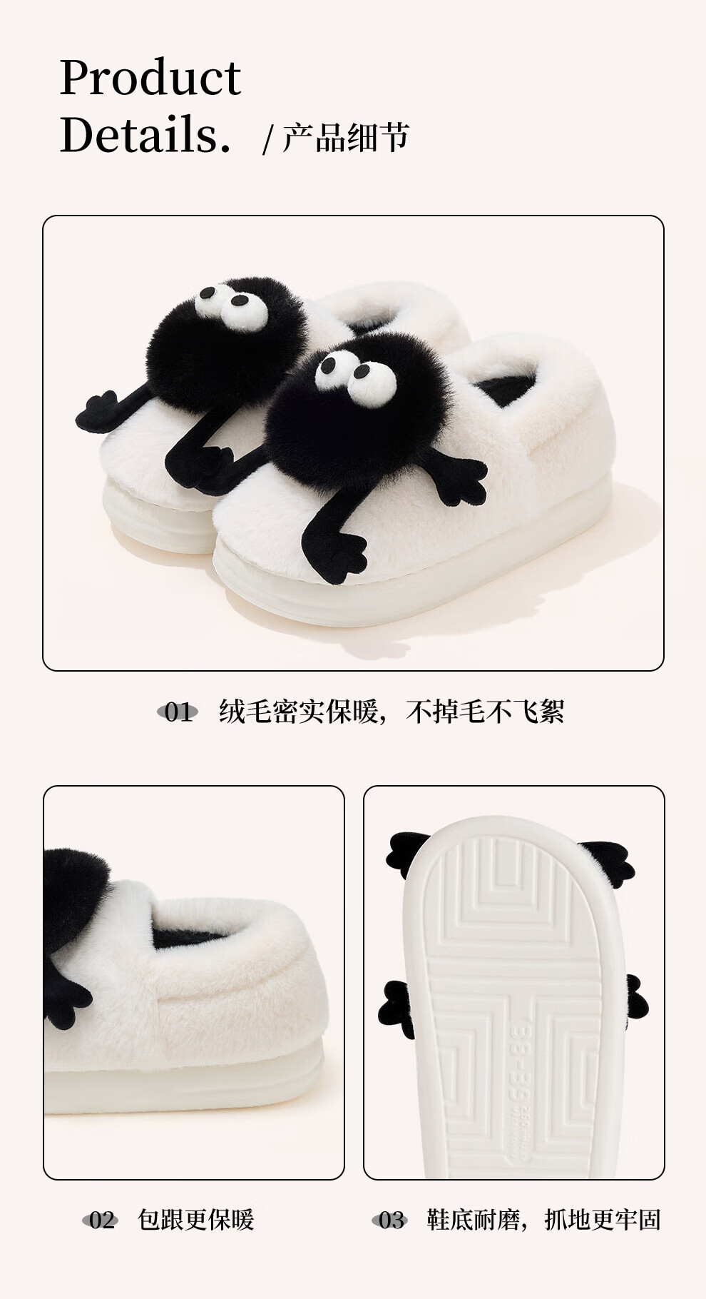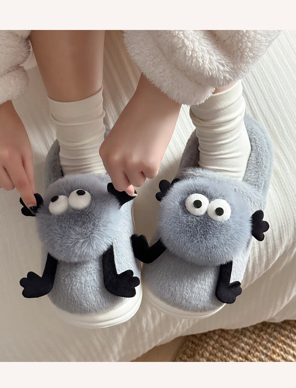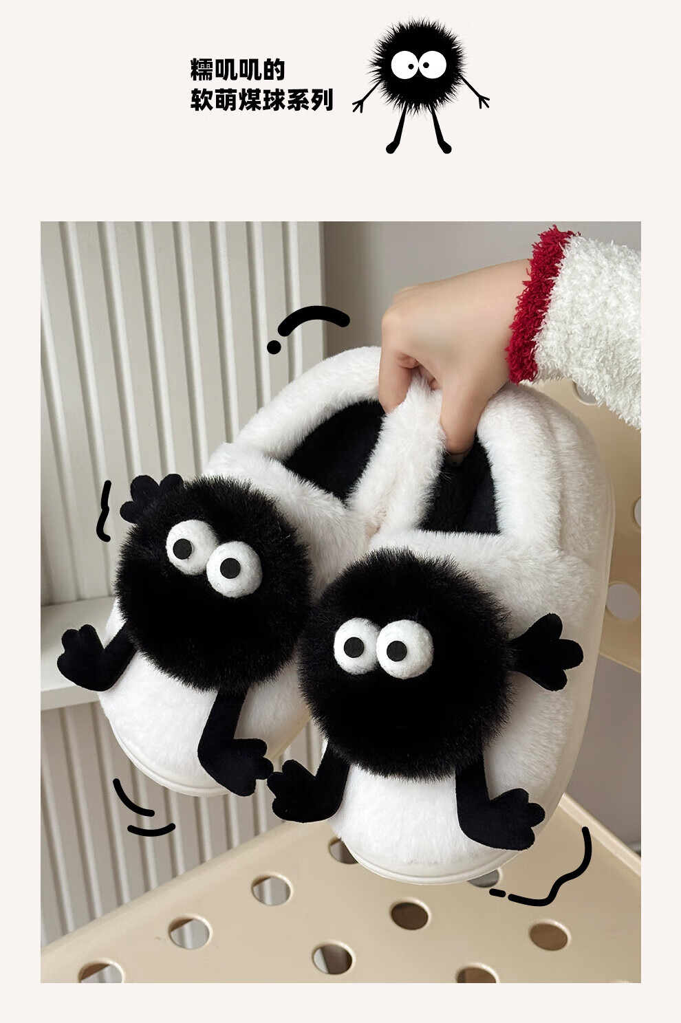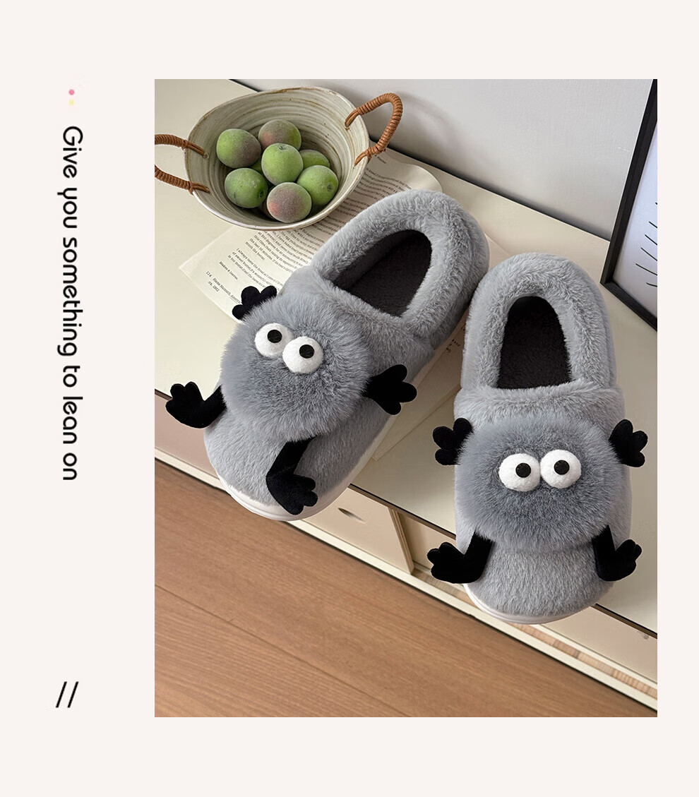 FZT搞怪小煤球包跟棉拖鞋女士2025秋冬季新款居家可外穿厚底棉鞋男款 灰色 36-37 正码