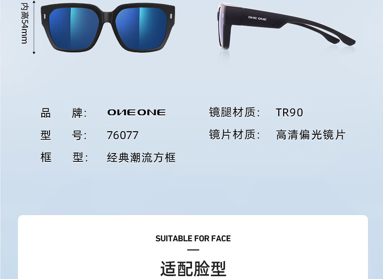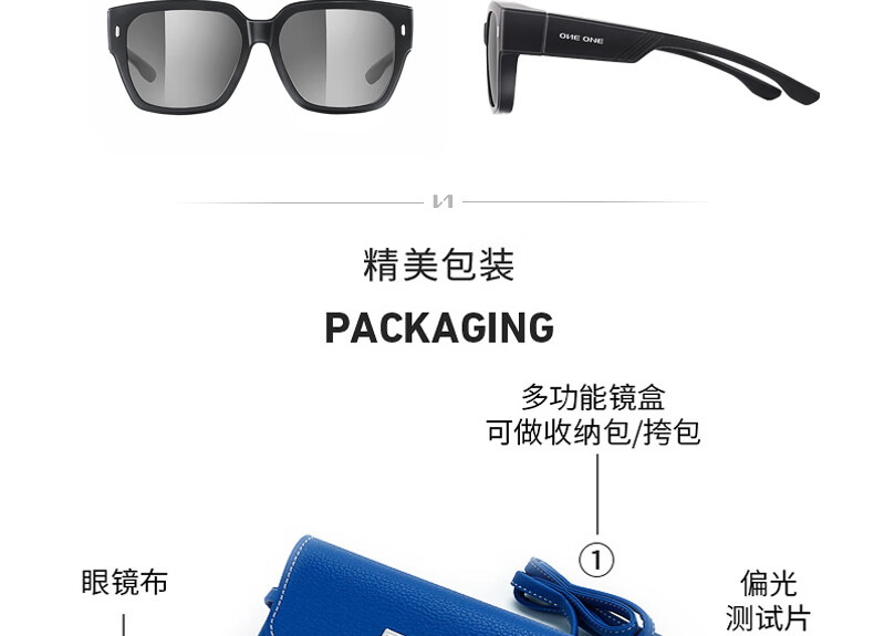 one&one【可套近视镜】偏光太阳镜轻盈男女通用防晒开车驾驶墨镜夜视镜