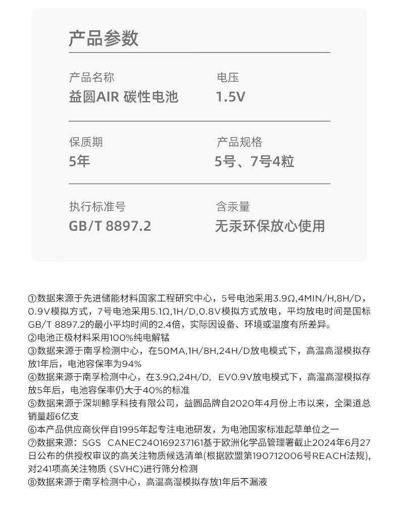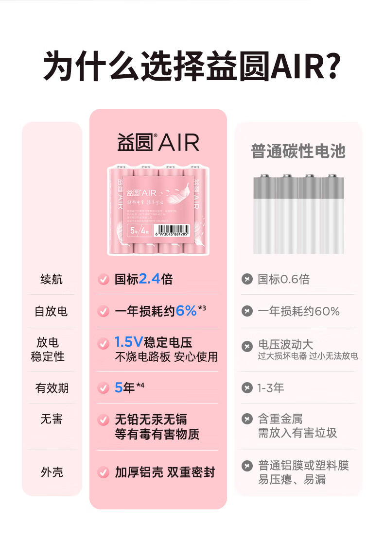 益圆air5号4粒 南孚旗下碳性电池适用血压计/燃气表/遥控器/电子秤/无线鼠标/计算器等【单件包邮】