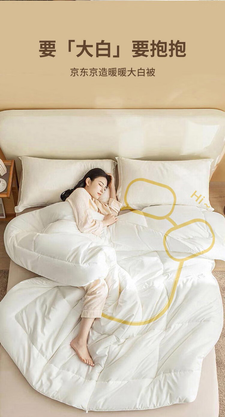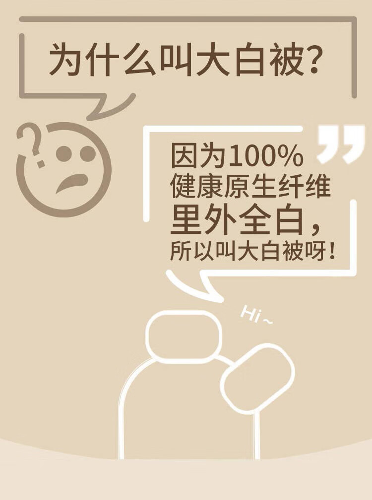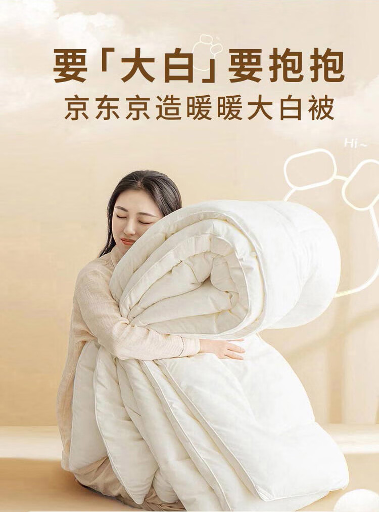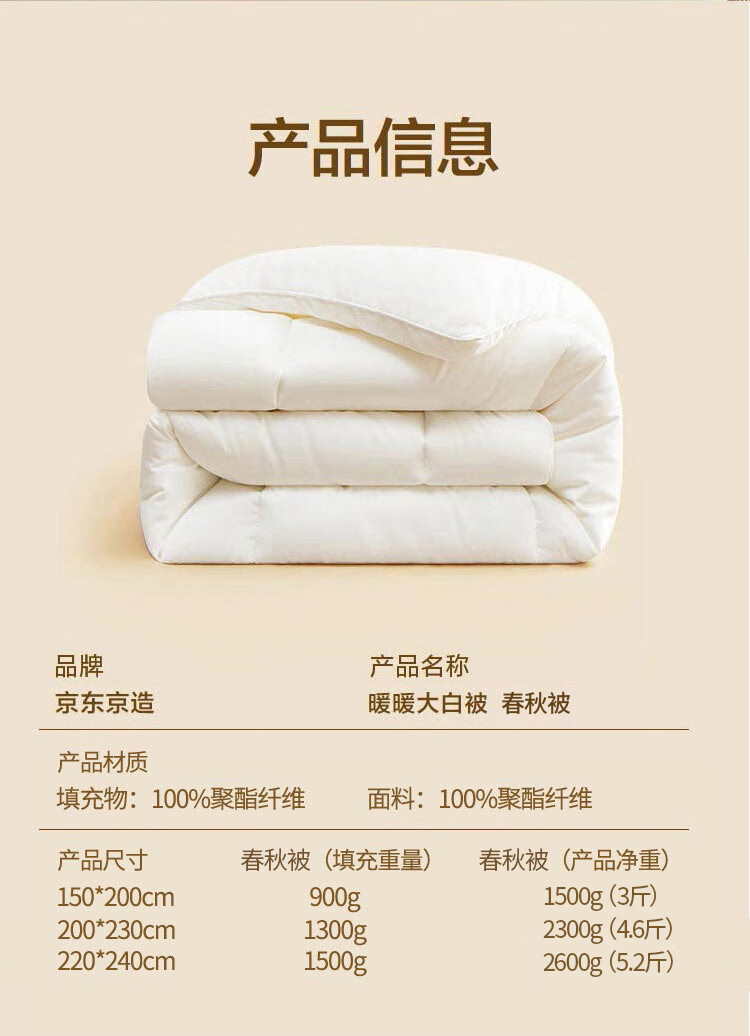 京东京造大白被 100%原生纤维A类磨毛保暖春秋被子四季被芯3斤1.5x2m