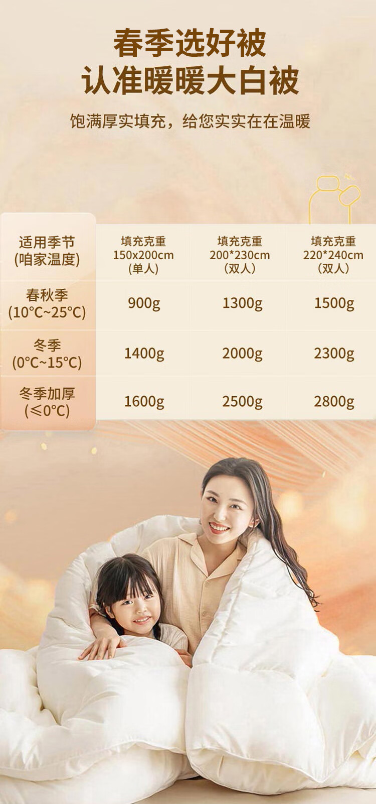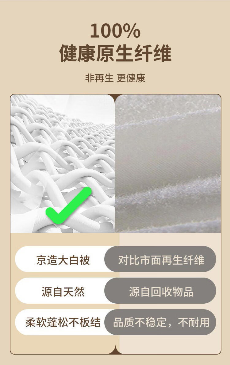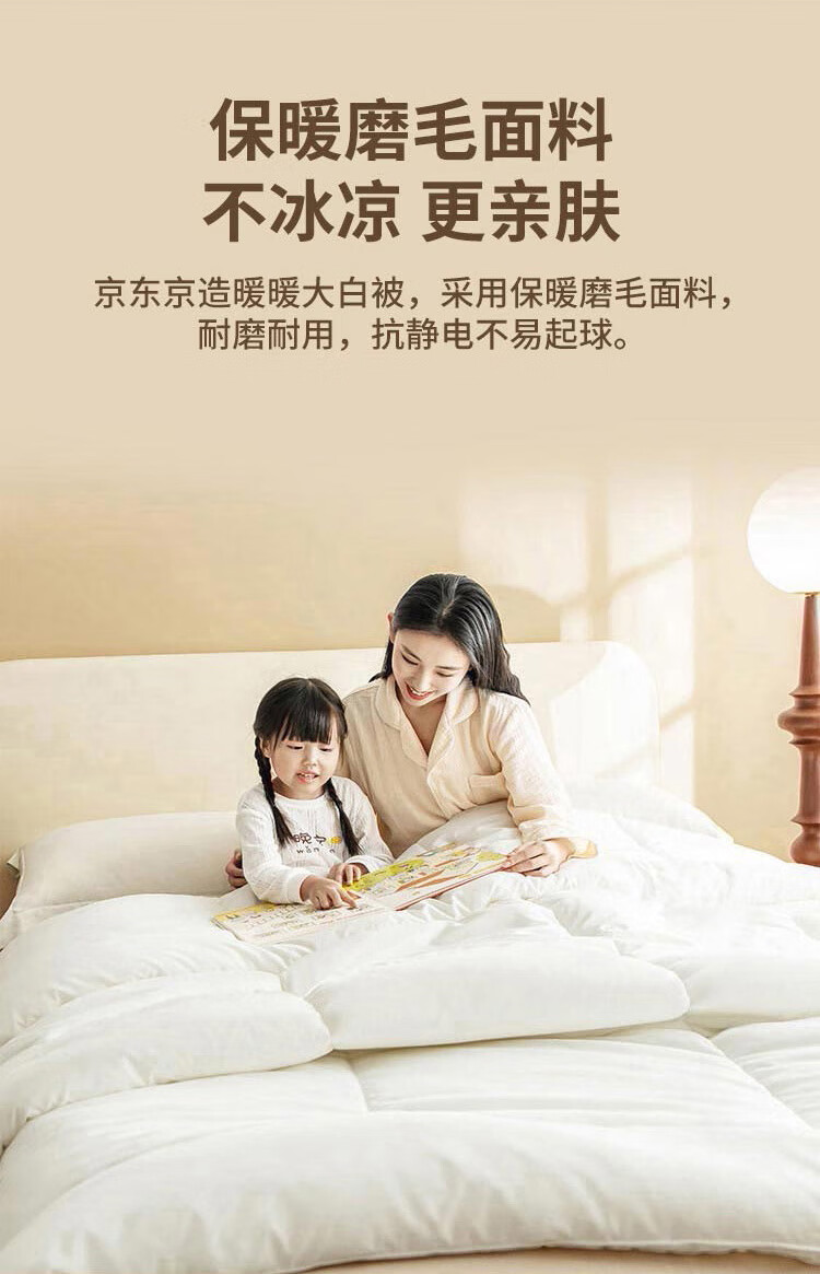 京东京造大白被 100%原生纤维A类磨毛保暖春秋被子四季被芯3斤1.5x2m