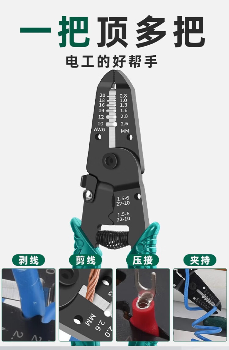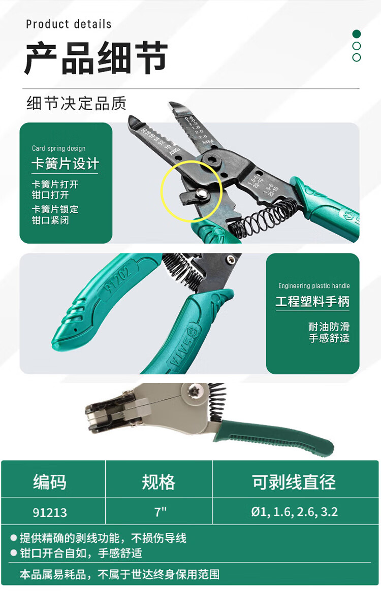 世达 SATA带刃口多功能电工钳压线钳剥线钳7" 91202