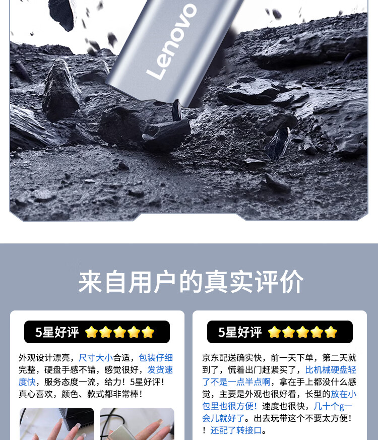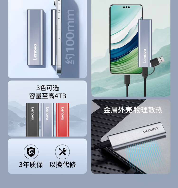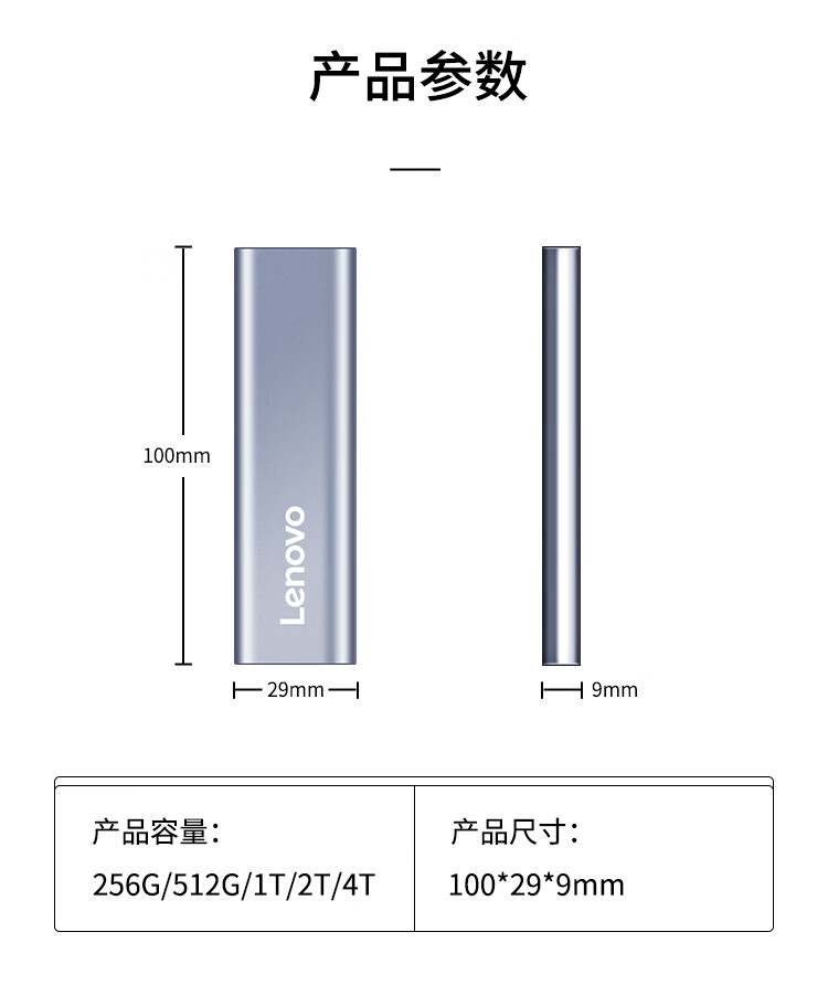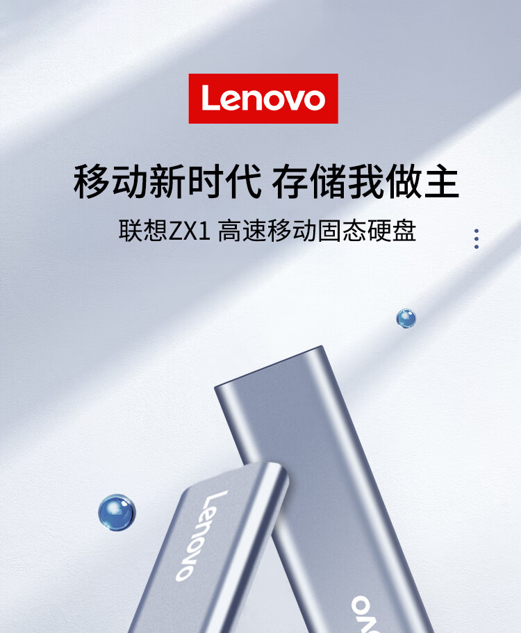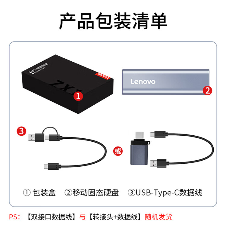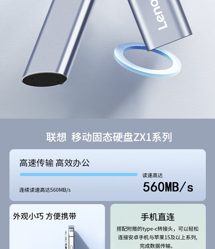 联想(Lenovo)512GB 移动硬盘固态(PSSD) ZX1 Type-c USB3.1双接口 读速560MB/s 手机直连 电脑 银色