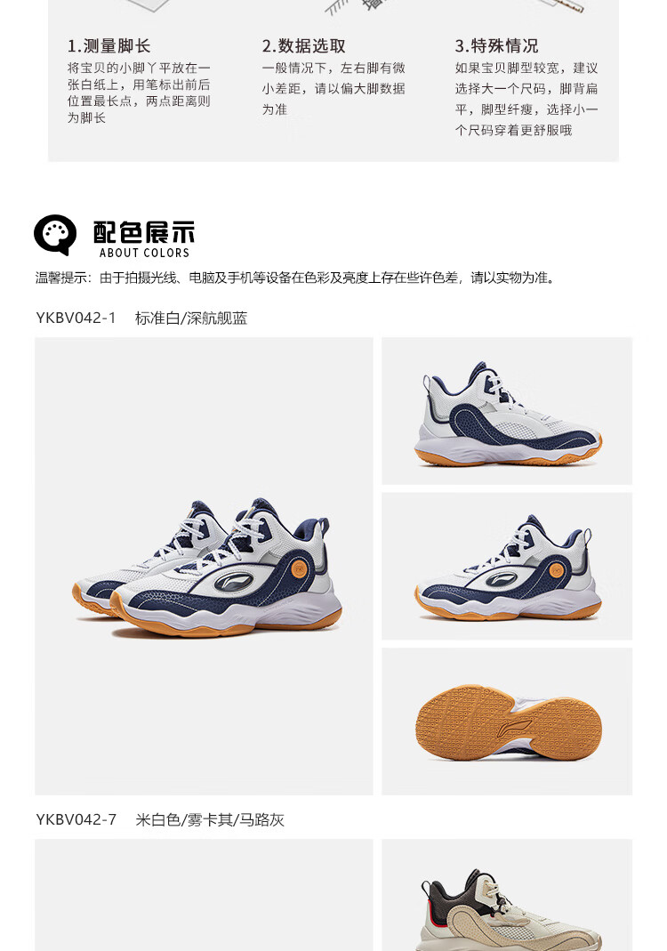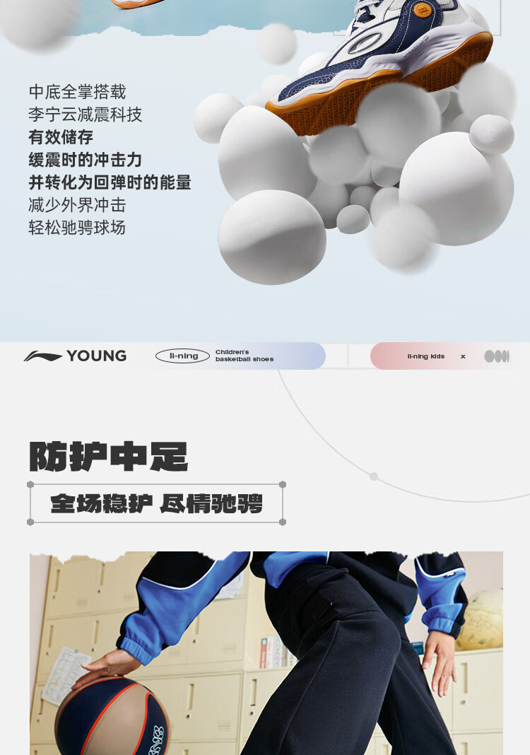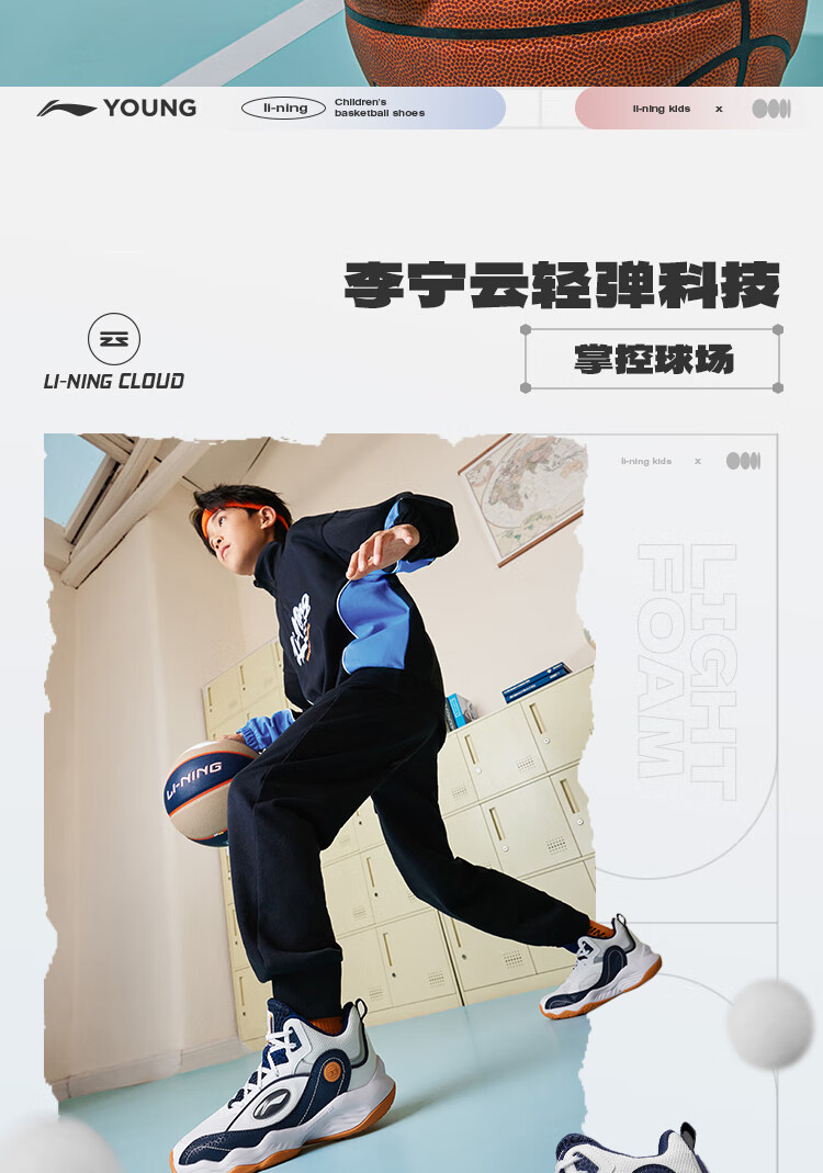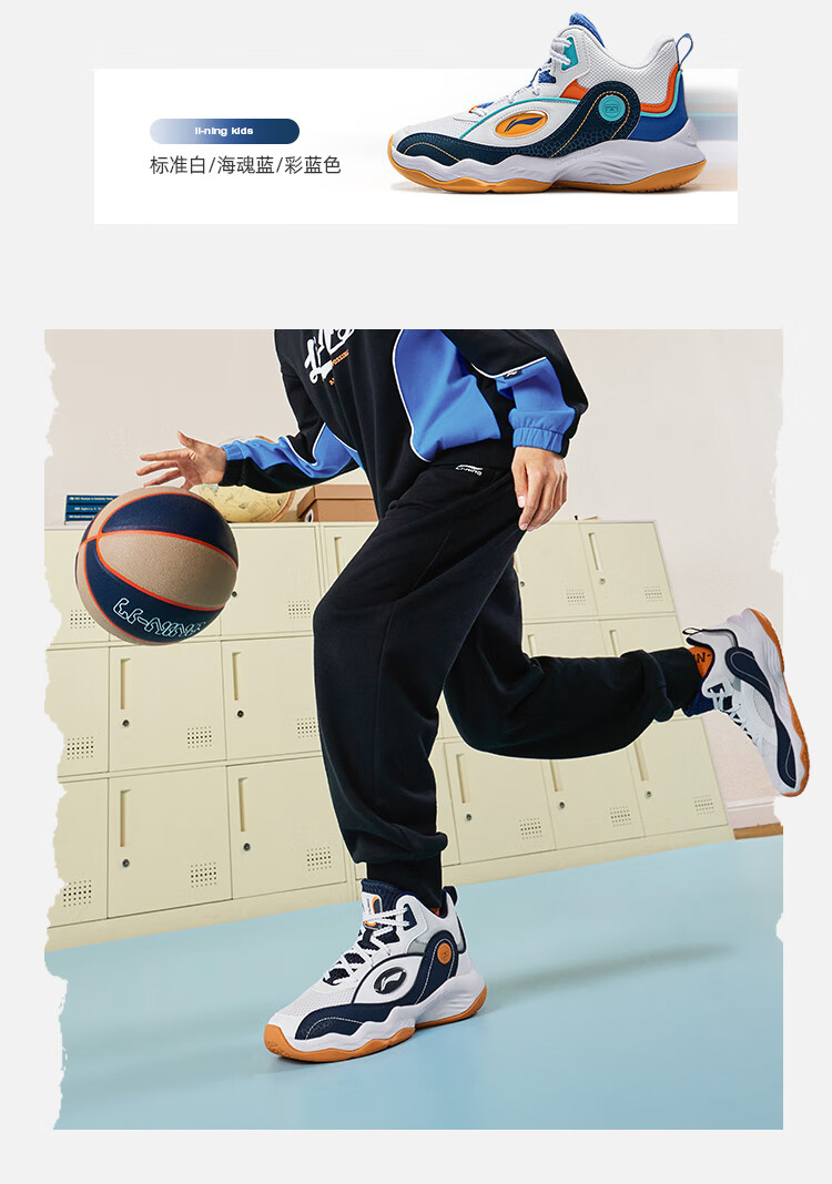 李宁童鞋儿童篮球鞋男大童李宁云减震回弹轻量运动鞋38YKBV042-7