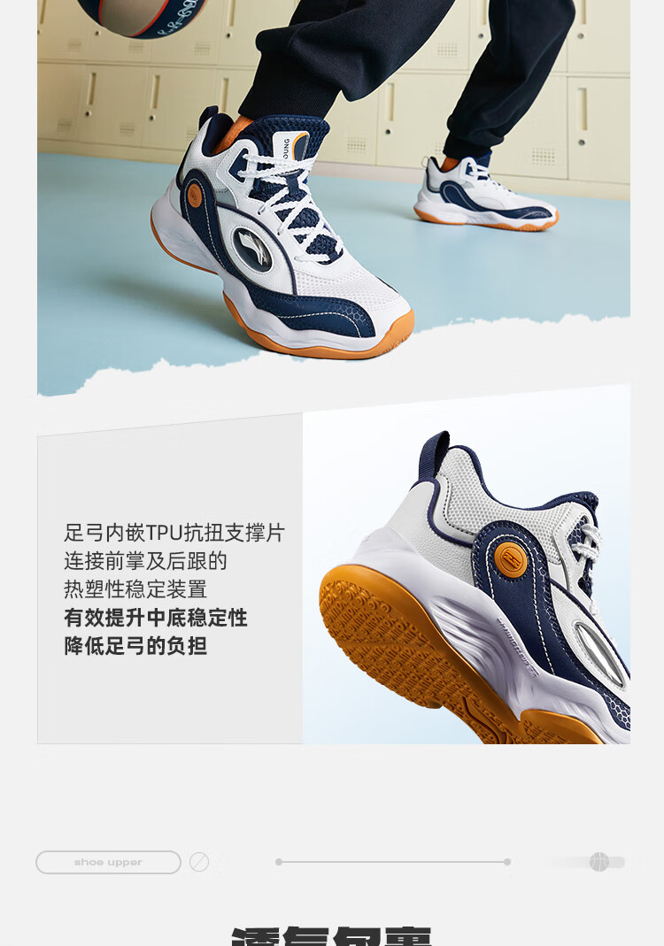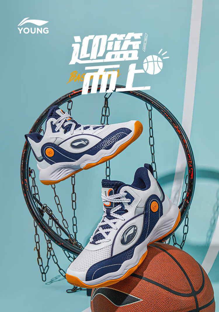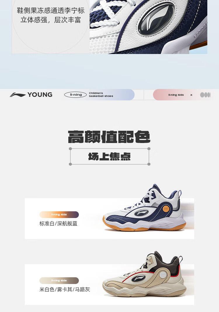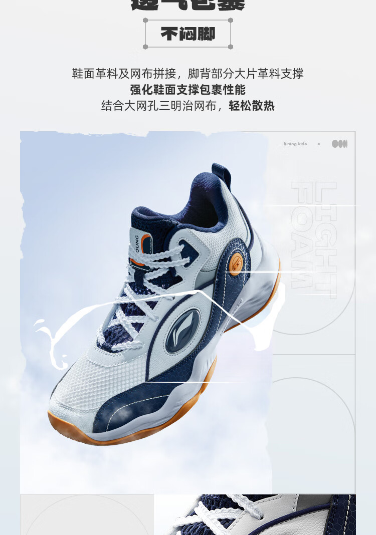 李宁童鞋儿童篮球鞋男大童李宁云减震回弹轻量运动鞋38YKBV042-7