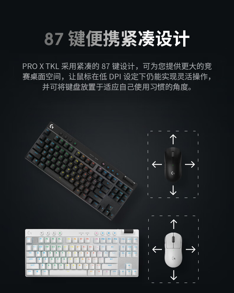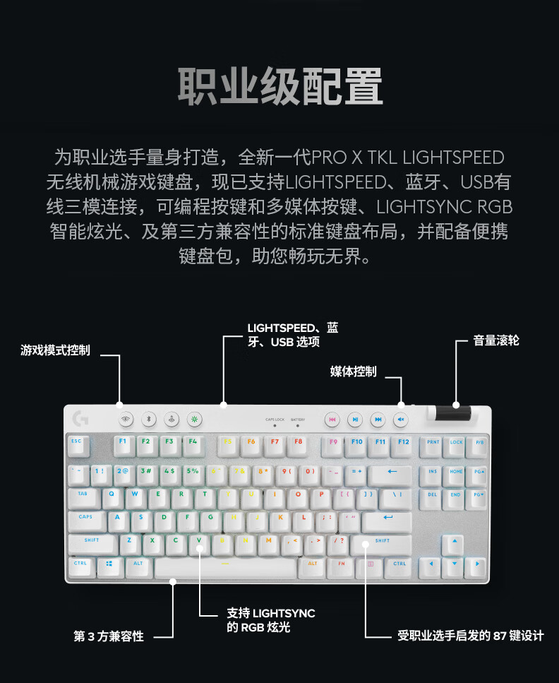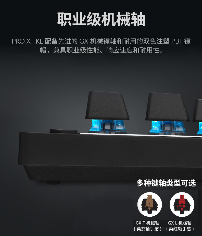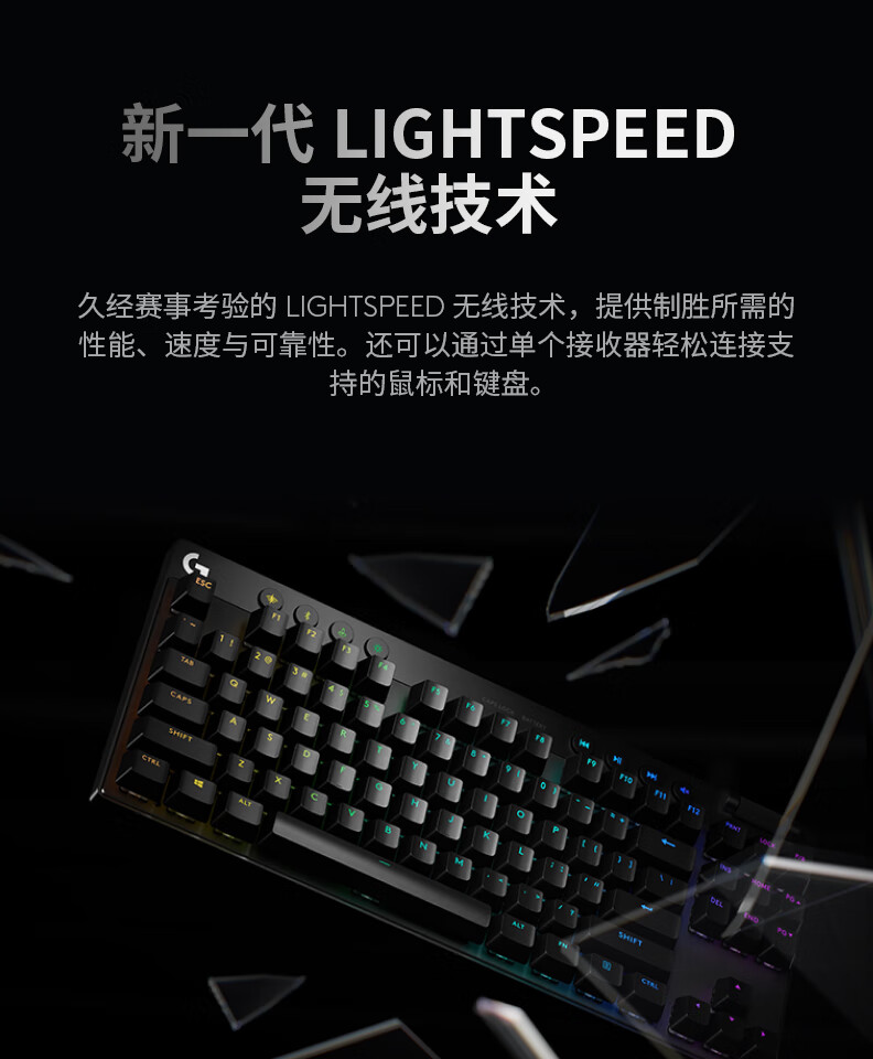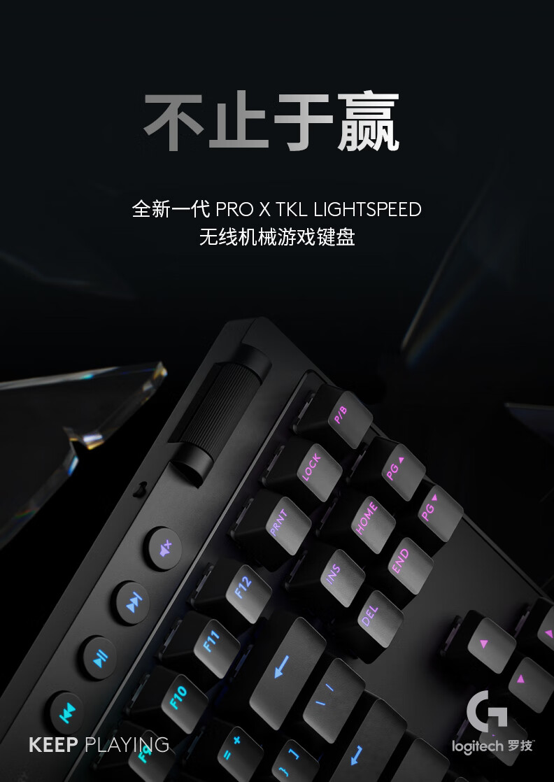 罗技(G)G PRO X TKL 游戏机械键盘 无线键盘 粉色 茶轴 段落轴 87键紧凑设计
