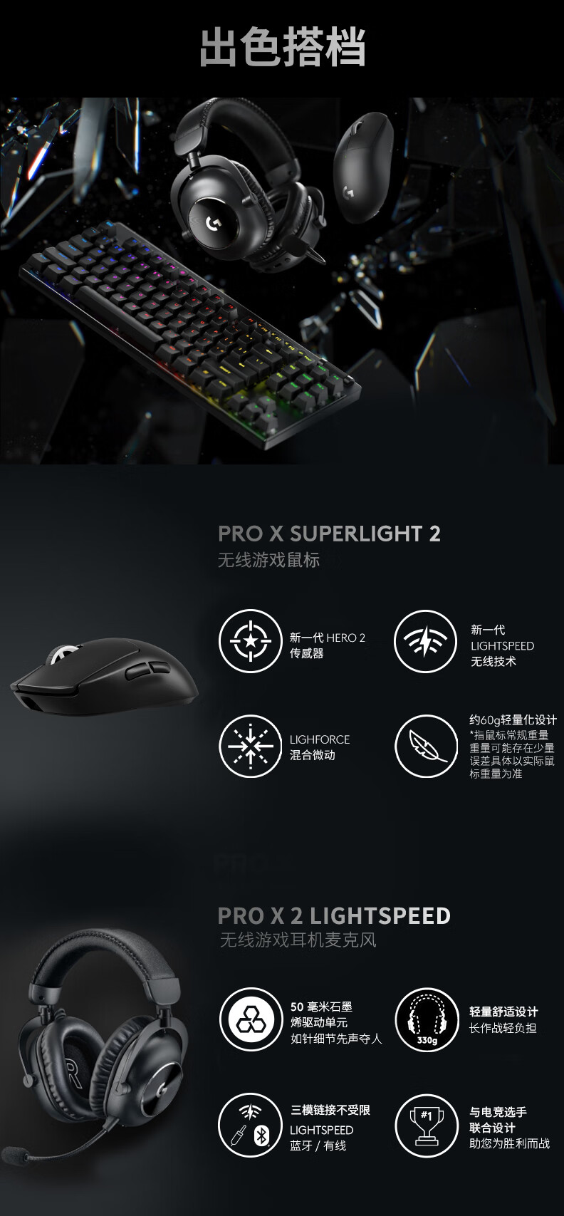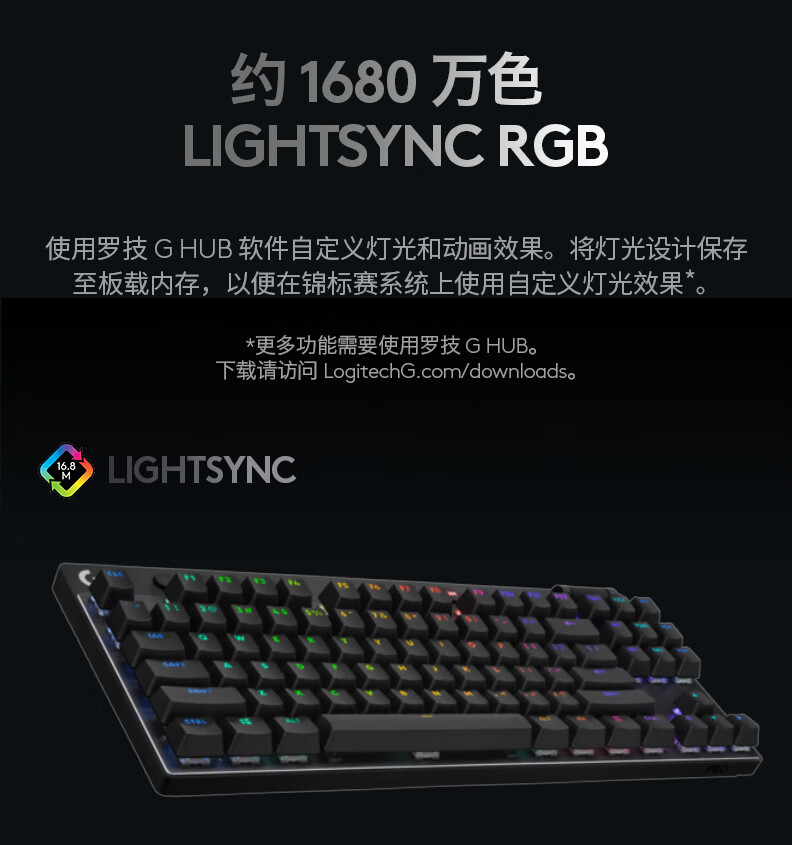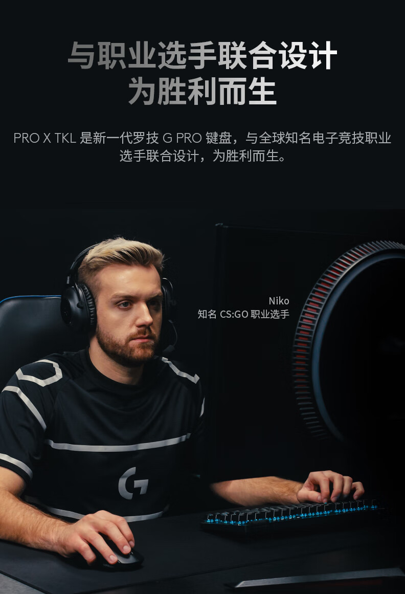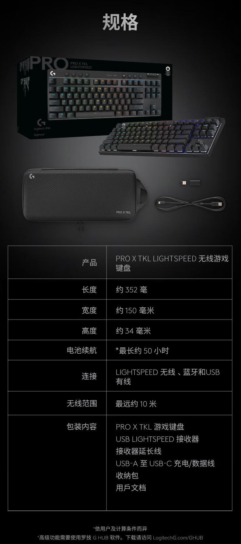 罗技(G)G PRO X TKL 游戏机械键盘 无线键盘 粉色 茶轴 段落轴 87键紧凑设计