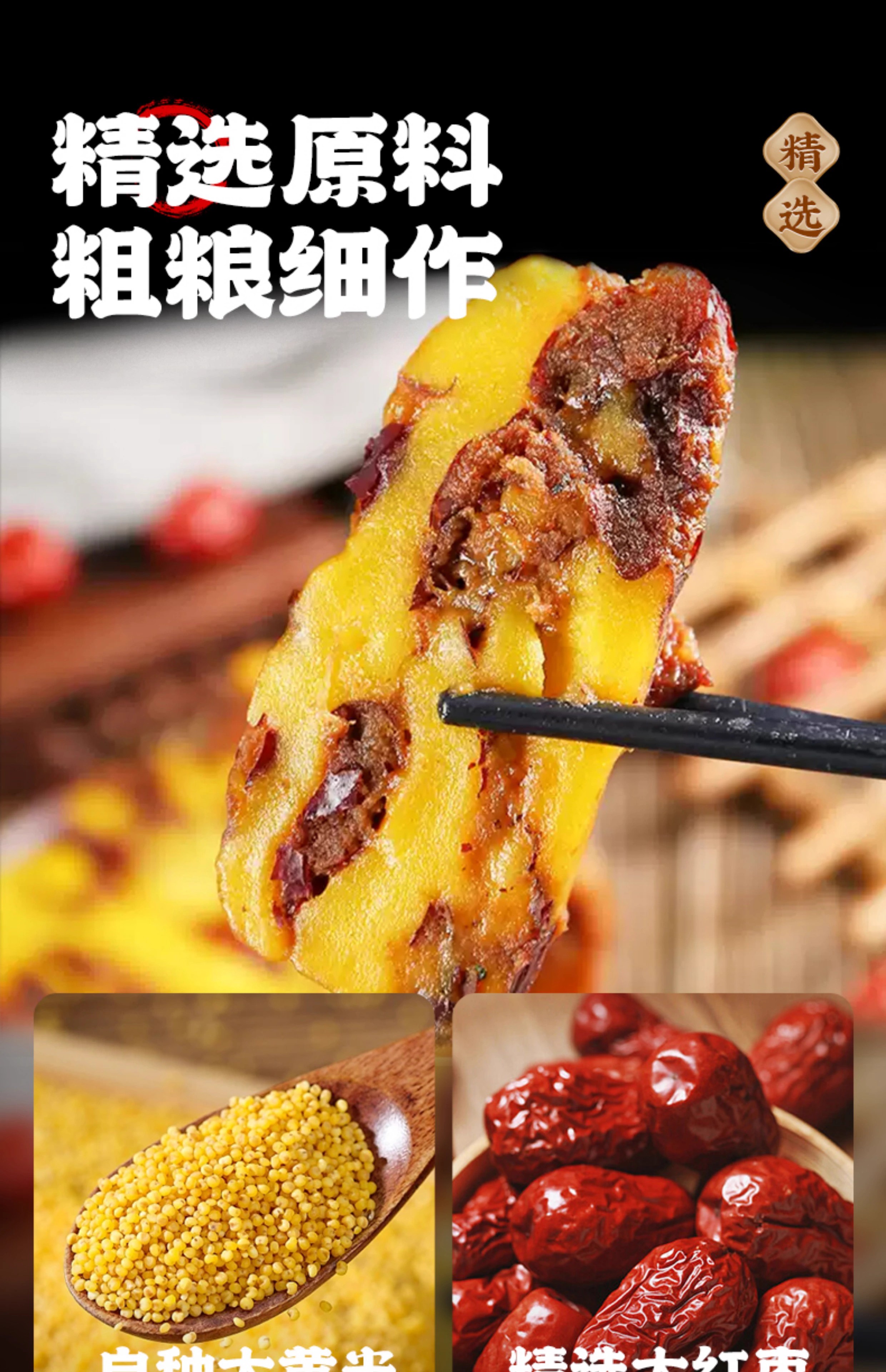黄米面糕山西特产大黄米枣糕年糕豆包油糕炸糕切糕片手工新鲜现做 枣糕500g+红豆包500g