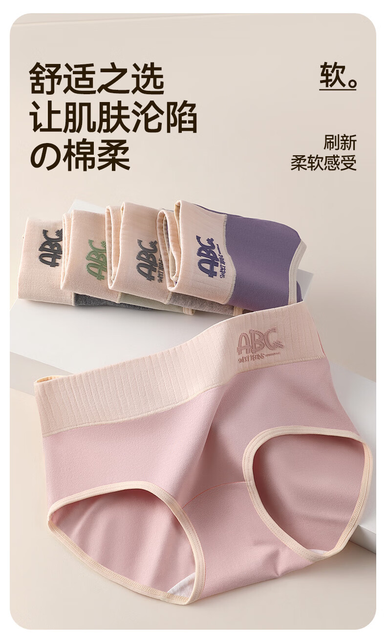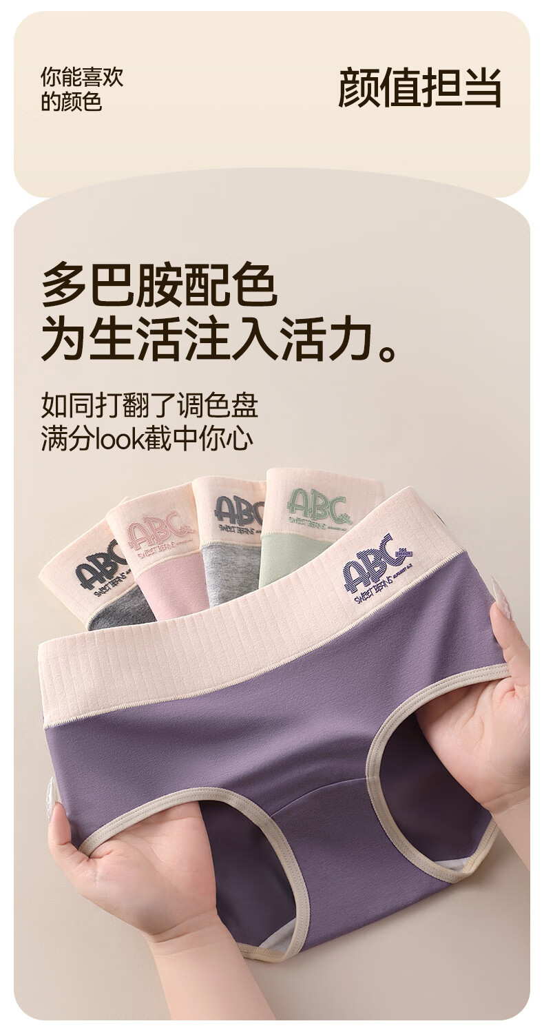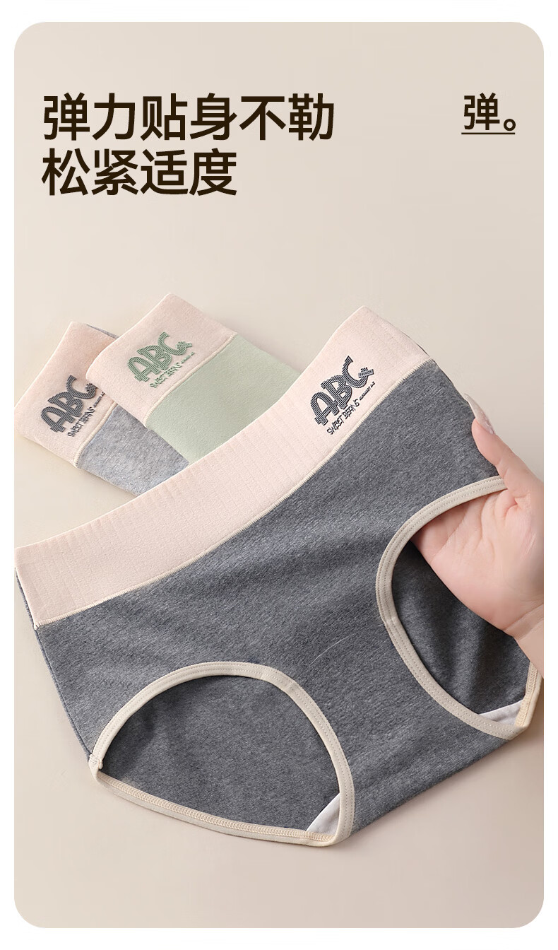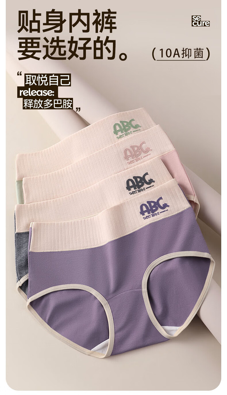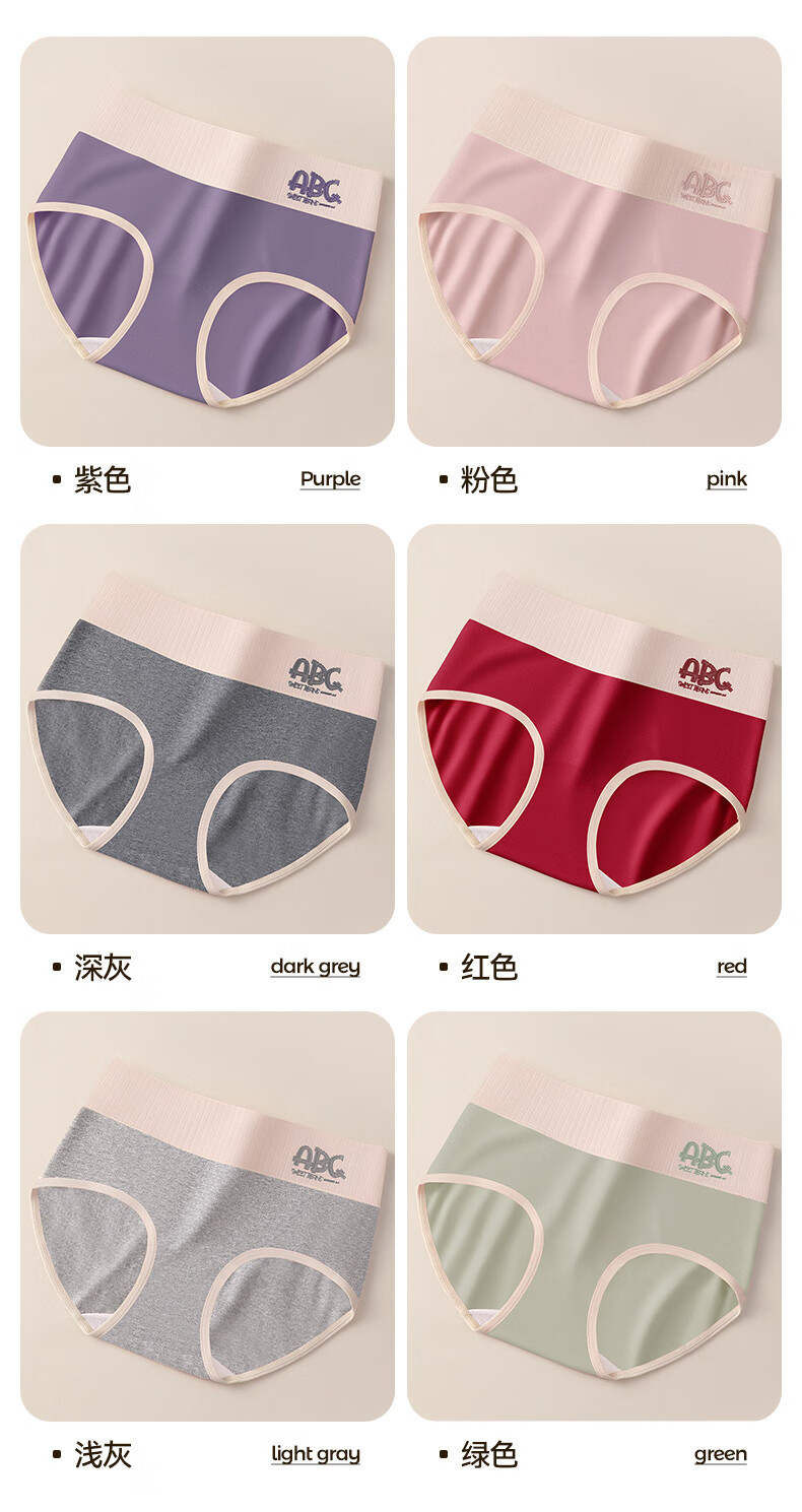 康丽霞(4条)新疆棉女士内裤女纯棉裆10A抗菌中腰透气大码女三角短裤头 4条装:深灰+浅灰+紫色+绿色 L (100-120斤)