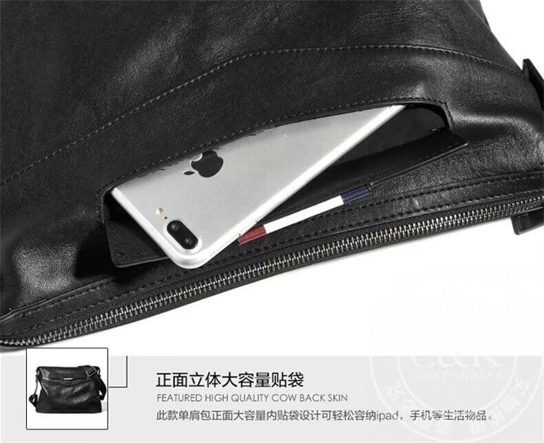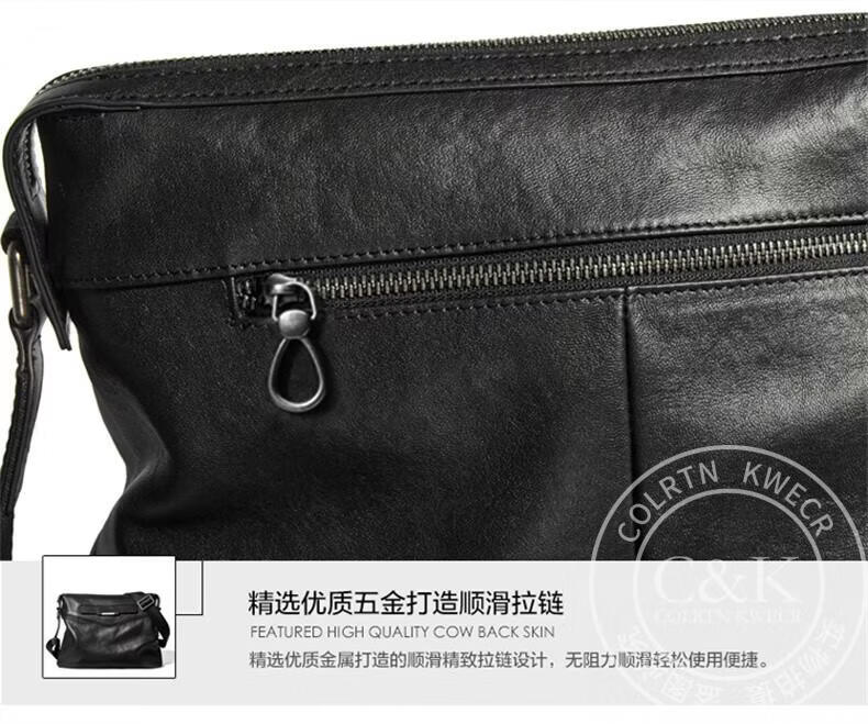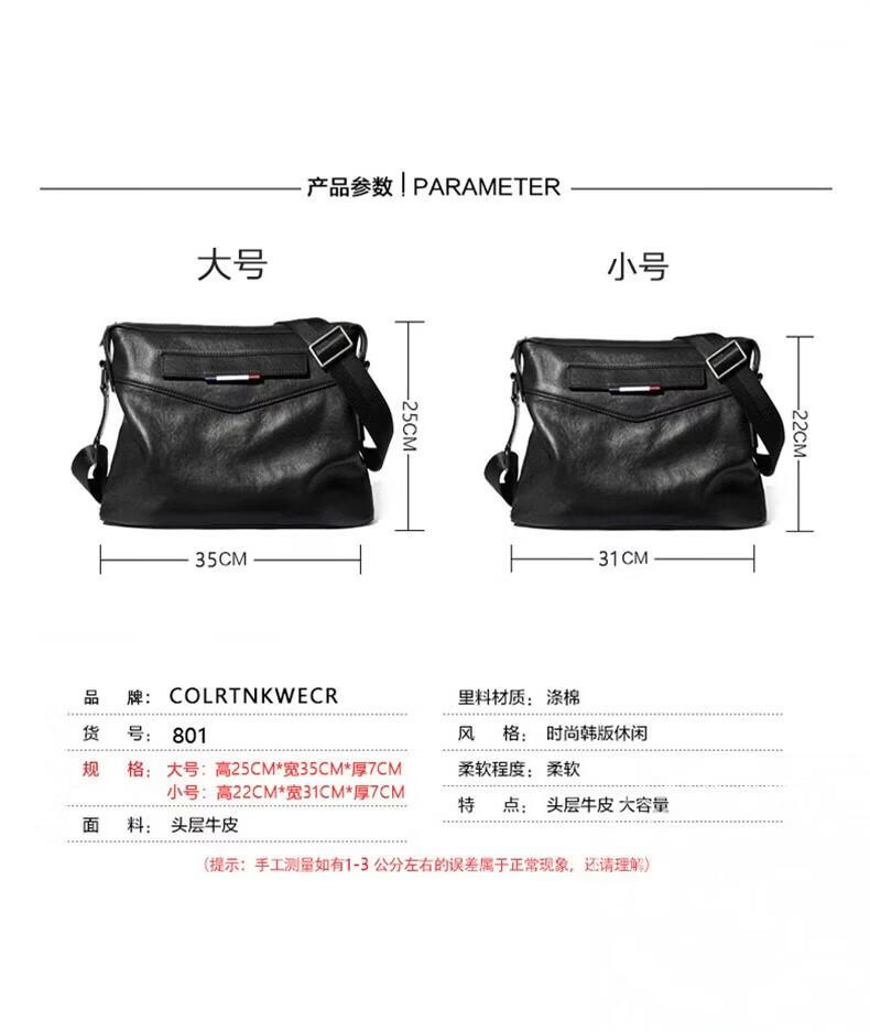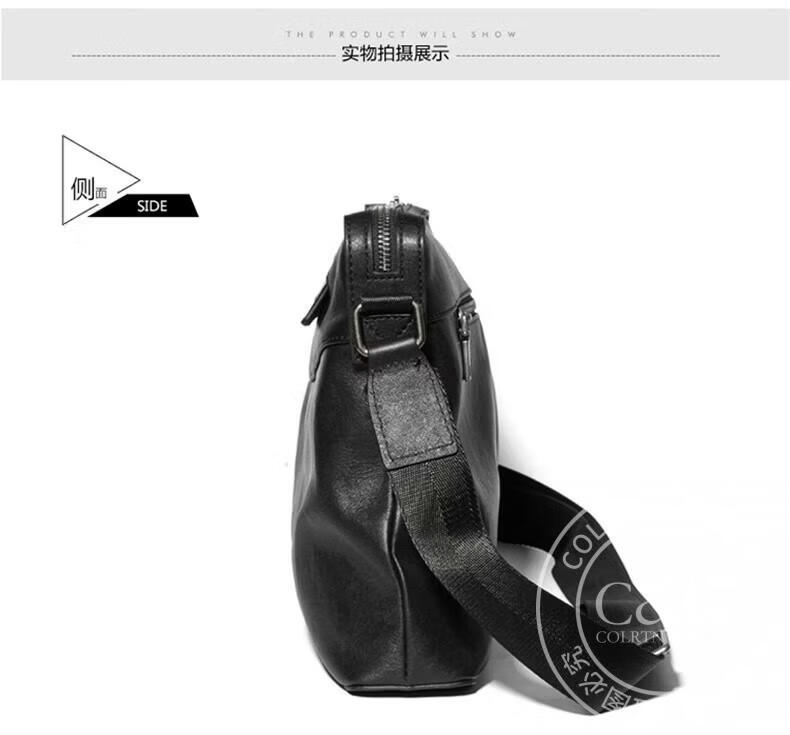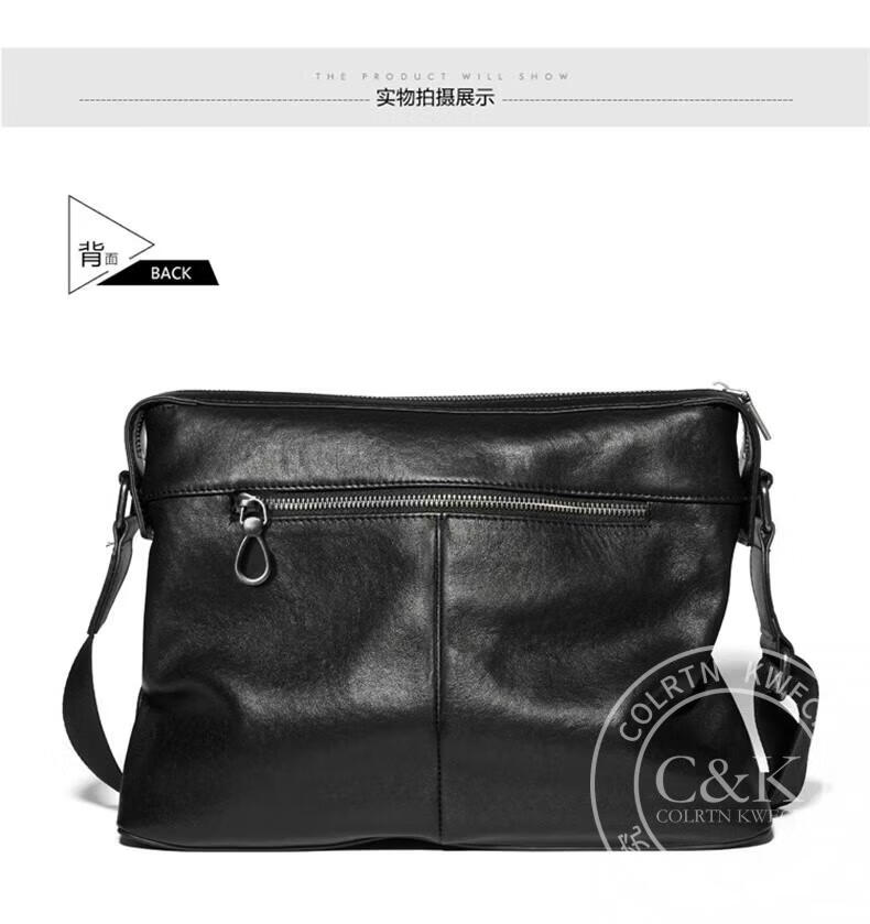 Colrtn Kwecr 男士单肩包新款大容量斜挎包真牛皮时尚背包邮差包情人节礼物男 黑色大号36*26*7(12英寸)