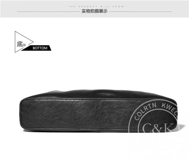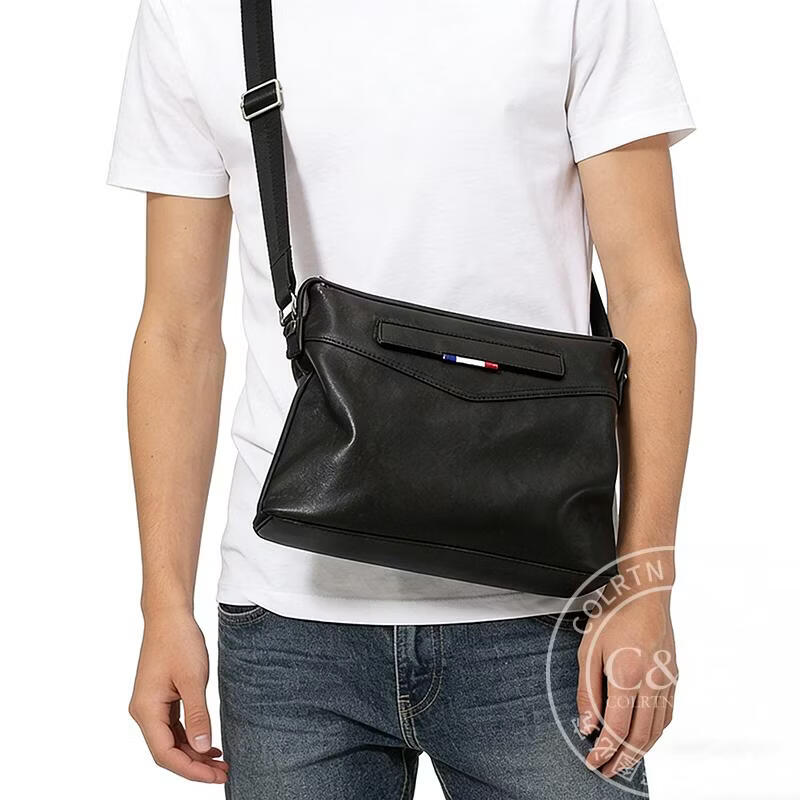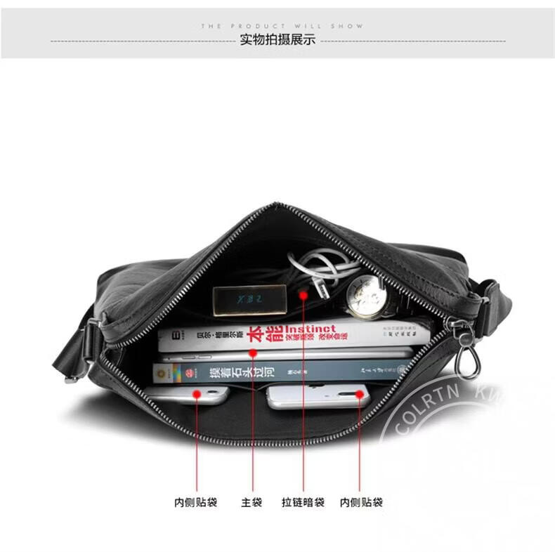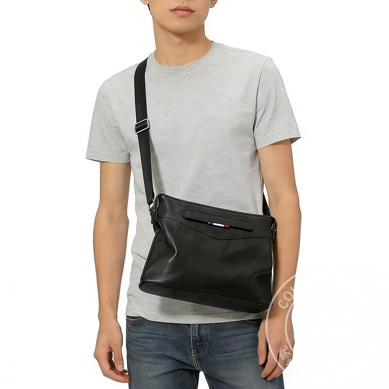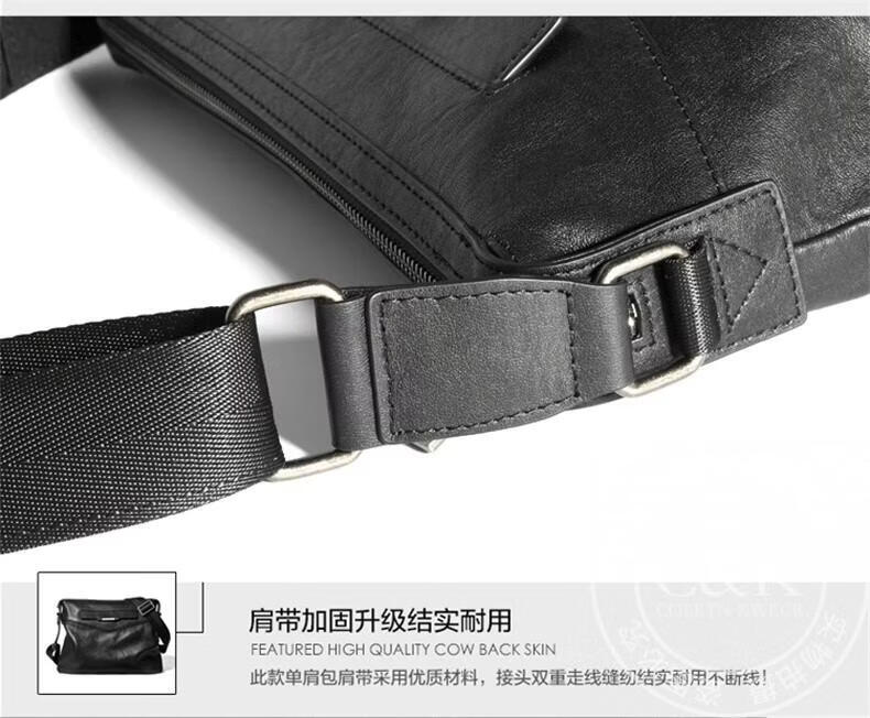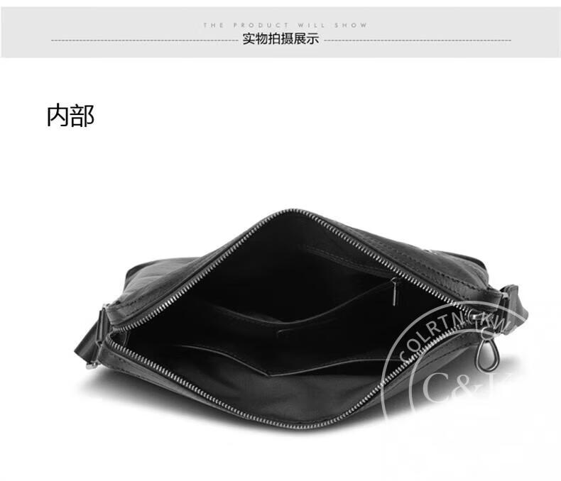 Colrtn Kwecr 男士单肩包新款大容量斜挎包真牛皮时尚背包邮差包情人节礼物男 黑色大号36*26*7(12英寸)