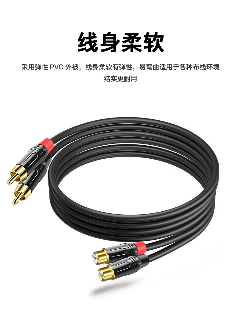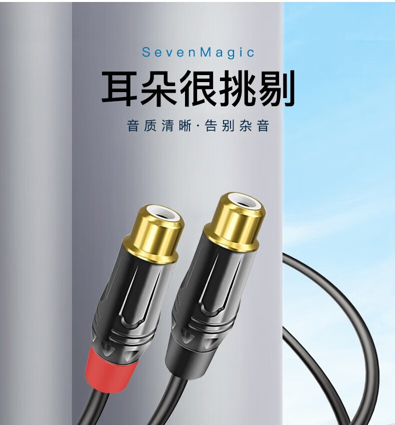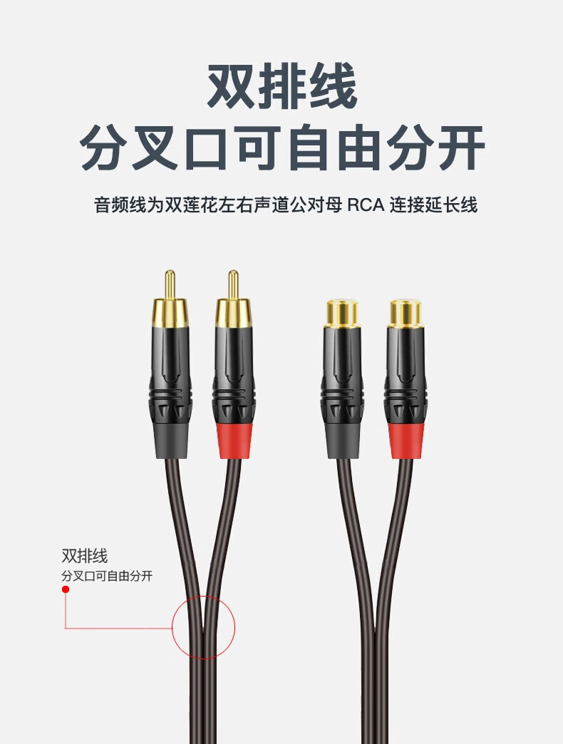 七幻 双莲花公对母音频线 AV红白 二对二 2RCA延长线CD 功放音箱音响调音台连接线 双莲花延长线【公对母】 12米