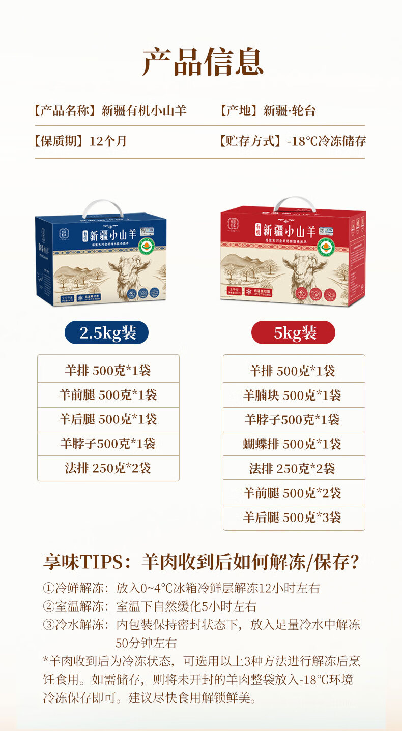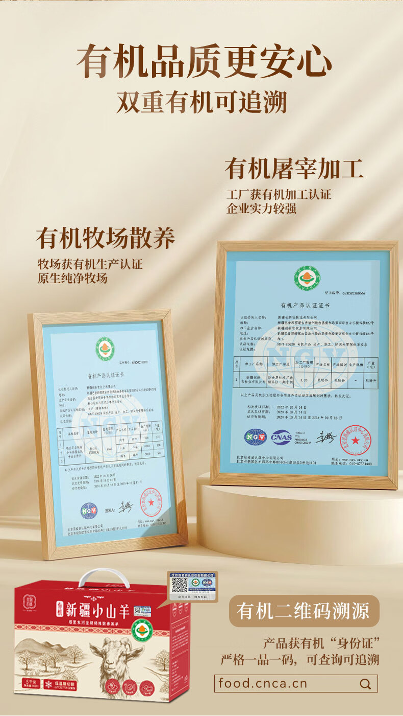丝路四季有机小山羊 冰碴驹俐 羊肉礼盒 新疆有机羊肉 有机认证 新疆冰碴驹俐礼盒装10斤