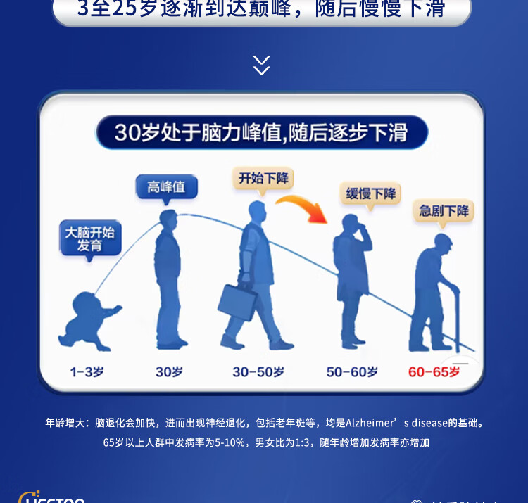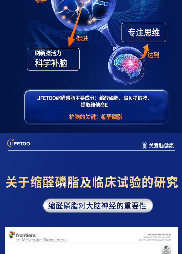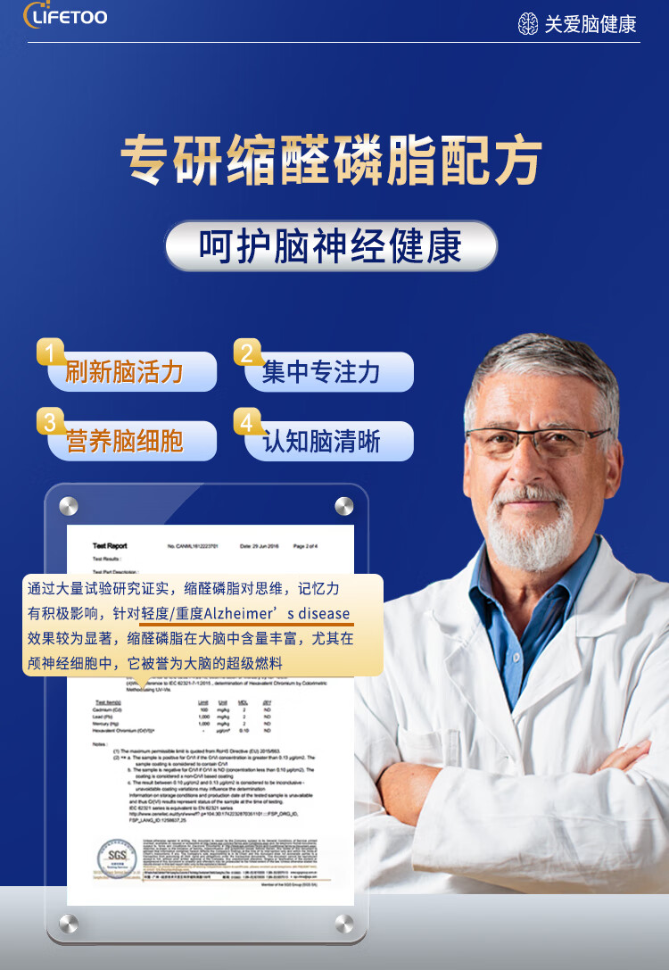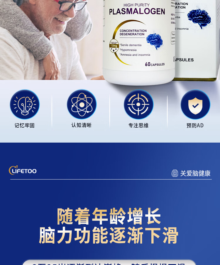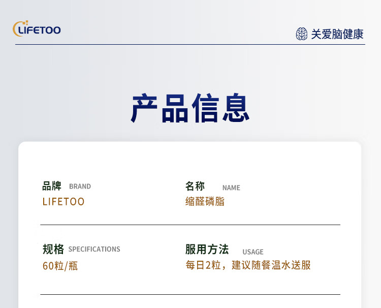 lifetoo缩醛磷脂软胶囊高纯度脑活素中老年人补脑提高记忆力预防老年痴呆 60粒*2瓶 【重返年轻】缩醛磷脂1瓶+麦角硫因1瓶