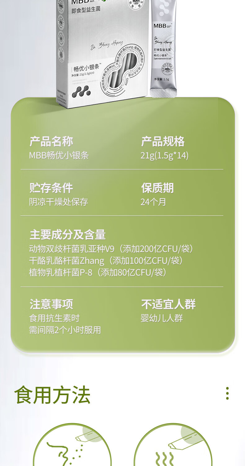 MBB科拓生物小银条益生菌冻干粉成人肠胃肠道活性菌菌群益生元正品 小银条7盒加赠2盒
