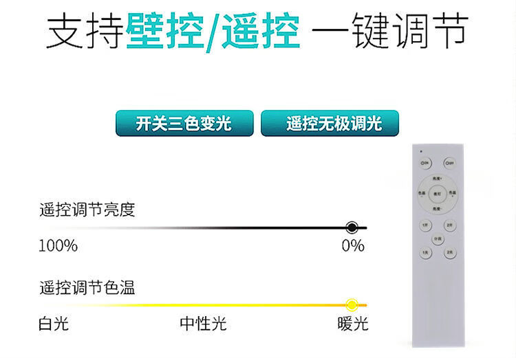 昆迪卡新款led吸顶灯简约现代大气高亮长方形客厅灯餐厅卧室书房节能灯 白圆40cm三色变光2*36w