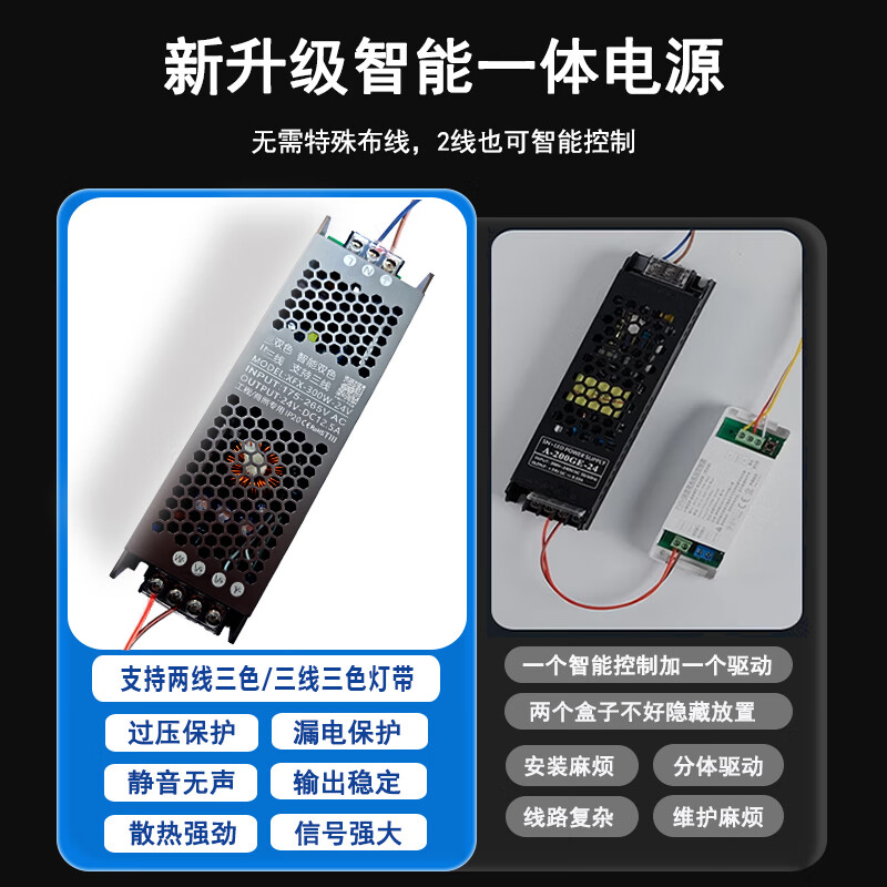 语音控制智能线型灯带24V高亮三色变光支持小爱同学自粘吊顶灯条 182珠8mm宽两线三色无极调光 13米套装【包含智能调光变压器+遥控器】