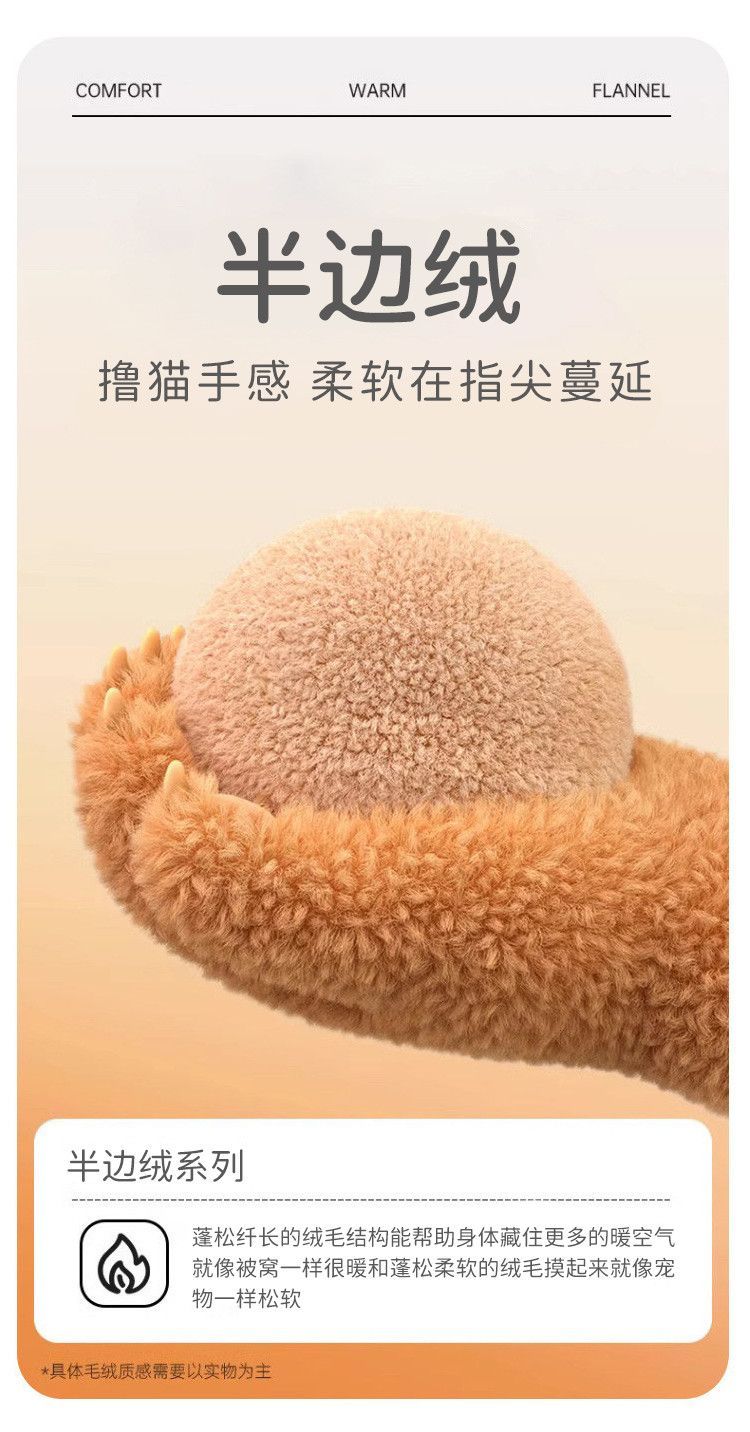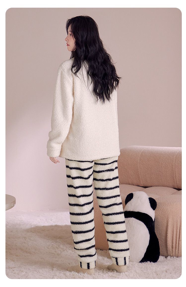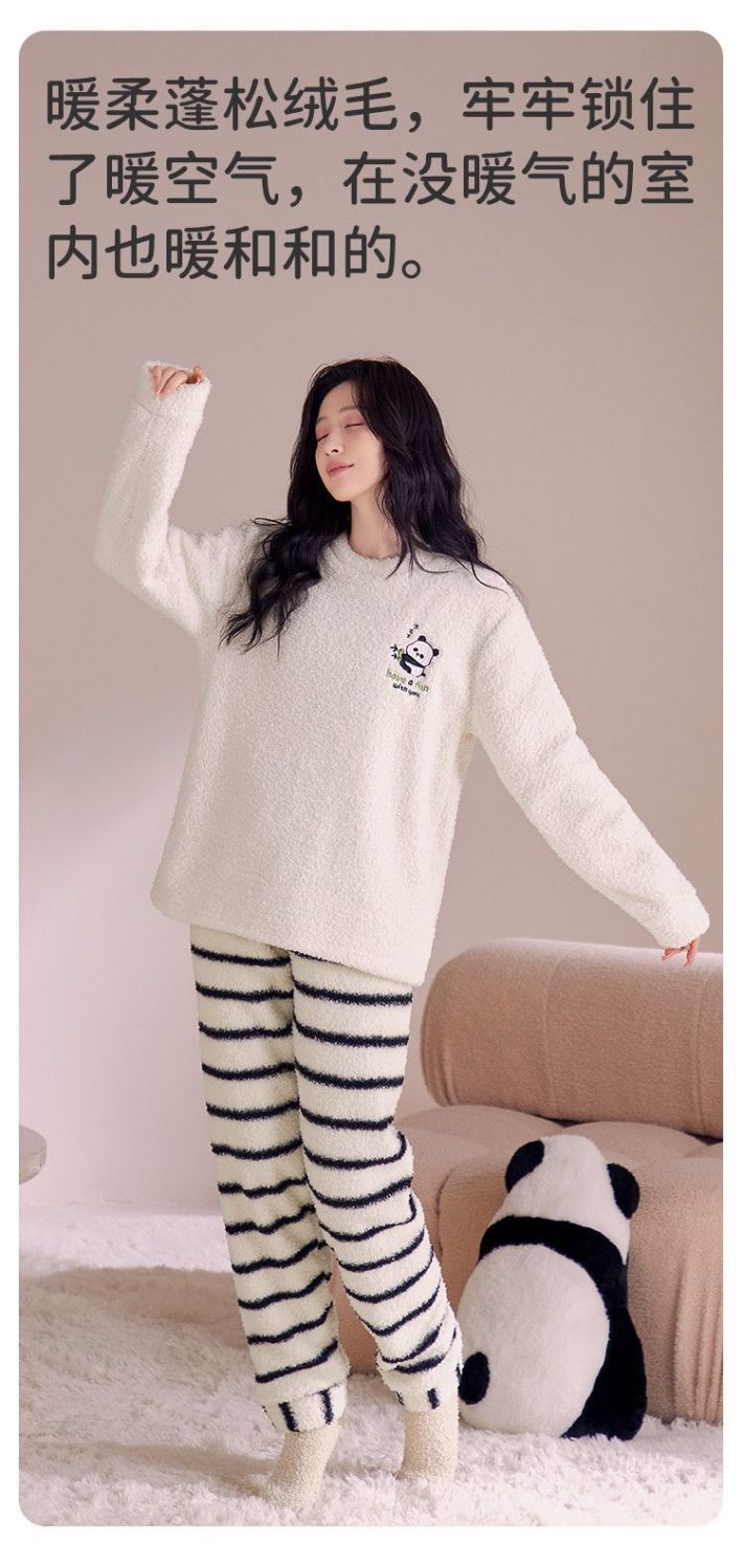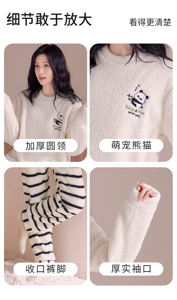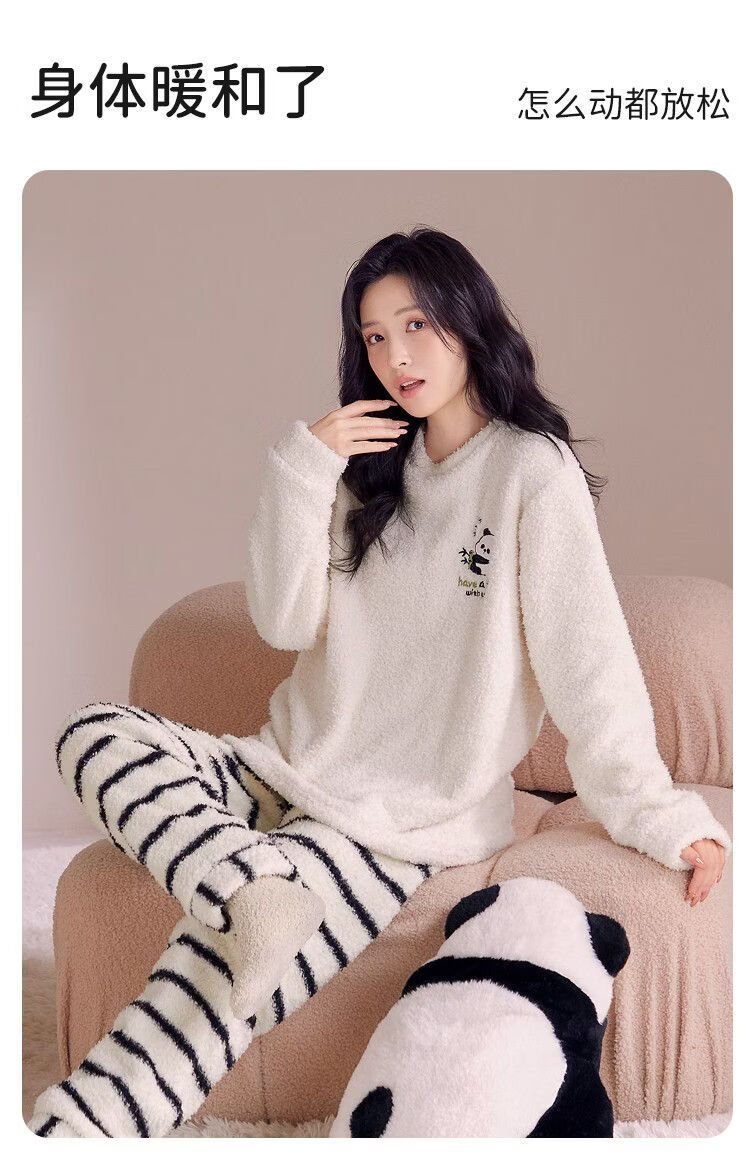 欧迪芬女士睡衣女半边绒暖呼呼卡通熊猫家居服秋冬可外穿套装 【半边绒萌宠熊猫印花-杏色】 XL 【建议身高165-170cm】