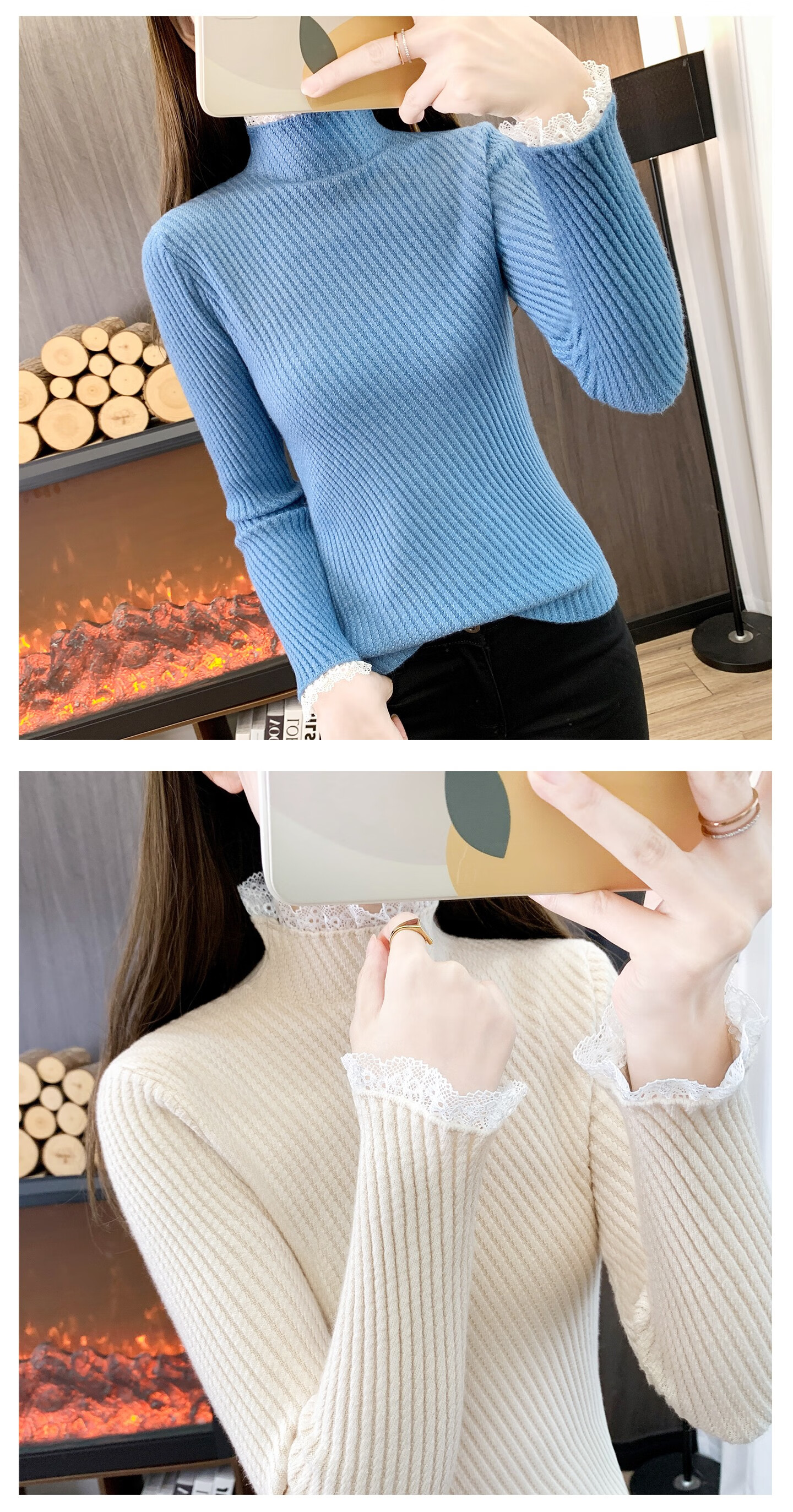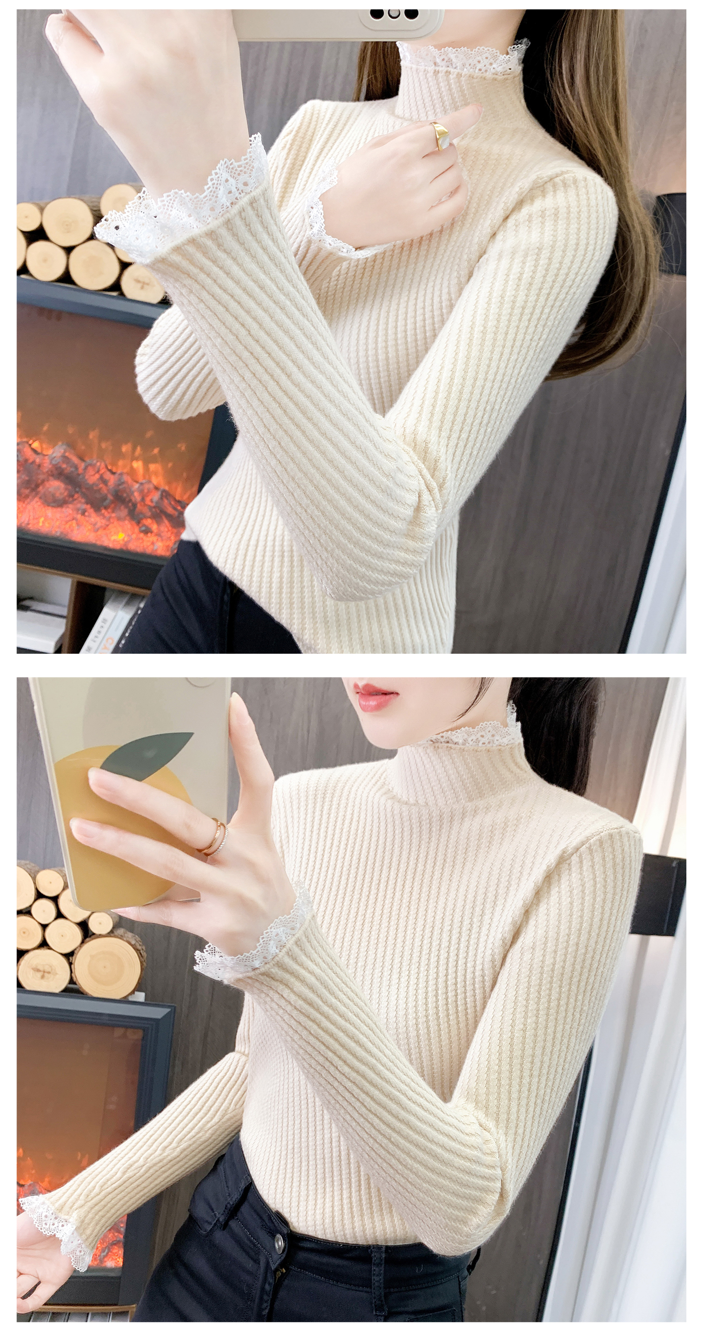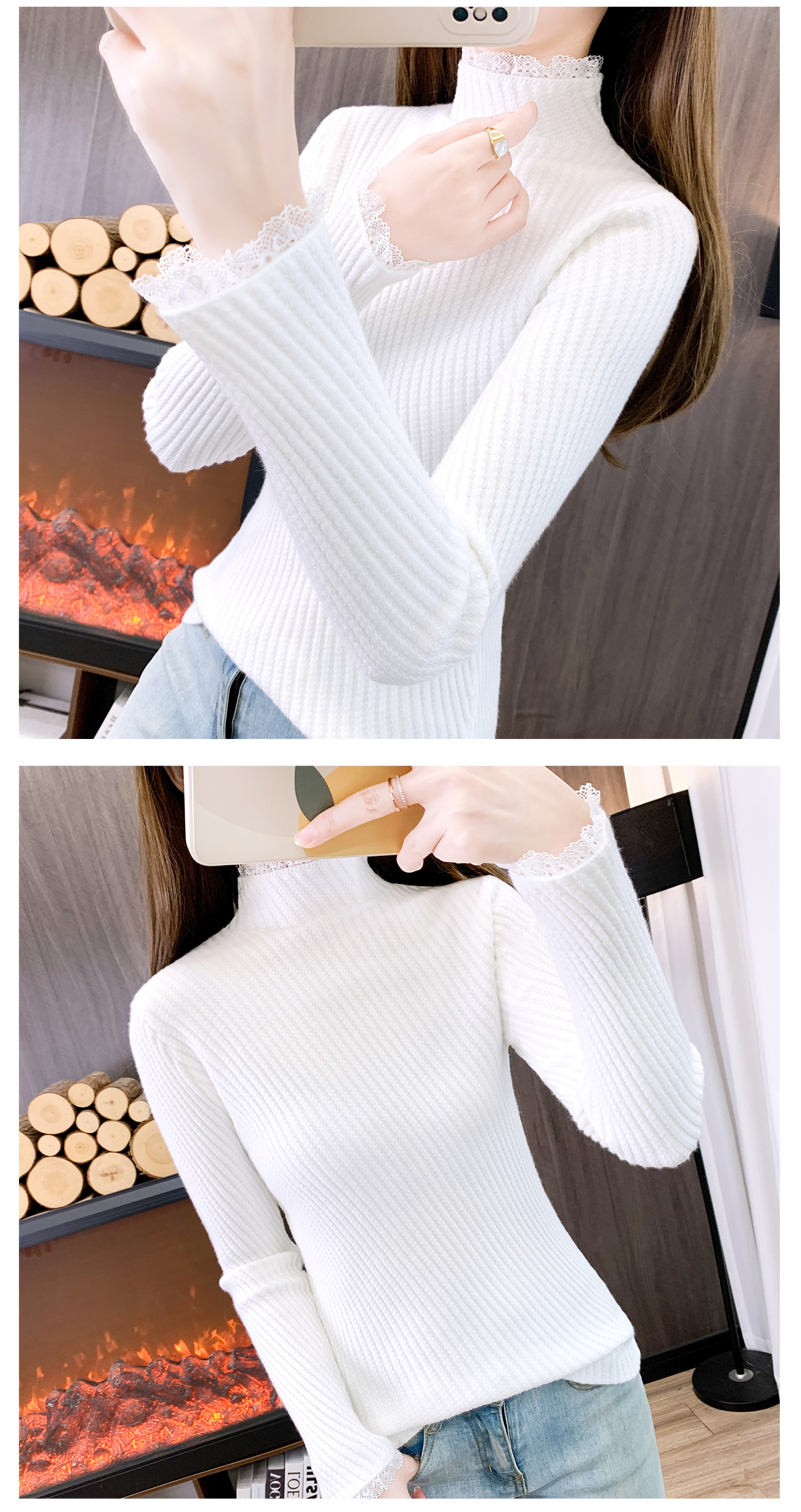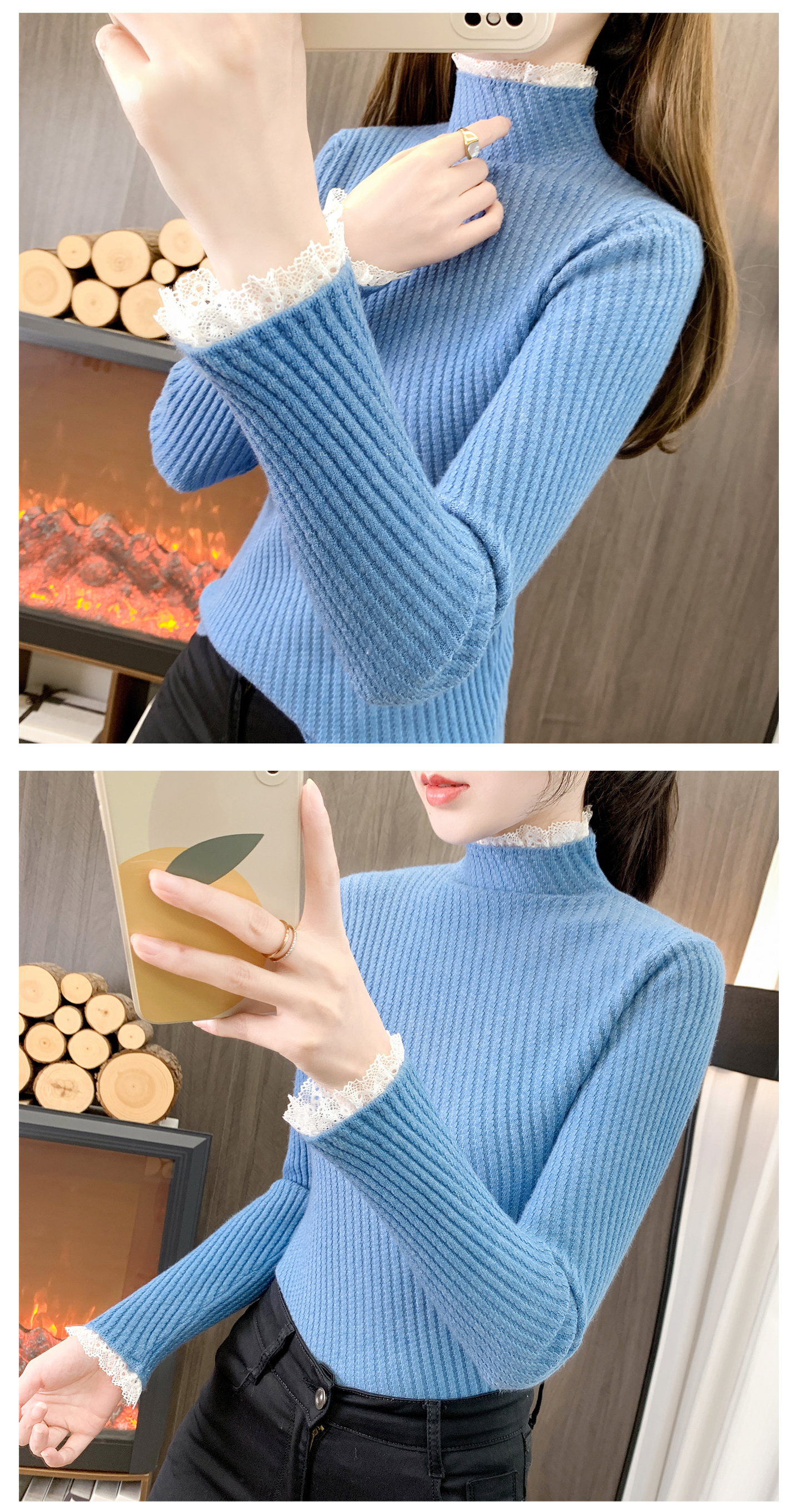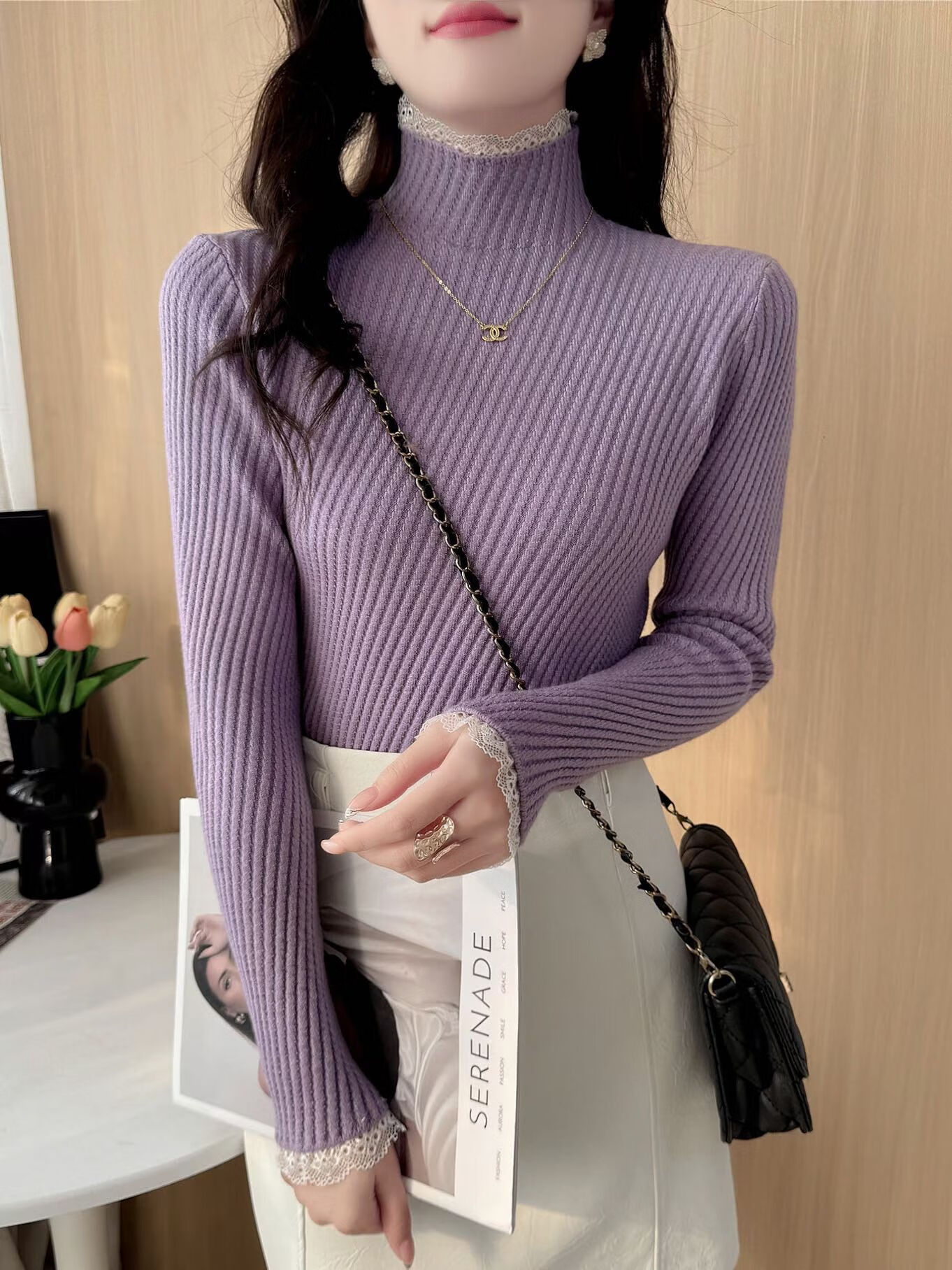 香影芬半高领蕾丝毛衣打底衫内搭女款2025新款穿搭上衣秋冬季白色针织衫 紫色 S (建议95斤以内)