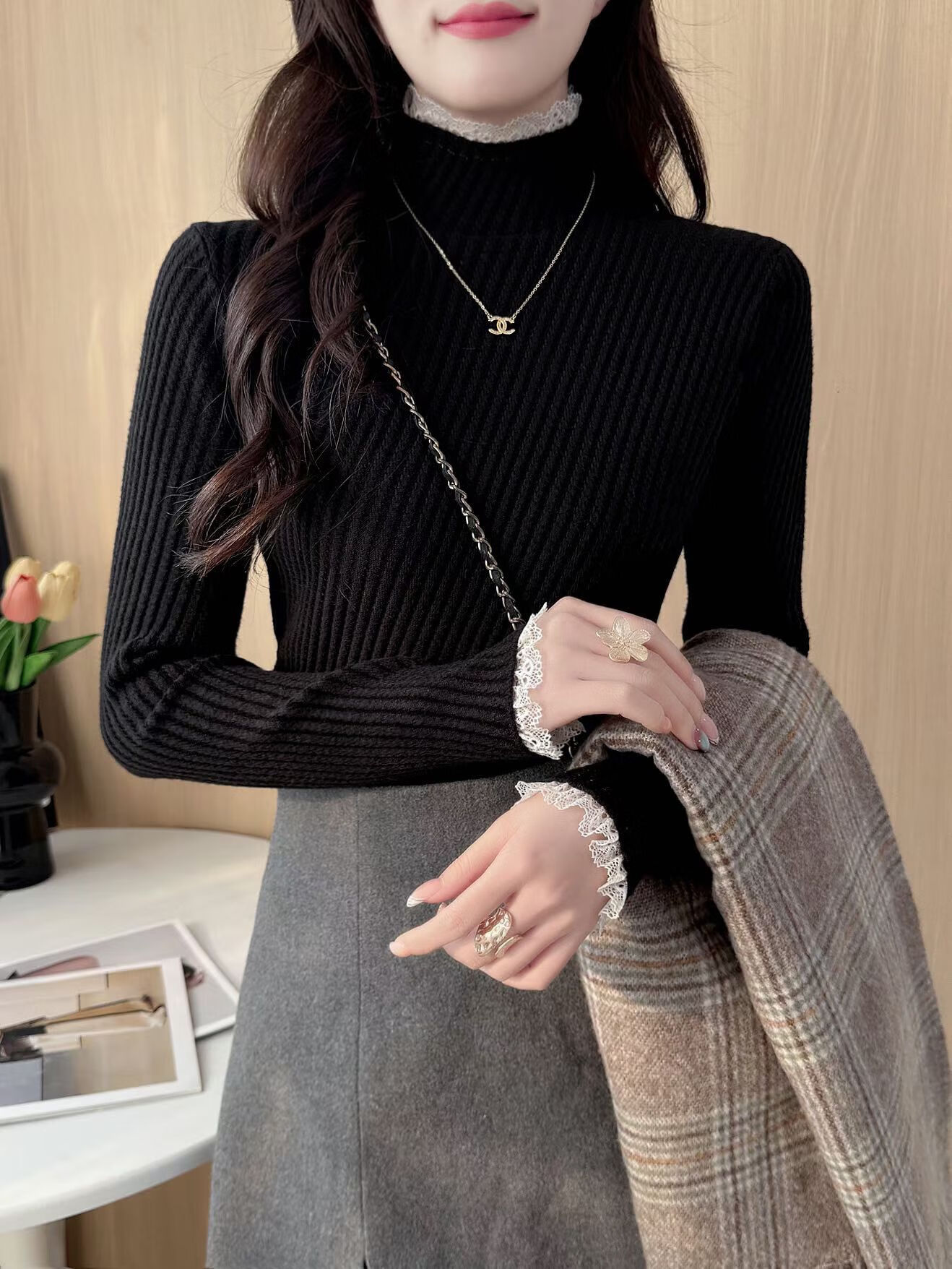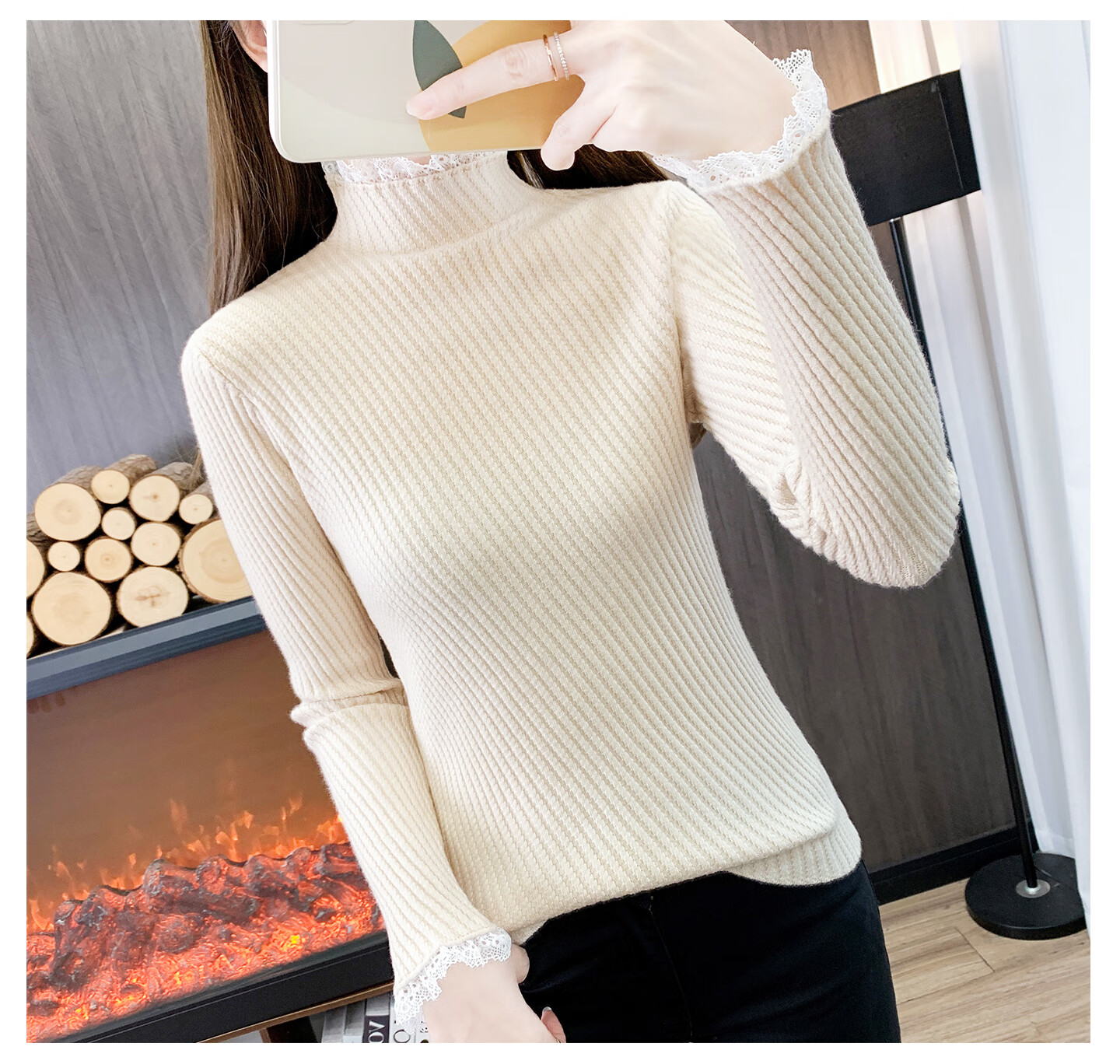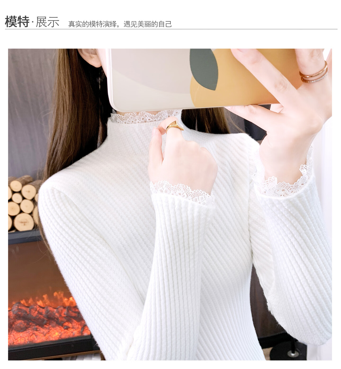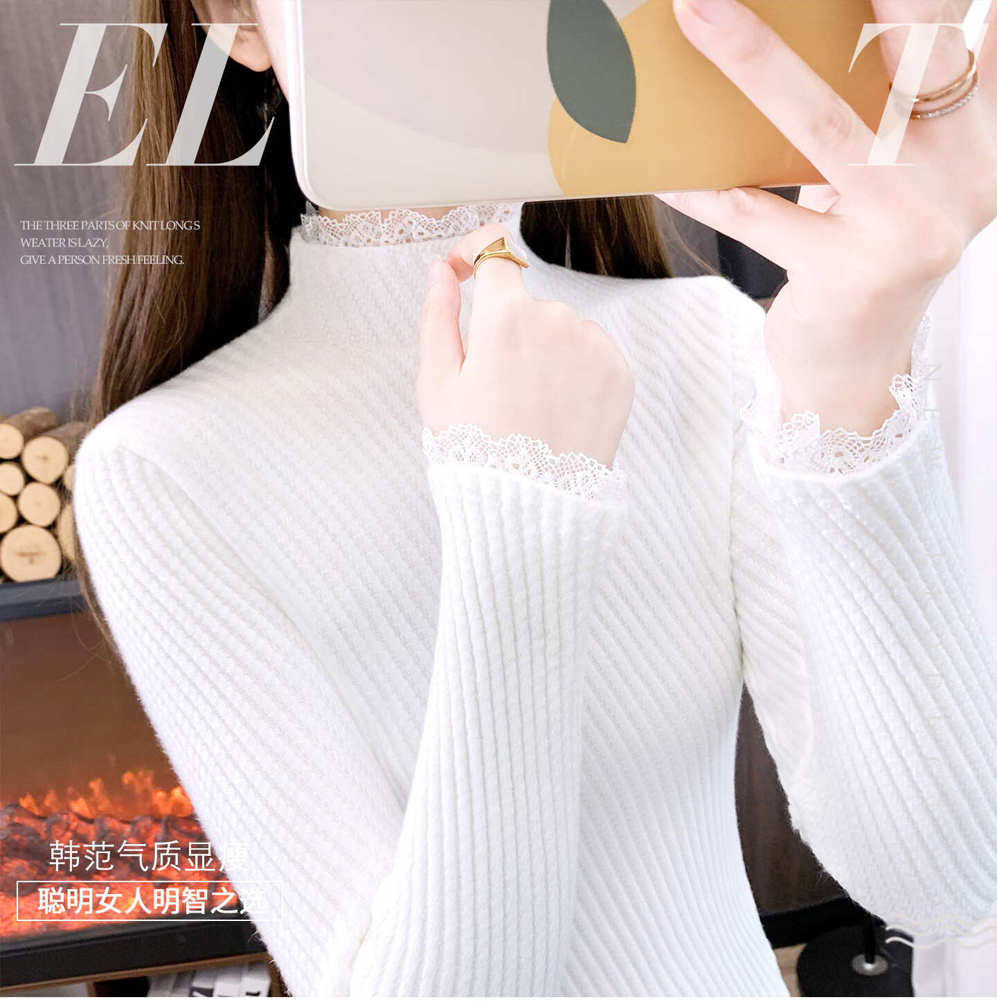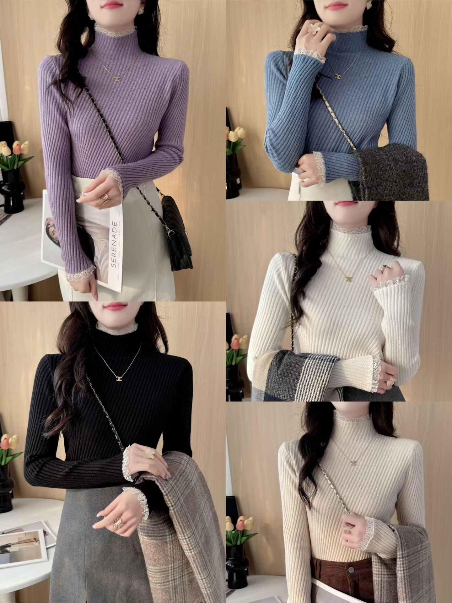 香影芬半高领蕾丝毛衣打底衫内搭女款2025新款穿搭上衣秋冬季白色针织衫 紫色 S (建议95斤以内)
