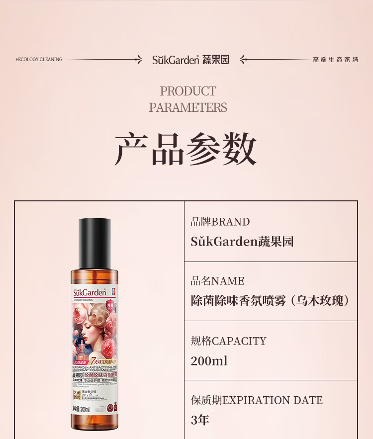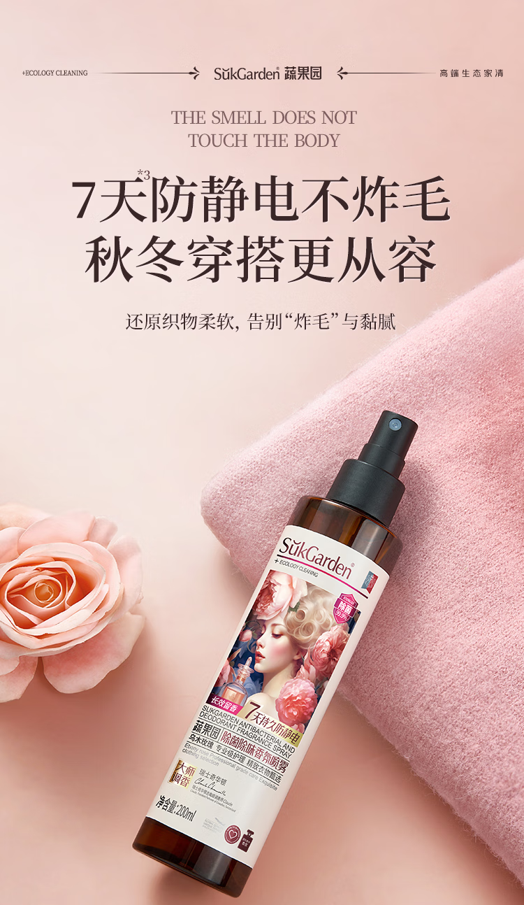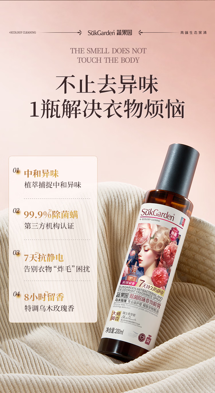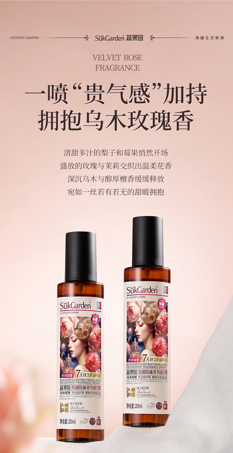 蔬果园除菌除味香氛喷雾 防静电喷雾持久留香秋冬柔顺去静电祛味喷雾 【乌木玫瑰】防静电喷雾200ml